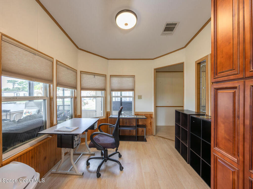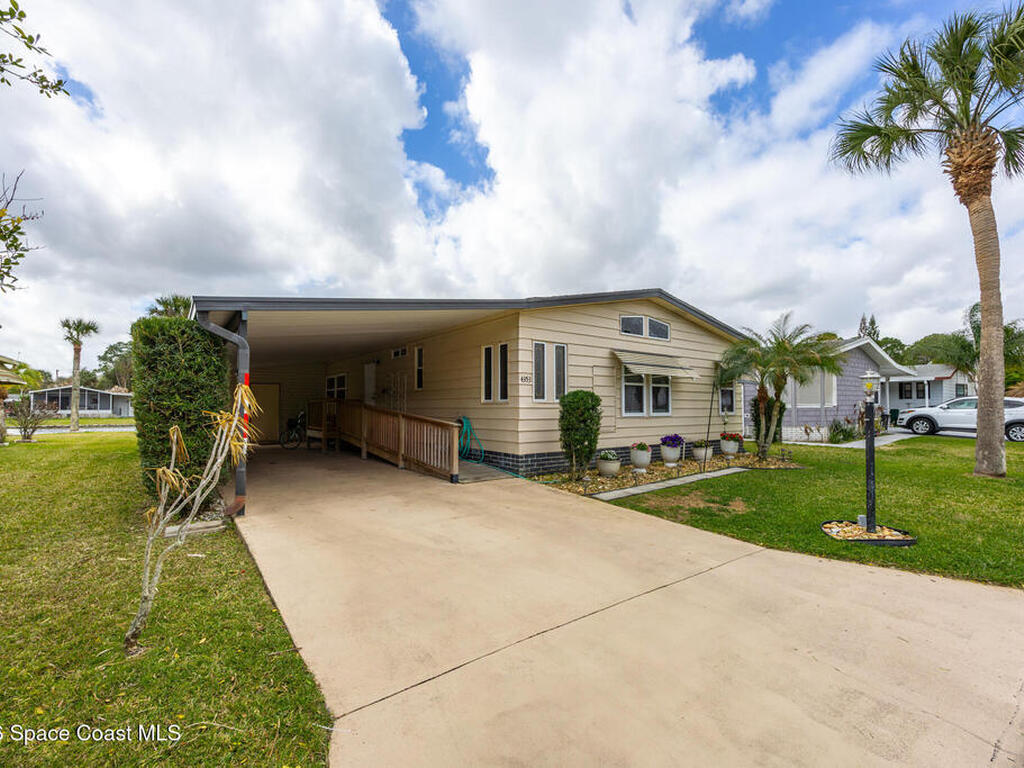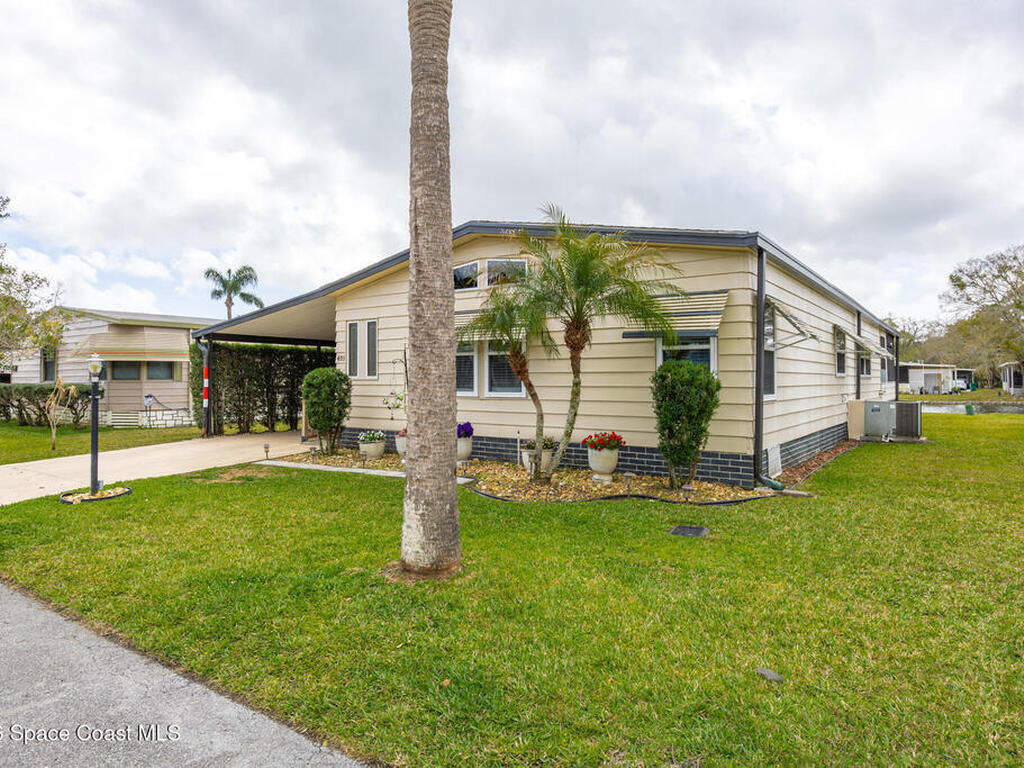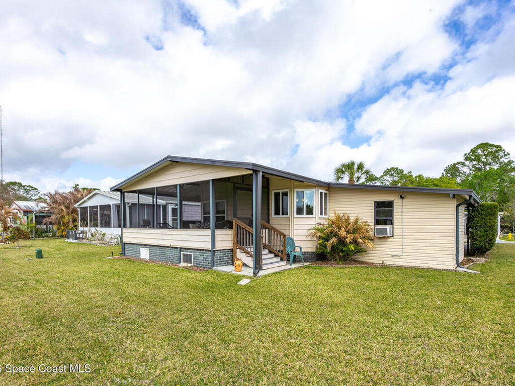 Welcome to the pristine 55+ community Twin Lakes of Melbourne where you own the land! This charming 2/2 home has a wheelchair accessible entrance and is completely move in ready. The screened back porch has a beautiful view perfect for relaxing. Updates to this home include a new roof 2025, new windows 2020, New aluminum ceiling on back porch and RO water system in kitchen. Low HOA dues with sparkling community pool perfect for enjoying the Florida weather. Don't let this one pass you by, schedule your showing today!