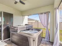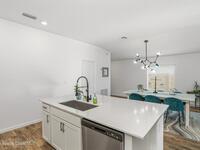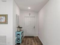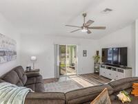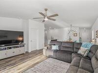 Better than new this 4 bedroom 2 bath home in gated community shows like a model. It is a pleasure to show. . A smart house with apps to open the garage door, exterior lights and front door. Luxury vinyl plank floors in living and dining room, kitchen, halls and owners walk in closet.. Ceramic tile in the bathrooms and laundry. Paver screened front porch, Paver screened lanai with optional jacuzzii. and paver front walkway and driveway Security system and a ring doorbell.. Quartz counters in the kitchen , huge island with a glss tile backsplash, walk in pantry and above cabinet lighting. Vaulted ceiling, 6 ceiling fans and recessed lighting.. Beautiful California walkin closet in the owners suite. Fenced rear yard 3 gates backing up to the lake and storage shed Additional built in shelving and pull down attic stairs in the garge. In ground sprinkler system The front is professionaly landscaped. There is a park and a community pool is being constructed.. Close to Heritage Parkway