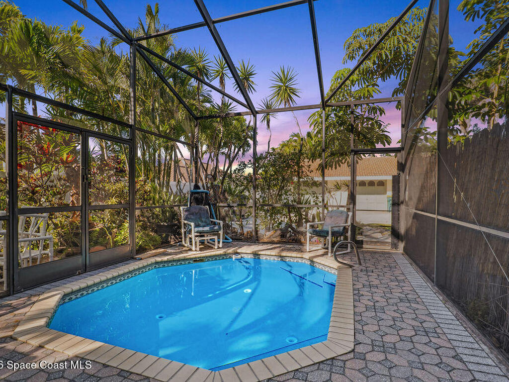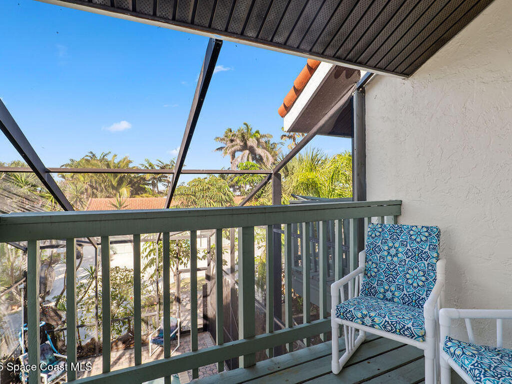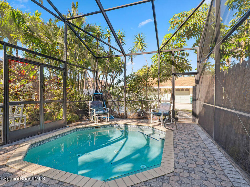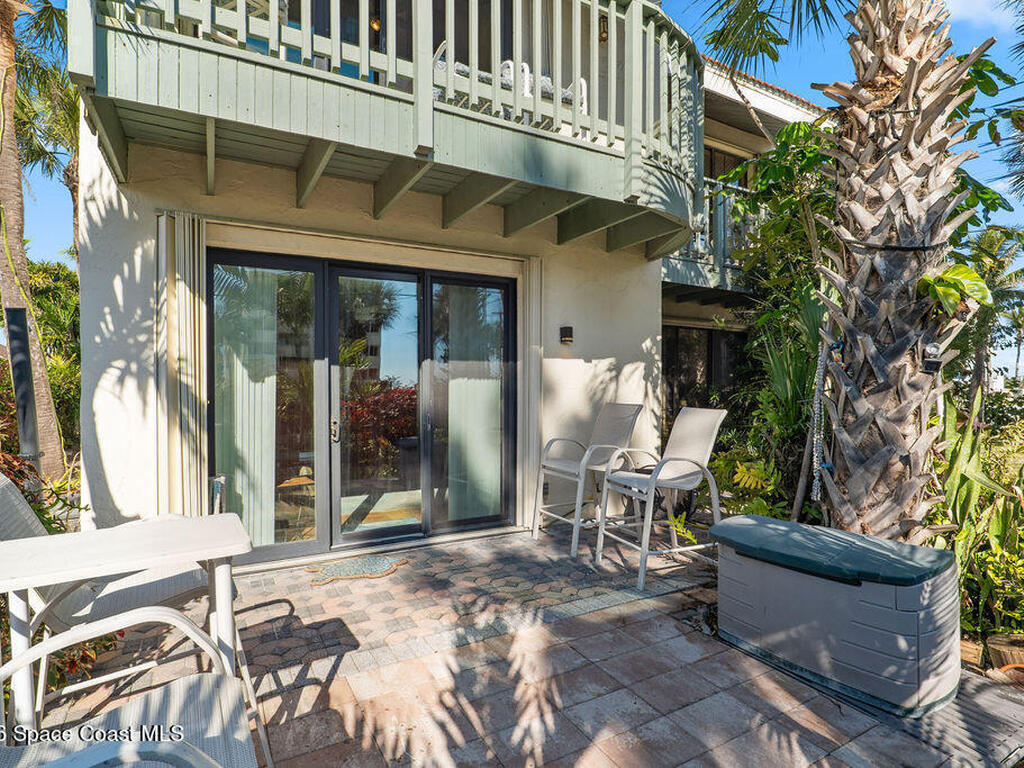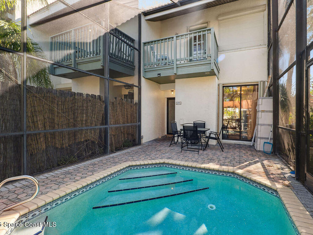 Embrace the ultimate beach lifestyle in this charming, end-unit townhome condo just steps from the sand in beautiful Melbourne Bch. This potentially turn key residence with a 1-car garage is part of an intimate, 4-unit complex and enjoys the luxury of having its own private, screened pool! Enjoy a view of the ocean from your primary bedroom & a deeded beach access directly across A1A & a deeded River access point too! The bright, open living and dining area features newer sliders overlooking lush green surrounding an outdoor patio, perfect for gatherings in the relaxing coastal atmosphere. The generous kitchen includes granite countertops, stainless steel appliances, and abundant cabinet and prep space, with direct access to the pool area for effortless indoor-outdoor living. Located in a nature rich stretch of coast, yet only minutes from the shops, dining, and conveniences of both Melbourne Beach and Indialantic. The perfect balance of peaceful seaside living and everyday convenience
