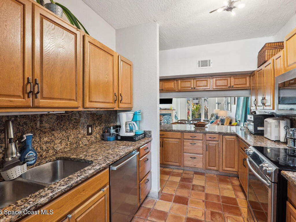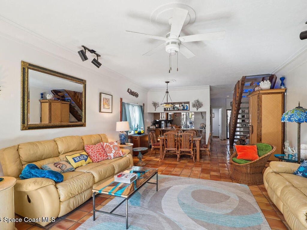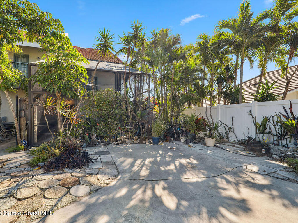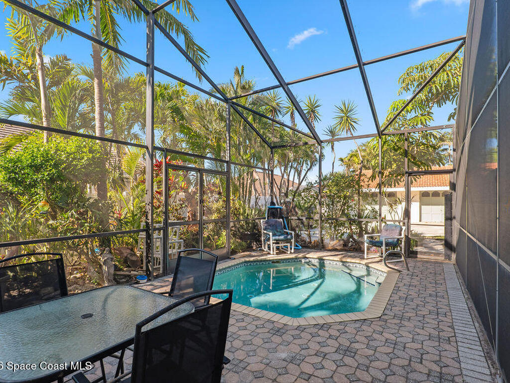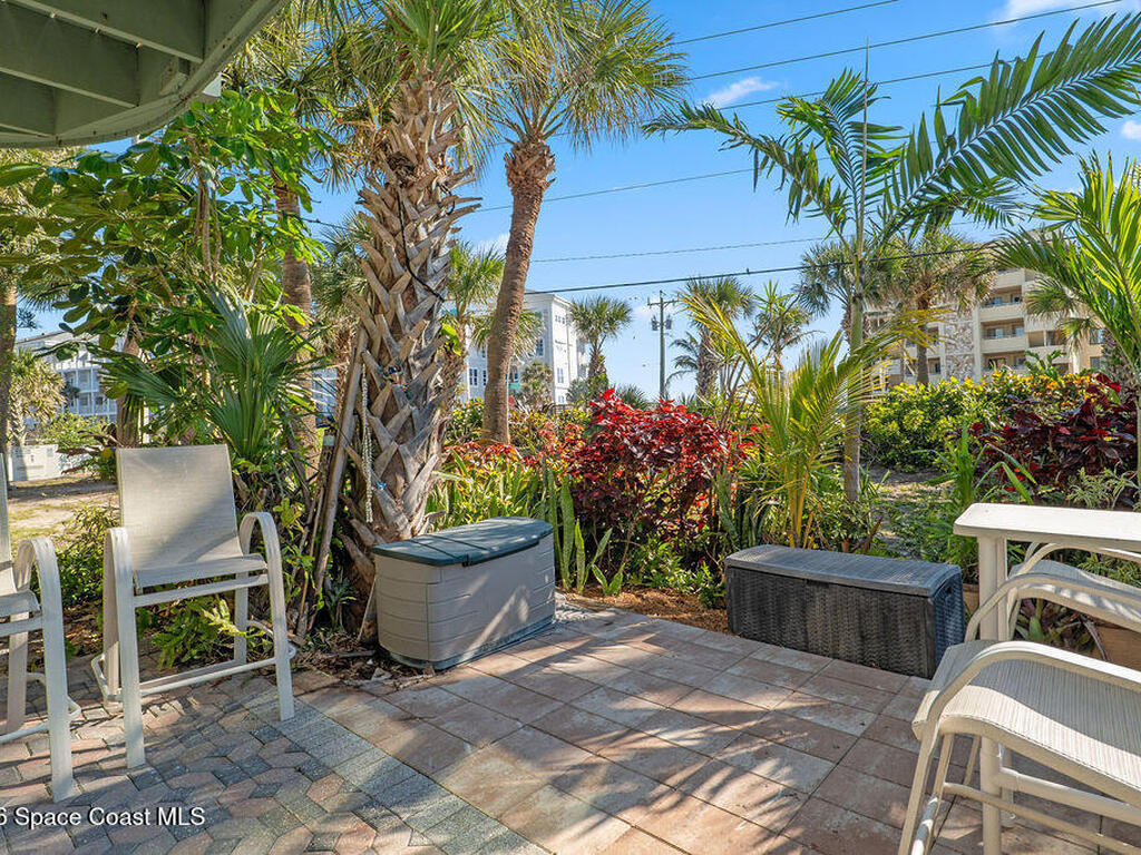Embrace the ultimate beach lifestyle in this charming, end-unit townhome condo just steps from the sand in beautiful Melbourne Bch. This potentially turn key residence with a 1-car garage is part of an intimate, 4-unit complex and enjoys the luxury of having its own private, screened pool! Enjoy a view of the ocean from your primary bedroom & a deeded beach access directly across A1A & a deeded River access point too! The bright, open living and dining area features newer sliders overlooking lush green surrounding an outdoor patio, perfect for gatherings in the relaxing coastal atmosphere. The generous kitchen includes granite countertops, stainless steel appliances, and abundant cabinet and prep space, with direct access to the pool area for effortless indoor-outdoor living. Located in a nature rich stretch of coast, yet only minutes from the shops, dining, and conveniences of both Melbourne Beach and Indialantic. The perfect balance of peaceful seaside living and everyday convenience
