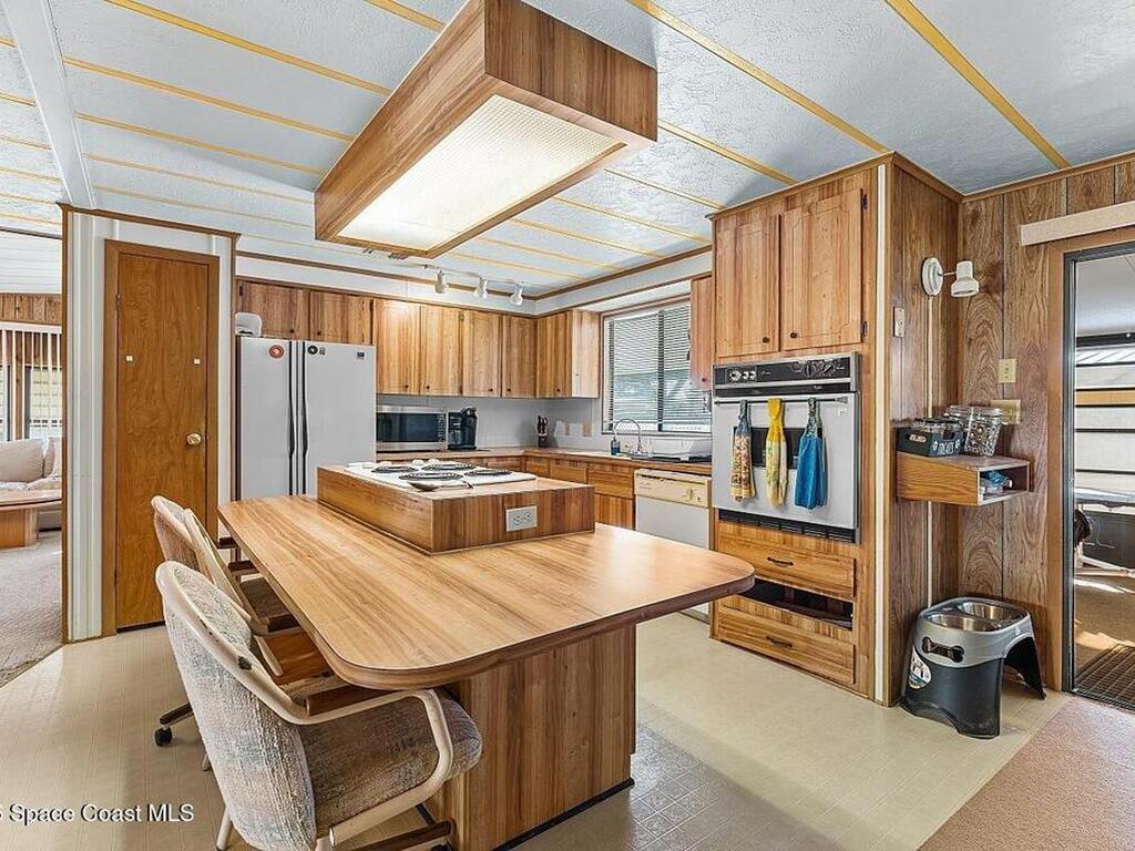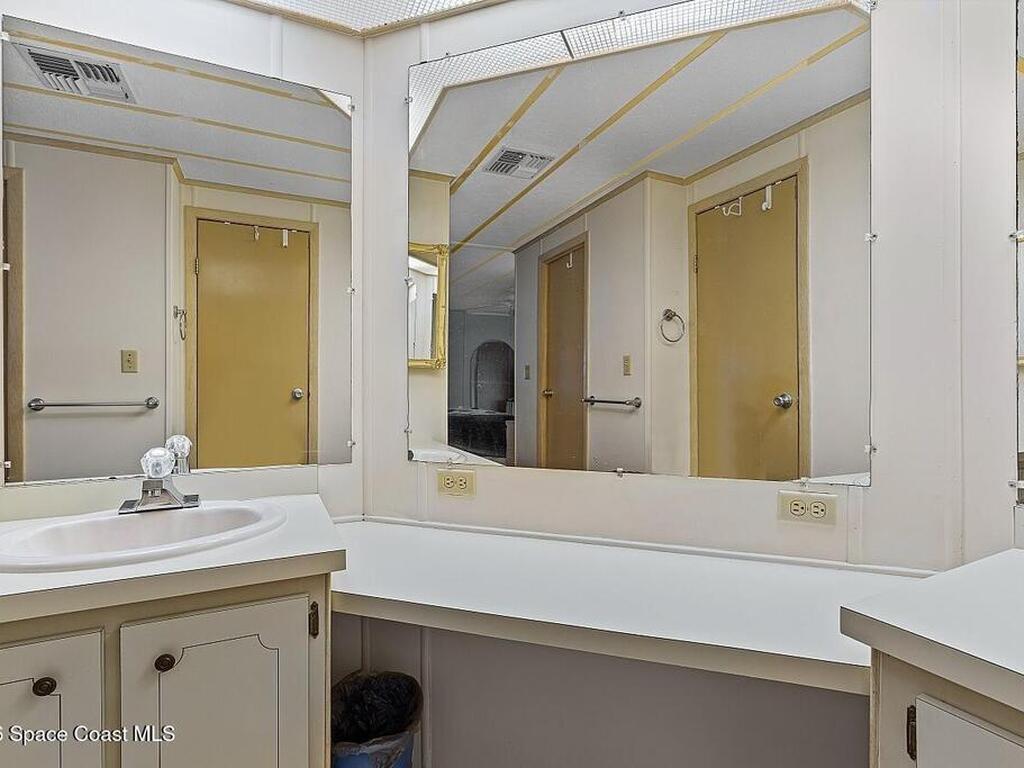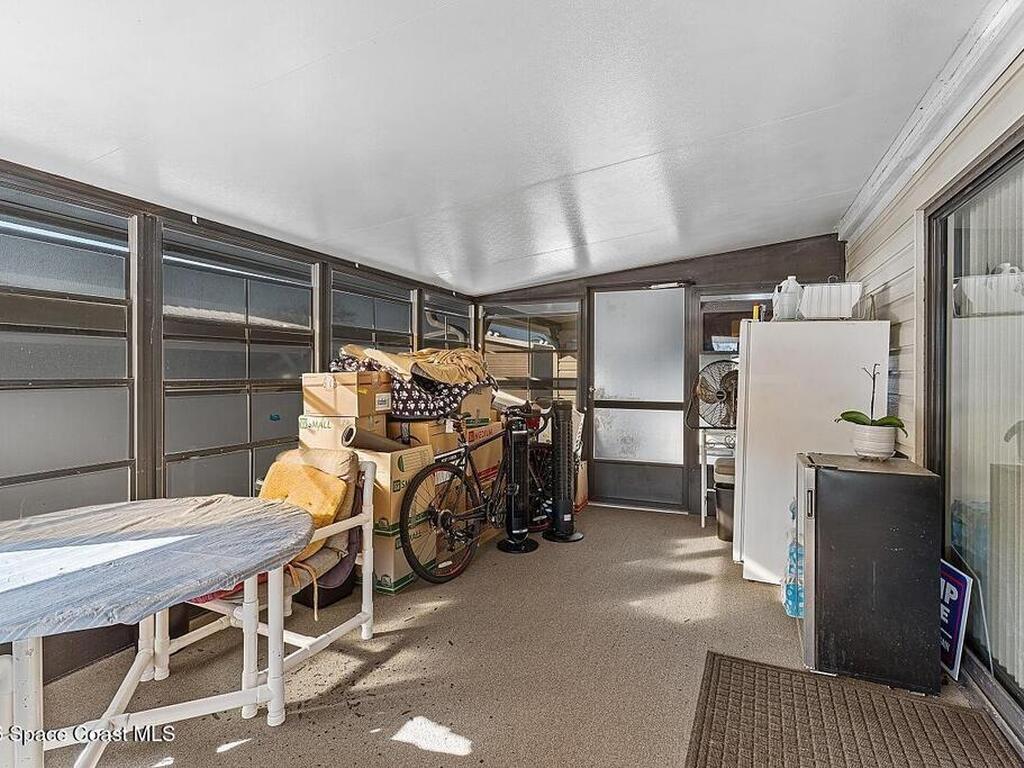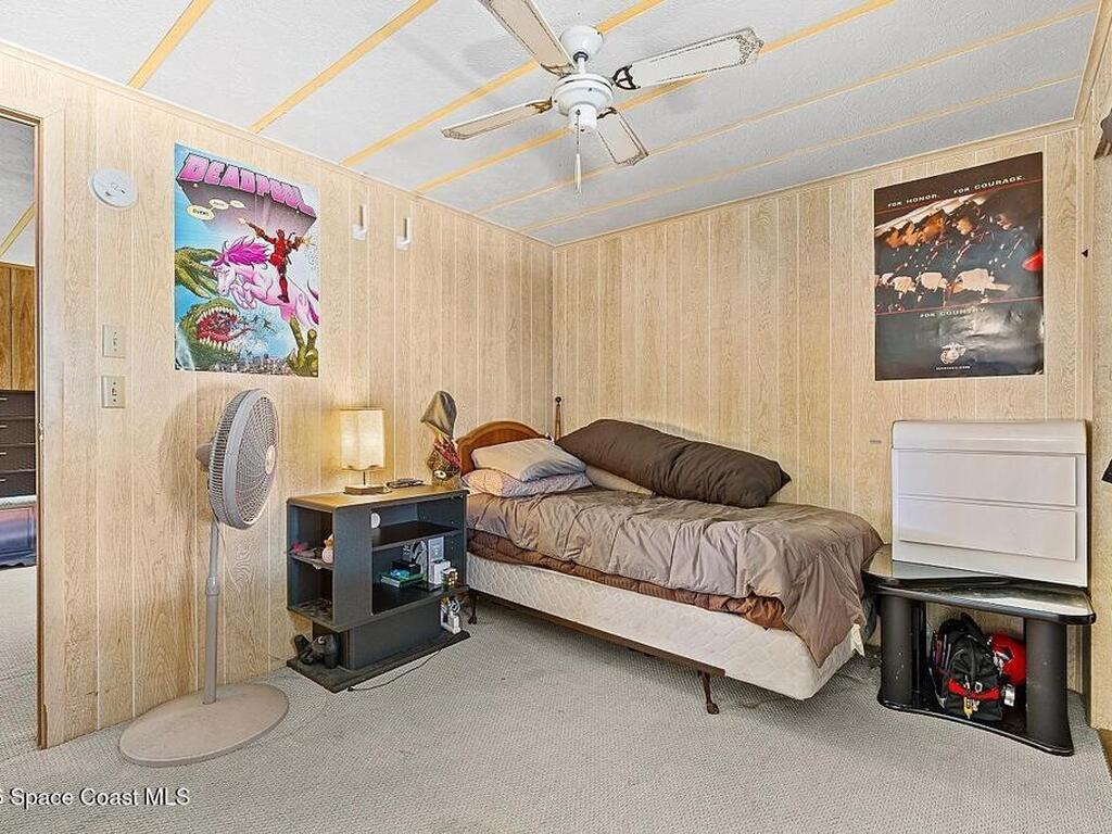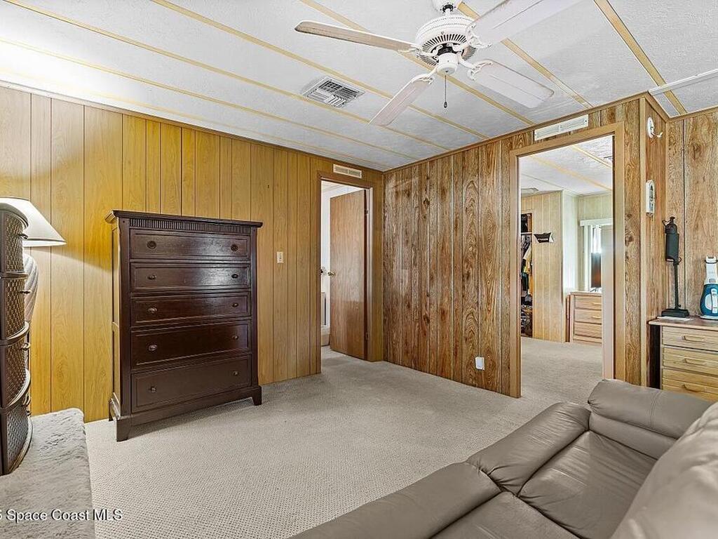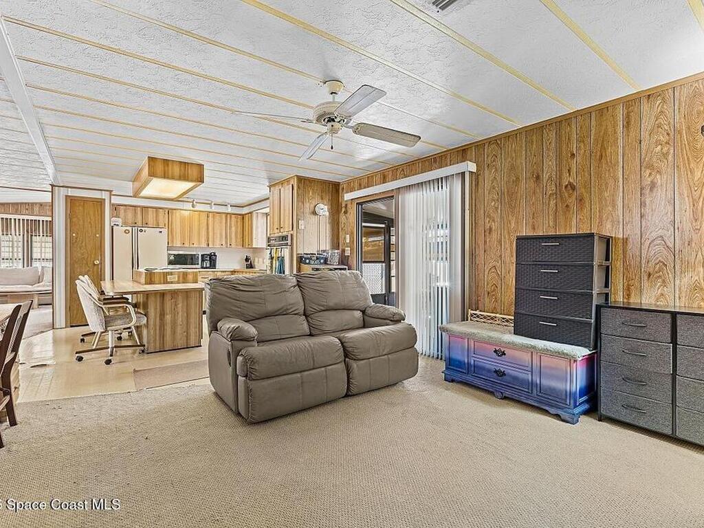All-ages resort-style Barefoot Bay community. You own the land, no lot rent! Located in the desirable Flower Section, 2BR/2BA home offers 1, 294 sq ft w/ large living areas & an entertaining-style kitchen featuring a center island cooktop & abundant cabinetry. XLG primary suite with dual sinks, walk-in shower, and walk-in closet. Guest bedroom w/ en-suite bath. Sunroom w/windows, patio, storage shed, & 1-car carport. Updates metal roof (2020), WH (2020), partial re-pipe, vapor barrier replaced, added hurricane straps, generator plug, & clamshell shutters. Priced to sell bring your vision.