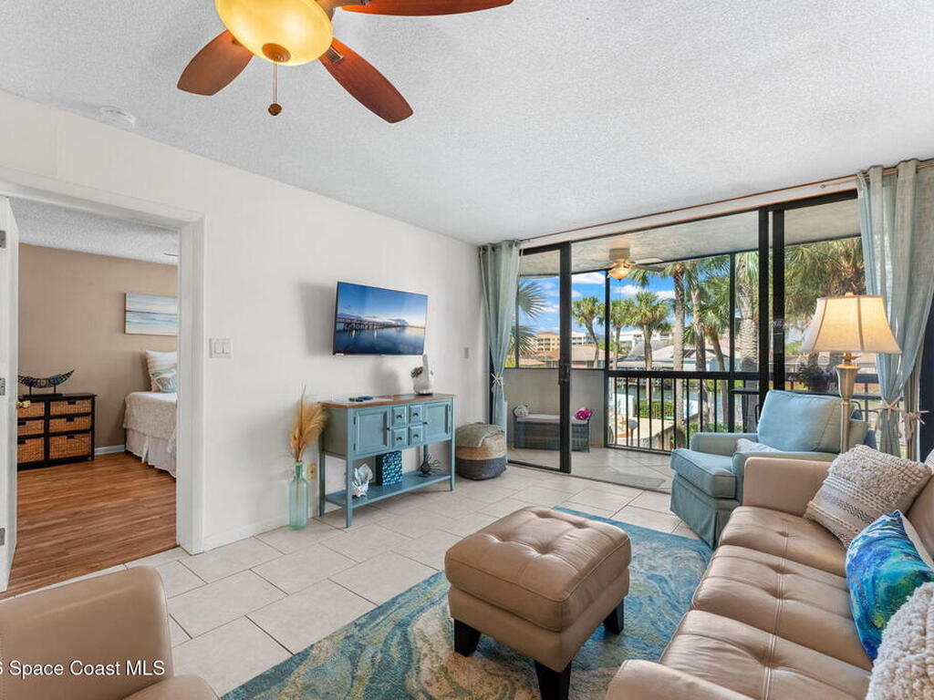 Rare direct waterfront condo in a gated community with fair HOA fees and navigable canal access to the Banana River -- plus an AVAILABLE BOAT SLIP with NO additional fees! This is true Florida living. Watch rocket launches right from your screened balcony and unwind each evening with incredible sunsets and panoramic water views.The open layout is bright and inviting with thoughtful upgrades throughout, plus a 2024 roof and A/C and 2023 water heater for peace of mind. Resort-style amenities include cable, internet, insurance, covered parking, heated pool, waterfront gazebos, kayak launch, gym, fishing pier, clubhouse, walking paths and BBQ areas.Minutes to Port Canaveral cruises, local favorite beaches, dining, shopping and conveniently close to Cape Canaveral Hospital. NASA is approximately 30 minutes away, with Orlando International Airport and world-renowned theme parks about an hour. Waterfront, gated, and truly boater-friendly -- this is the Florida lifestyle done RIGHT!