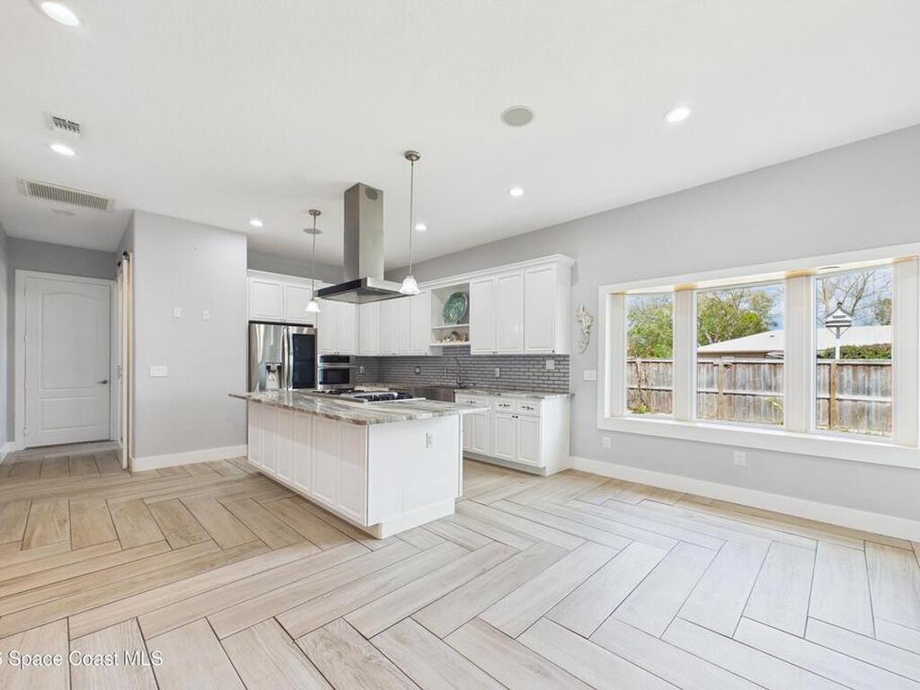 *Some photos digitally staged* Welcome to an exceptional opportunity in the heart of Palm Bay- a beautifully designed 2020 custom home that blends modern luxury, space, and functionality on a generous corner lot.From the moment you arrive, the home's circular driveway, expansive lot, and impressive two-story presence create undeniable curb appeal. Step inside and you'll immediately notice the soaring ceilings, open-concept design, and abundant natural light that make the home feel both grand and inviting.The centerpiece of the home is the chef-inspired kitchen, thoughtfully designed for both everyday living and entertaining. Featuring a large island, breakfast bar seating, double ovens, gas range, and extensive cabinetry, this kitchen flows seamlessly into the main living and dining areas--perfect for hosting gatherings or enjoying relaxed evenings at home.