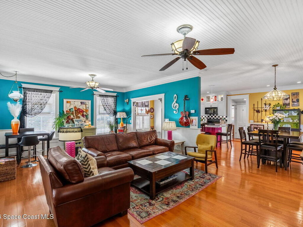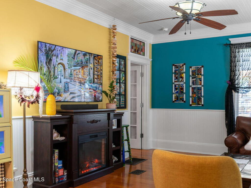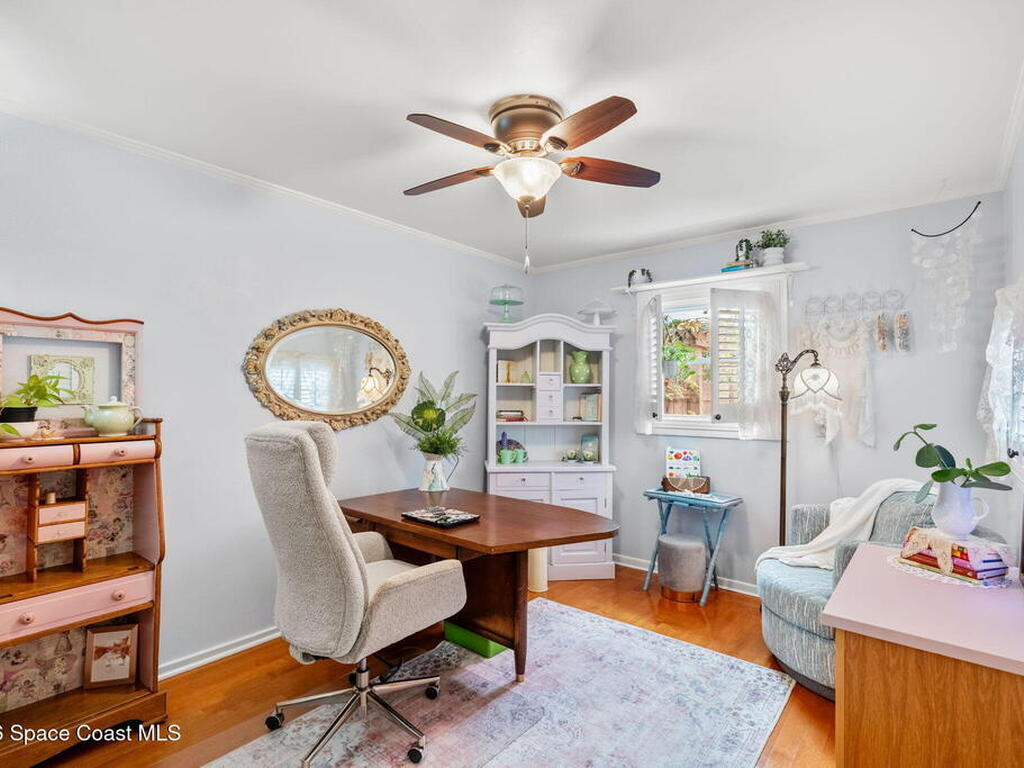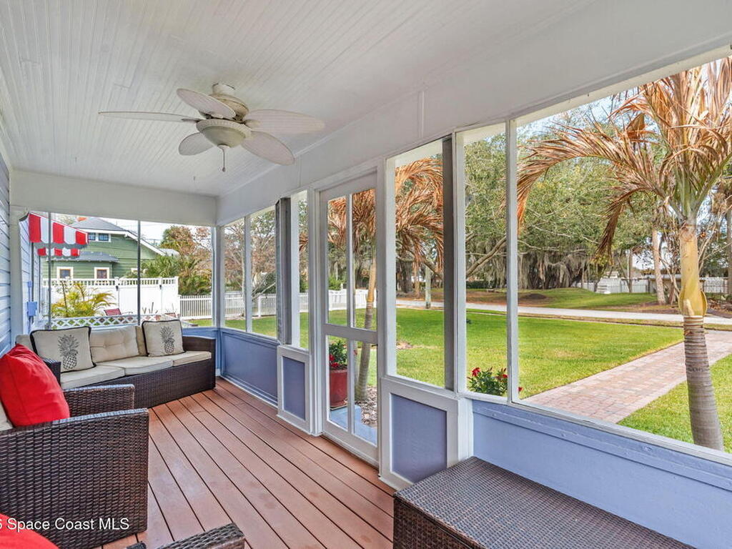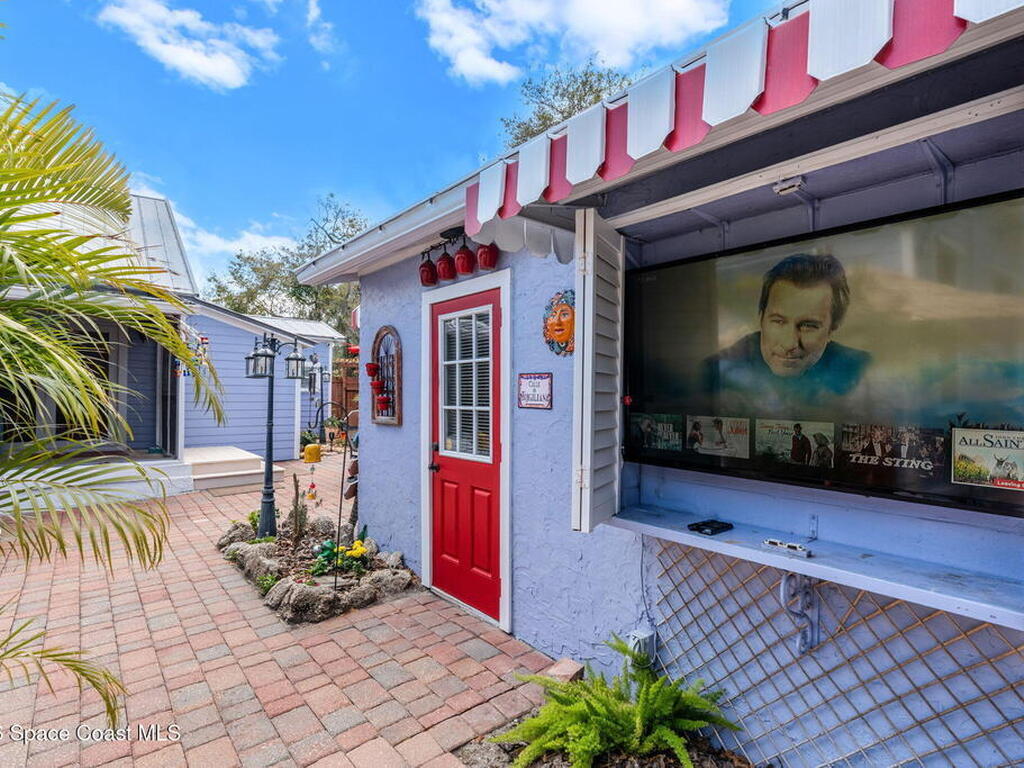 Welcome to Twin Oaks, a truly one-of-a-kind historic gem in the heart of Eau Gallie's sought-after Sunny Point neighborhood. One of the first homes built in the area, this property is rich in character and charm. The main house is 1, 584 sq ft with 2 beds/ 2 baths. The bright, open floor plan is filled with natural light from beautiful windows, while real hardwood floors run throughout. Enjoy your morning coffee on the screened front porch and unwind on the screened back lanai in the evenings. The detached 400 sq ft cottage provides incredible flexibility -- perfect for a home office or guest suite. If used as a second home or an investment, the property offers excellent income-producing potential. Step outside to a private, courtyard-style backyard designed for easy maintenance and tropical living. This secluded oasis features a summer kitchen, outdoor TV, greenhouse, and lush landscaping that creates a peaceful retreat. The enclosed former carport now serves as a spacious.