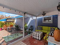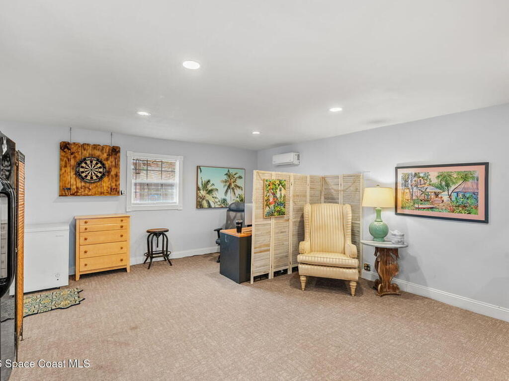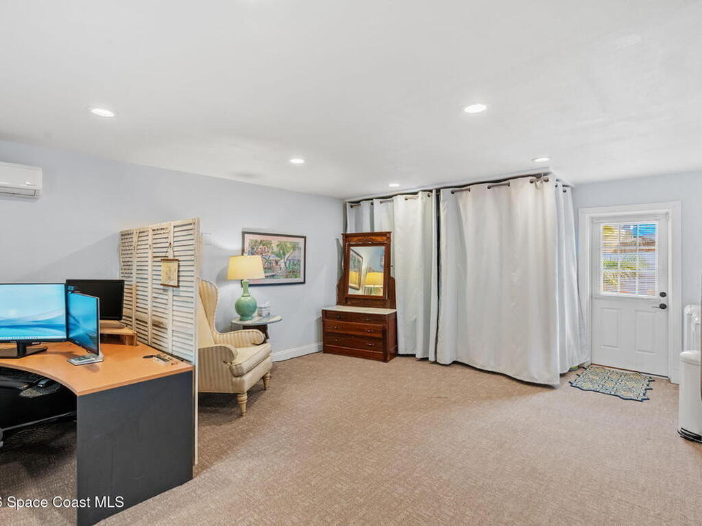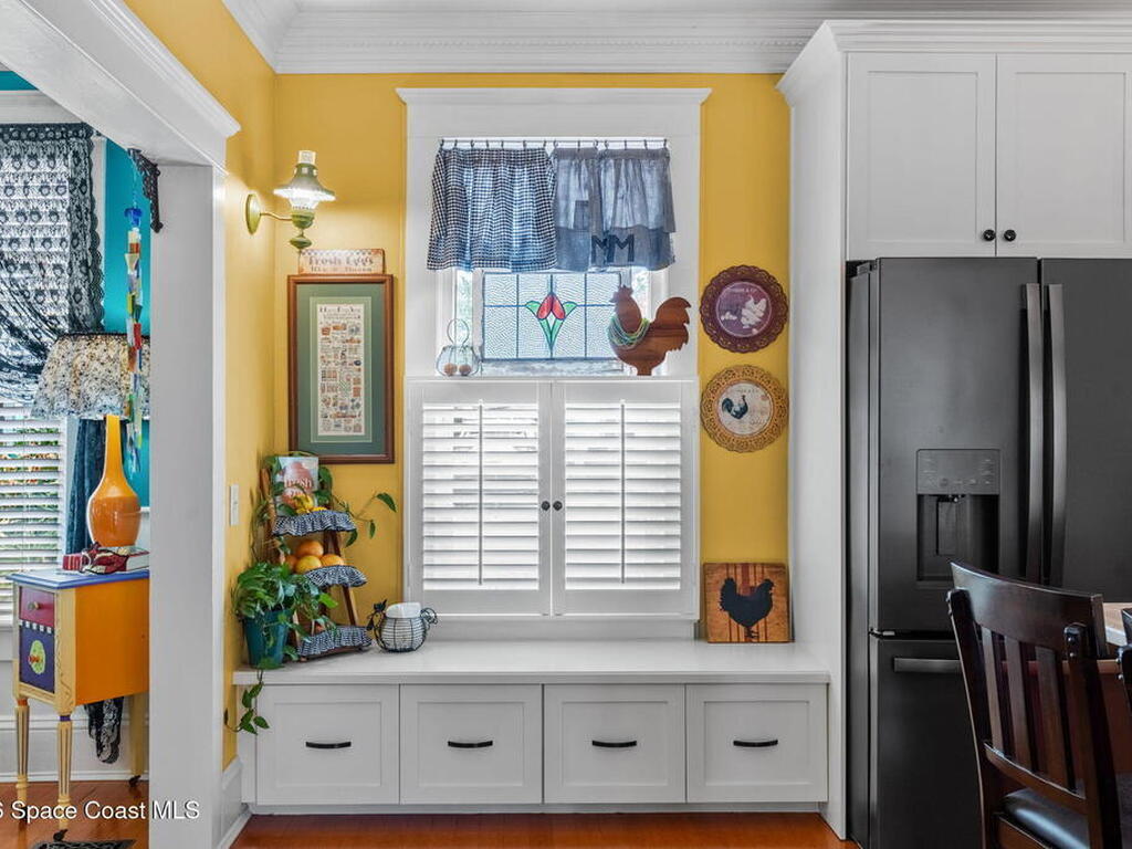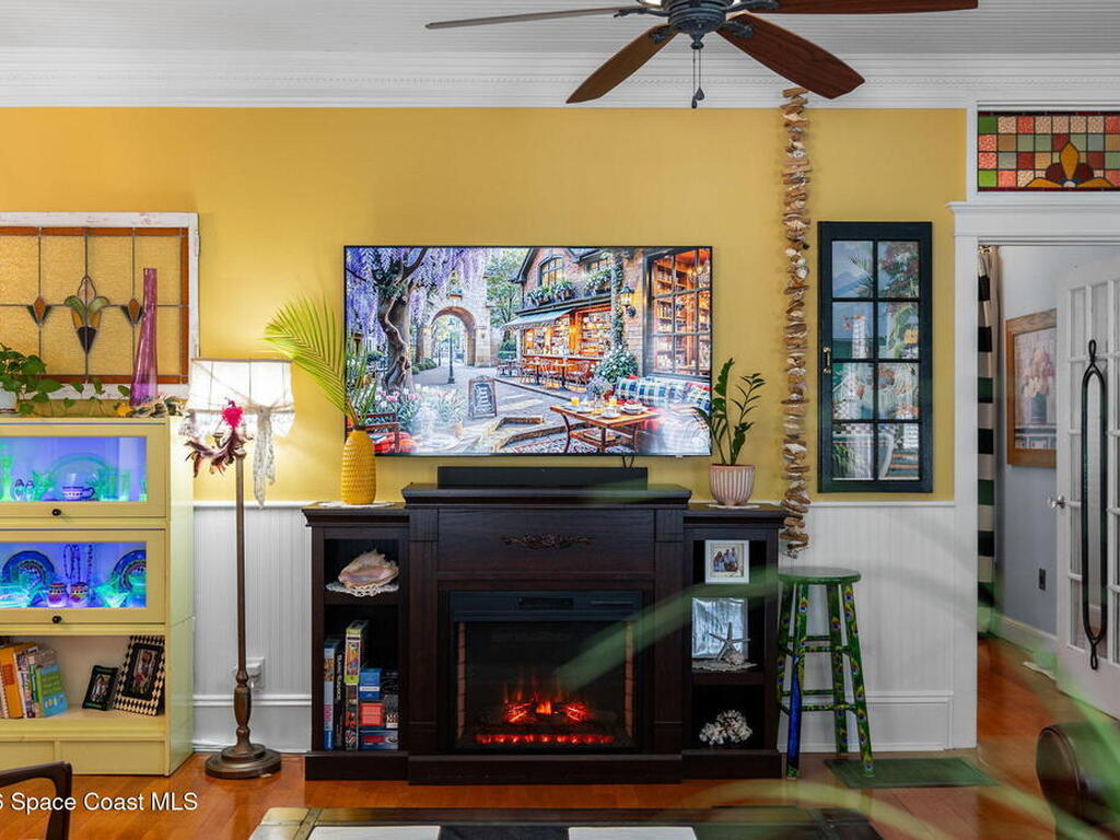 Welcome to Twin Oaks, a truly one-of-a-kind historic gem in the heart of Eau Gallie's sought-after Sunny Point neighborhood. One of the first homes built in the area, this property is rich in character and charm. The main house is 1, 584 sq ft with 2 beds/ 2 baths. The bright, open floor plan is filled with natural light from beautiful windows, while real hardwood floors run throughout. Enjoy your morning coffee on the screened front porch and unwind on the screened back lanai in the evenings. The detached 400 sq ft cottage provides incredible flexibility -- perfect for a home office or guest suite. If used as a second home or an investment, the property offers excellent income-producing potential. Step outside to a private, courtyard-style backyard designed for easy maintenance and tropical living. This secluded oasis features a summer kitchen, outdoor TV, greenhouse, and lush landscaping that creates a peaceful retreat. The enclosed former carport now serves as a spacious.
