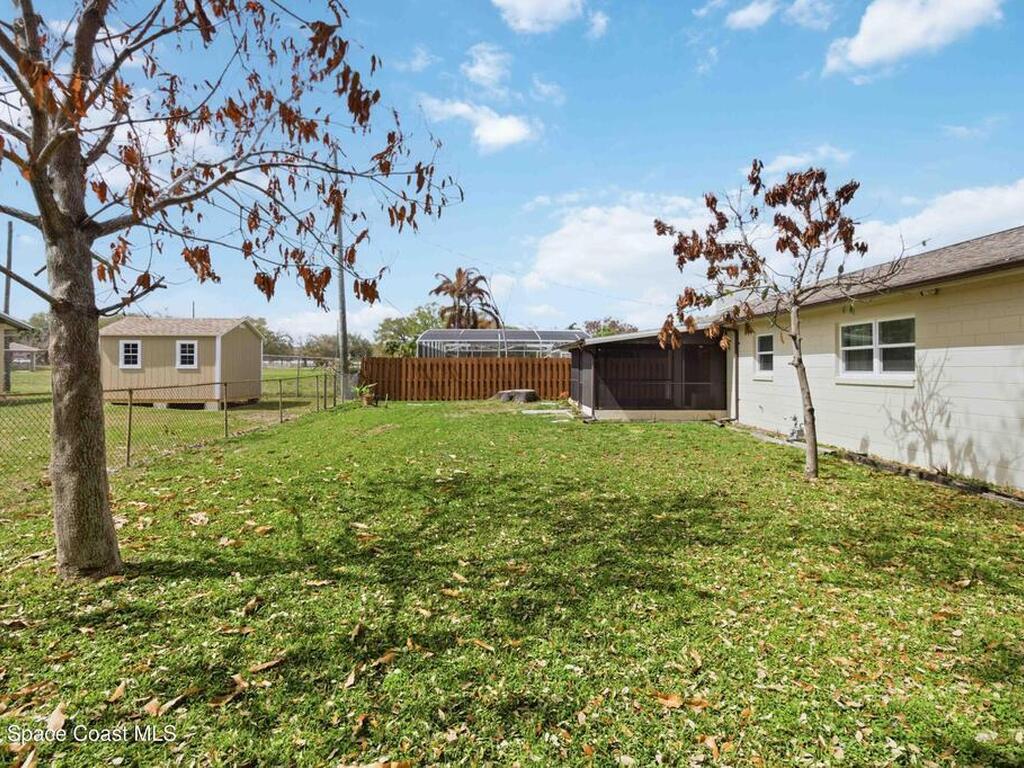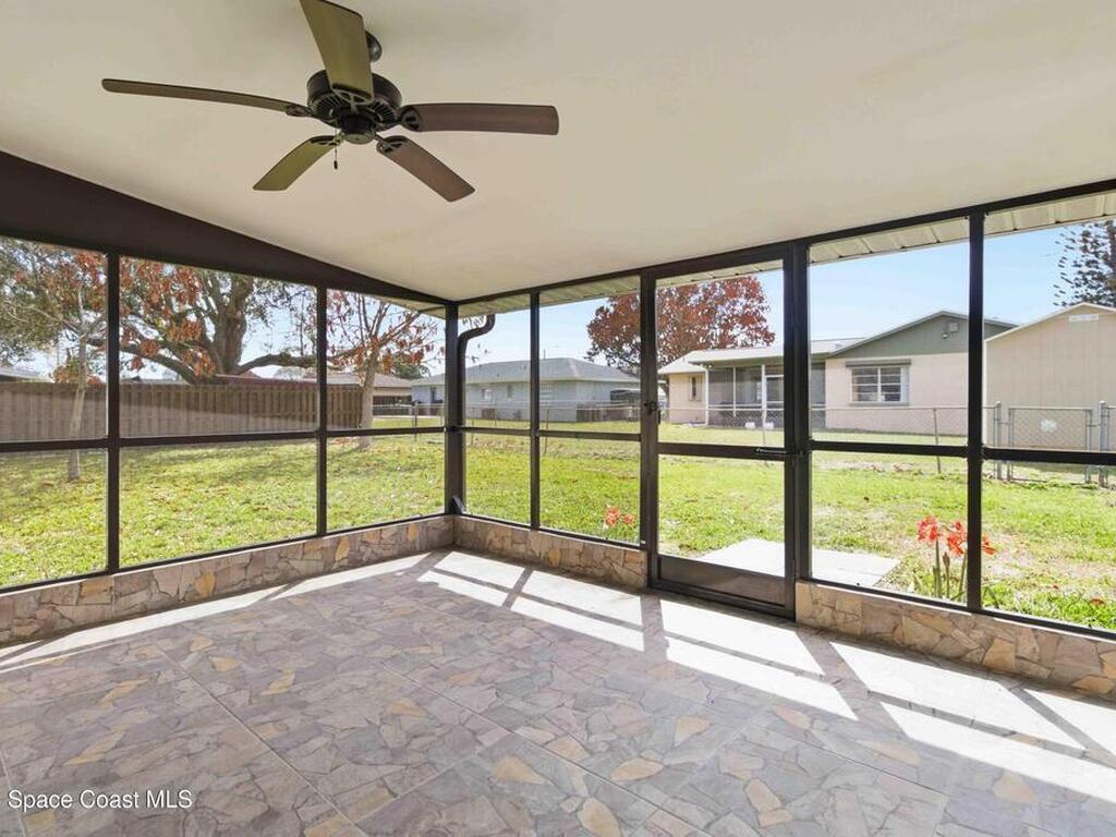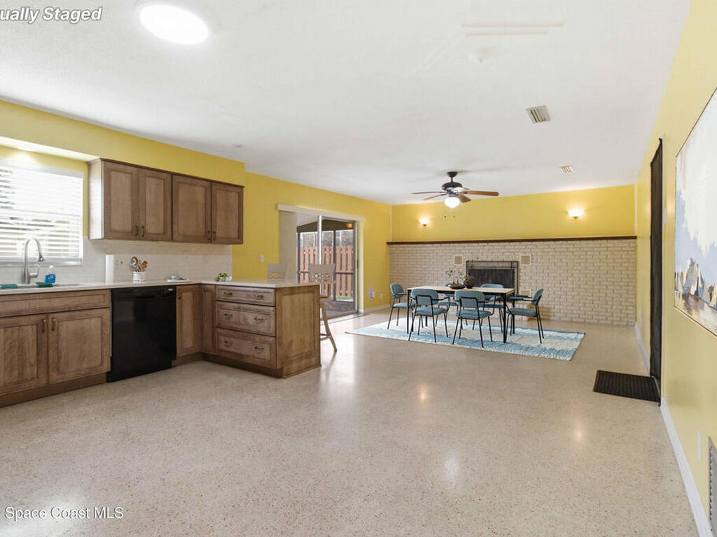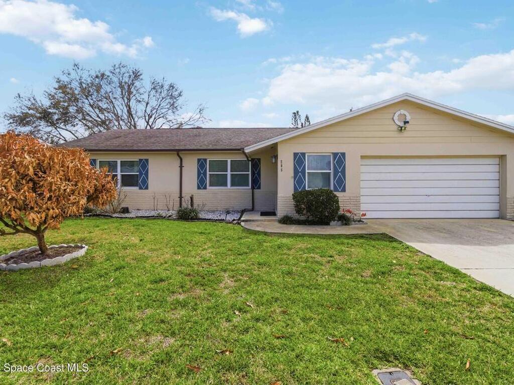 Coastal charm meets modern comfort in this move-in ready, well-maintained Merritt Island home! This 3-bedroom, 2-bath concrete block home offers 1, 730 sq ft on a quiet dead-end street with no HOA. Terrazzo floors flow throughout, while the open layout leads to a renovated kitchen with ample cabinets and counter space. The dining area features a stone-accented fireplace and sliding doors to a screened lanai--perfect for entertaining or relaxing.Upgrades include new electrical throughout, hurricane impact windows, and fresh interior paint. The primary suite offers dual closets and a private bath, with additional bedrooms for family, guests, or a home office. Outside, enjoy a fully fenced backyard and 2-car garage. Minutes from shopping, dining, and the beaches of Cocoa Beach and Cape Canaveral, this home blends comfort, style, and Florida coastal living.Mortgage savings may be available for buyers of this listing.
