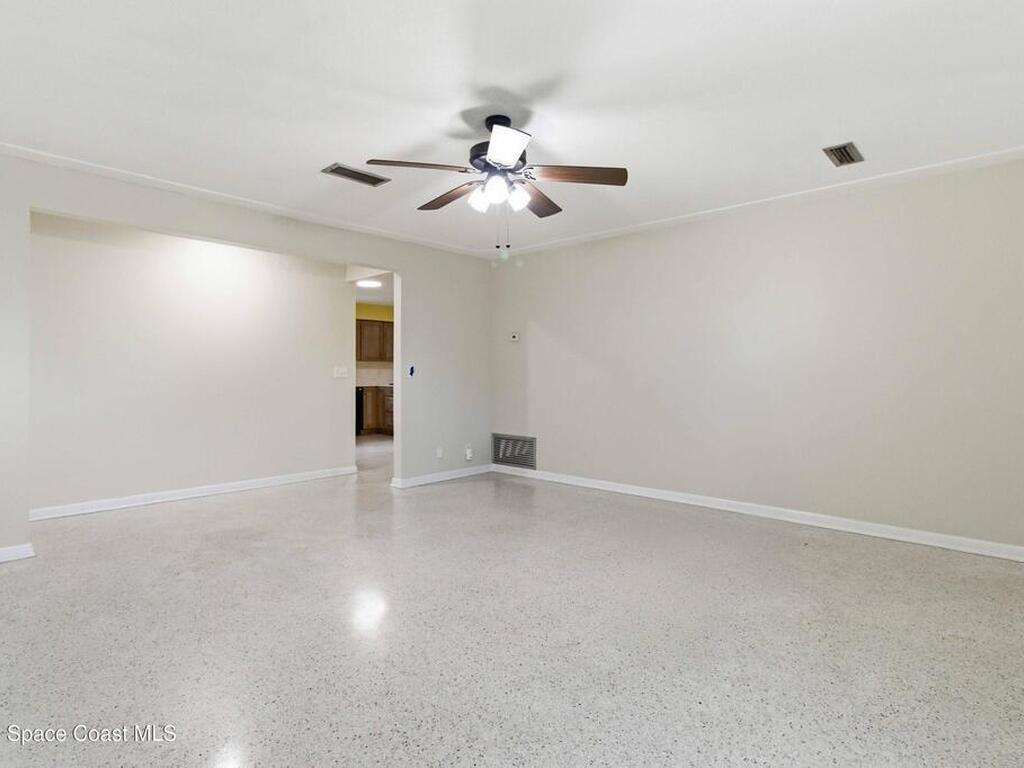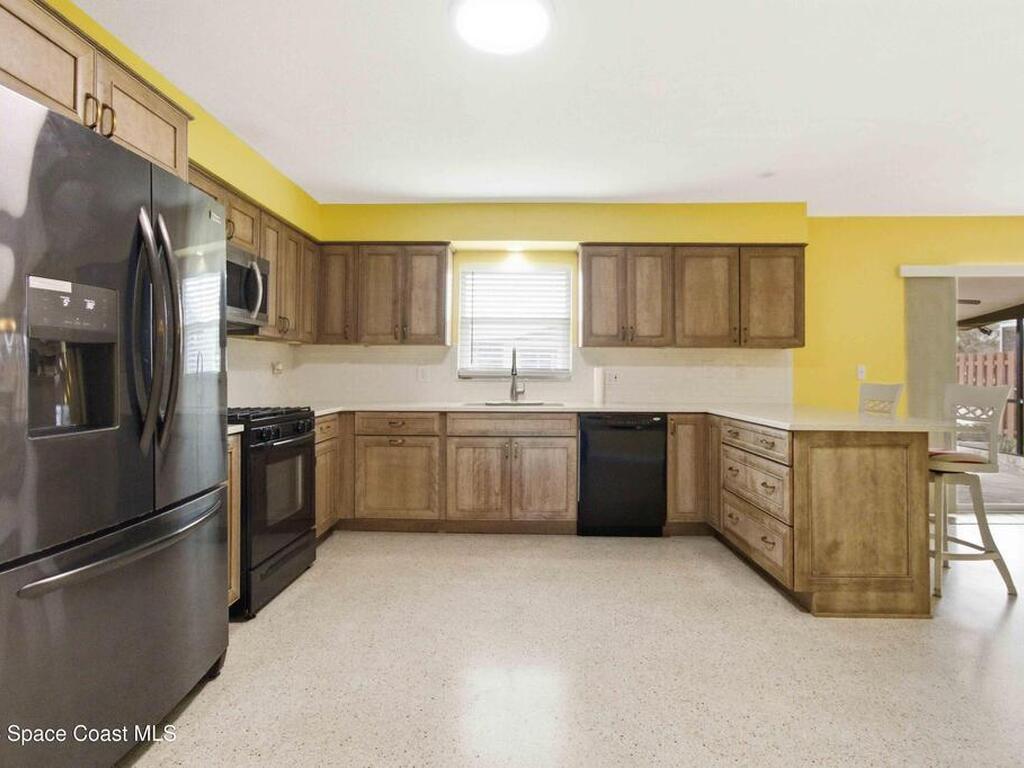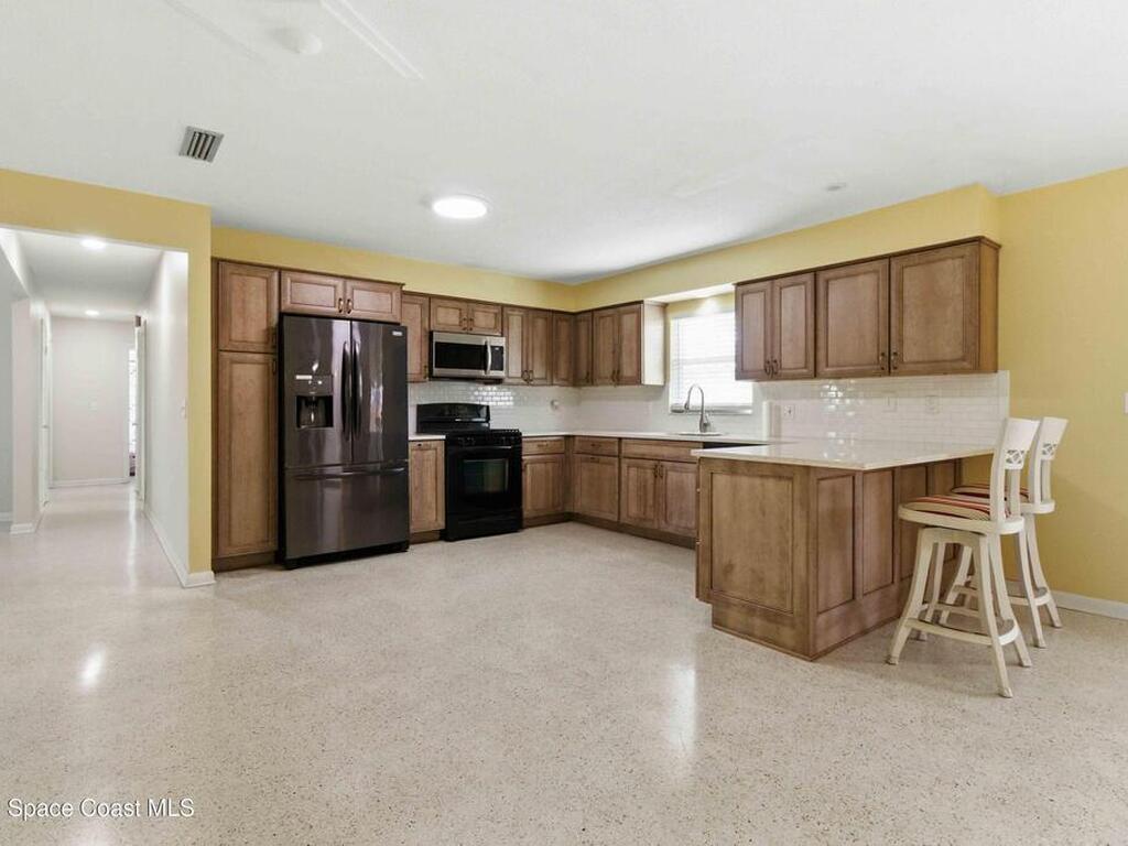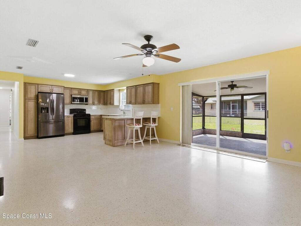Coastal charm meets modern comfort in this move-in ready, well-maintained Merritt Island home! This 3-bedroom, 2-bath concrete block home offers 1, 730 sq ft on a quiet dead-end street with no HOA. Terrazzo floors flow throughout, while the open layout leads to a renovated kitchen with ample cabinets and counter space. The dining area features a stone-accented fireplace and sliding doors to a screened lanai--perfect for entertaining or relaxing.Upgrades include new electrical throughout, hurricane impact windows, and fresh interior paint. The primary suite offers dual closets and a private bath, with additional bedrooms for family, guests, or a home office. Outside, enjoy a fully fenced backyard and 2-car garage. Minutes from shopping, dining, and the beaches of Cocoa Beach and Cape Canaveral, this home blends comfort, style, and Florida coastal living.Mortgage savings may be available for buyers of this listing.