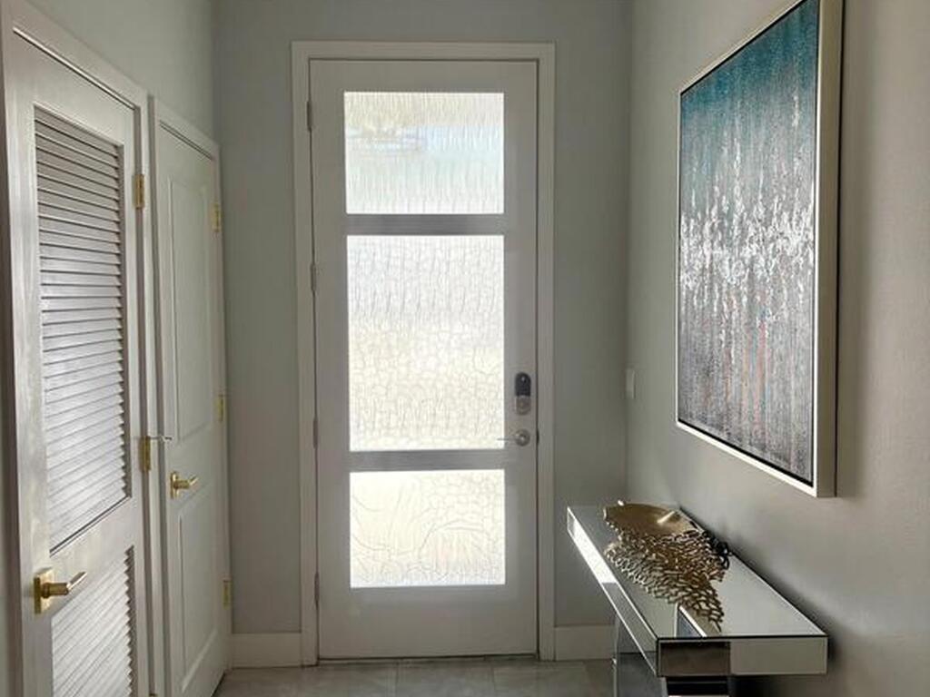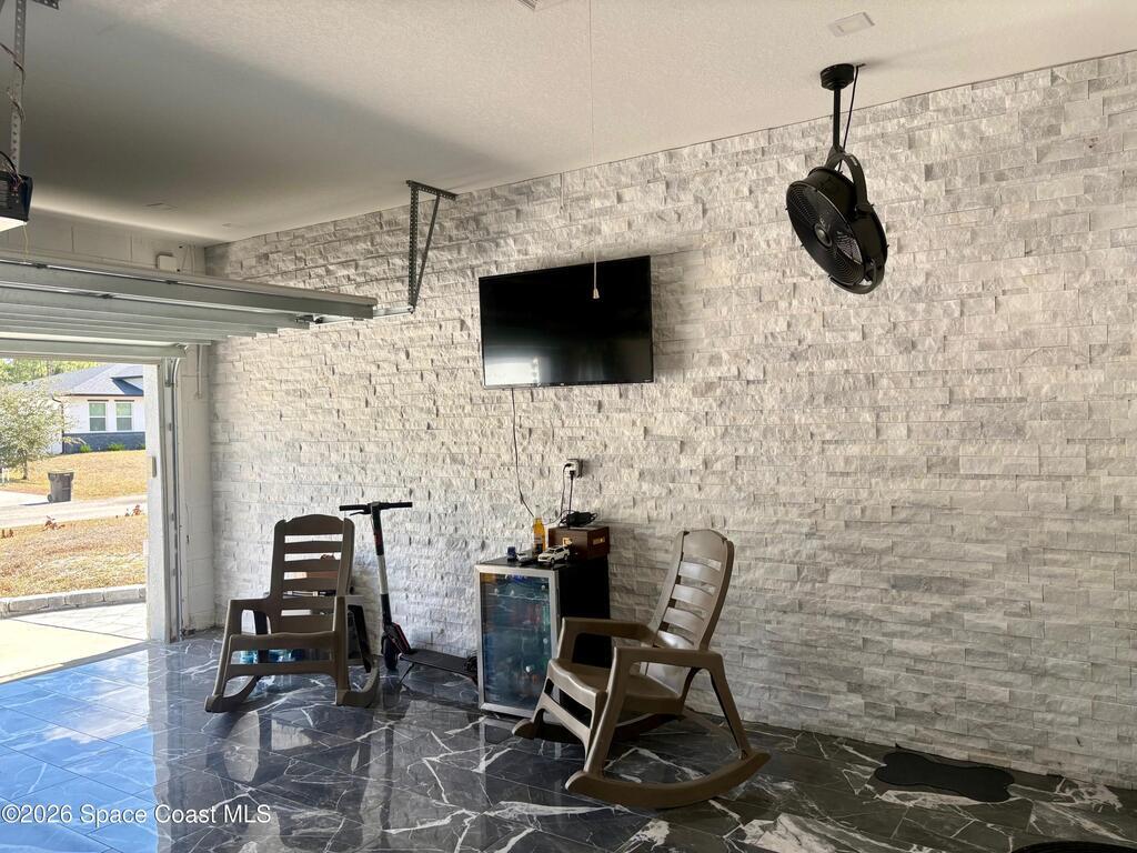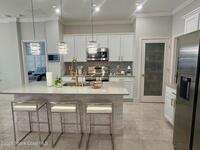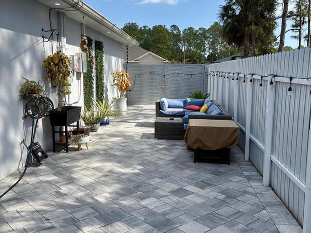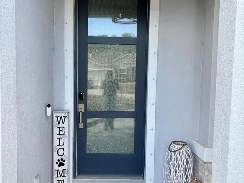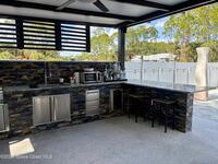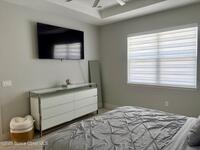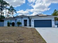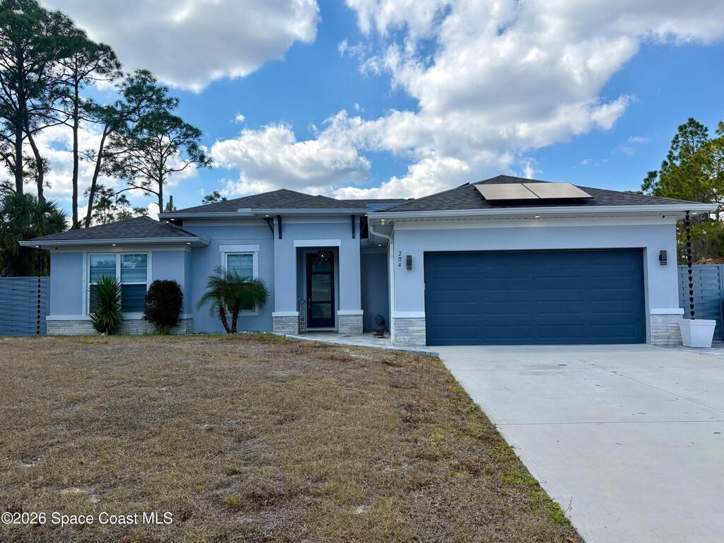 Welcome to one of the most upgraded 4-bedroom homes in SW Palm Bay! This high-quality, energy-efficient home is designed to produce more energy than it consumes with its solar panel system. Interior upgrades include quartz countertops, ceramic glossy tile flooring, crown molding, Energy Star stainless steel appliances, gold faucets and hardware, smart home features, security cameras, stone accent walls, zebra window treatments, and an electric fireplace. The primary suite features a fully customized walk-in closet and a luxurious shower with double shower heads. Step outside to a spectacular oversized gazebo equipped with a separate Wi-Fi, refrigerator, freezer, sink, bar seating, fan, granite countertop, and privacy curtains--perfect for entertaining. The fully paved and fenced backyard expands the outdoor living space, while the oversized glass front door and glass pantry door add a modern touch.