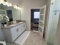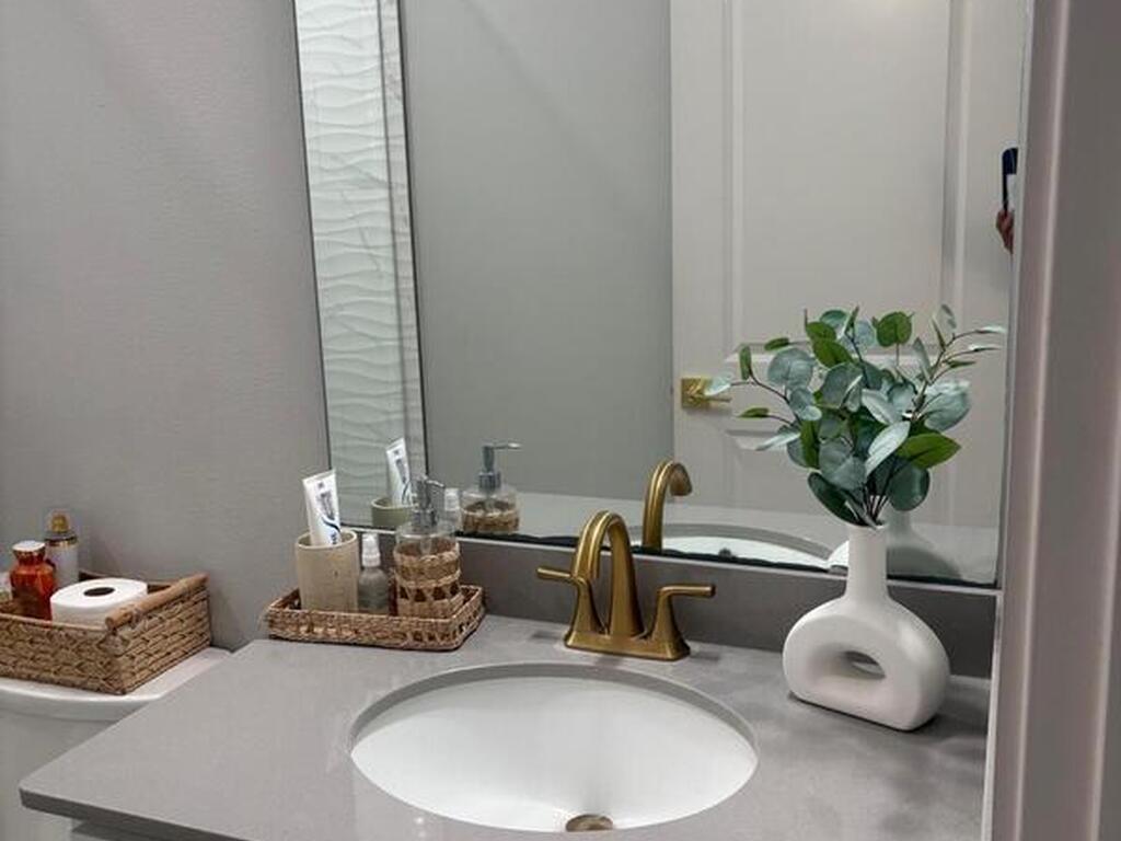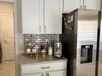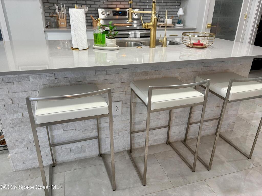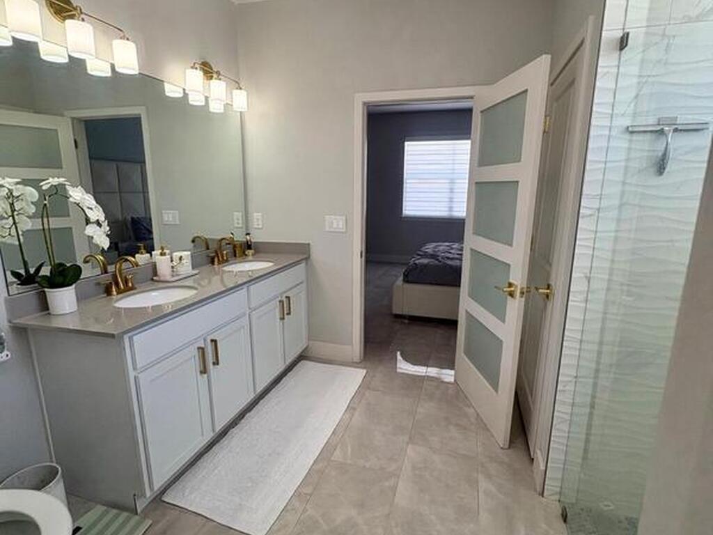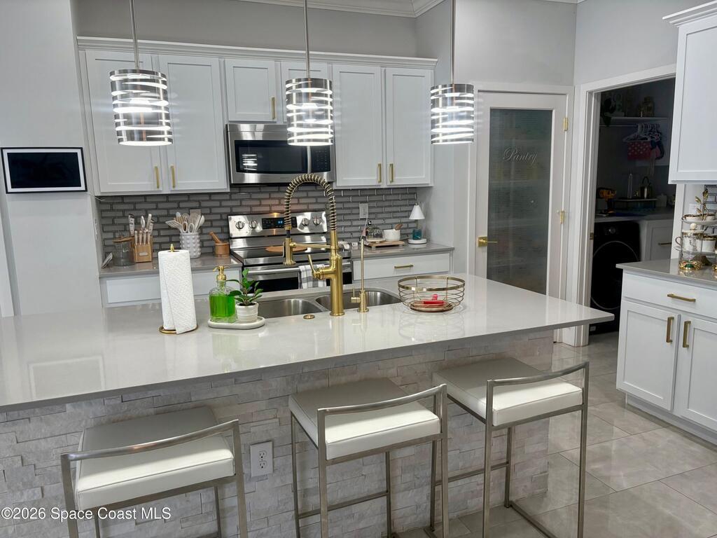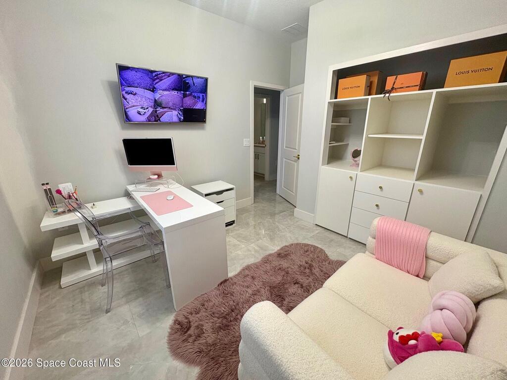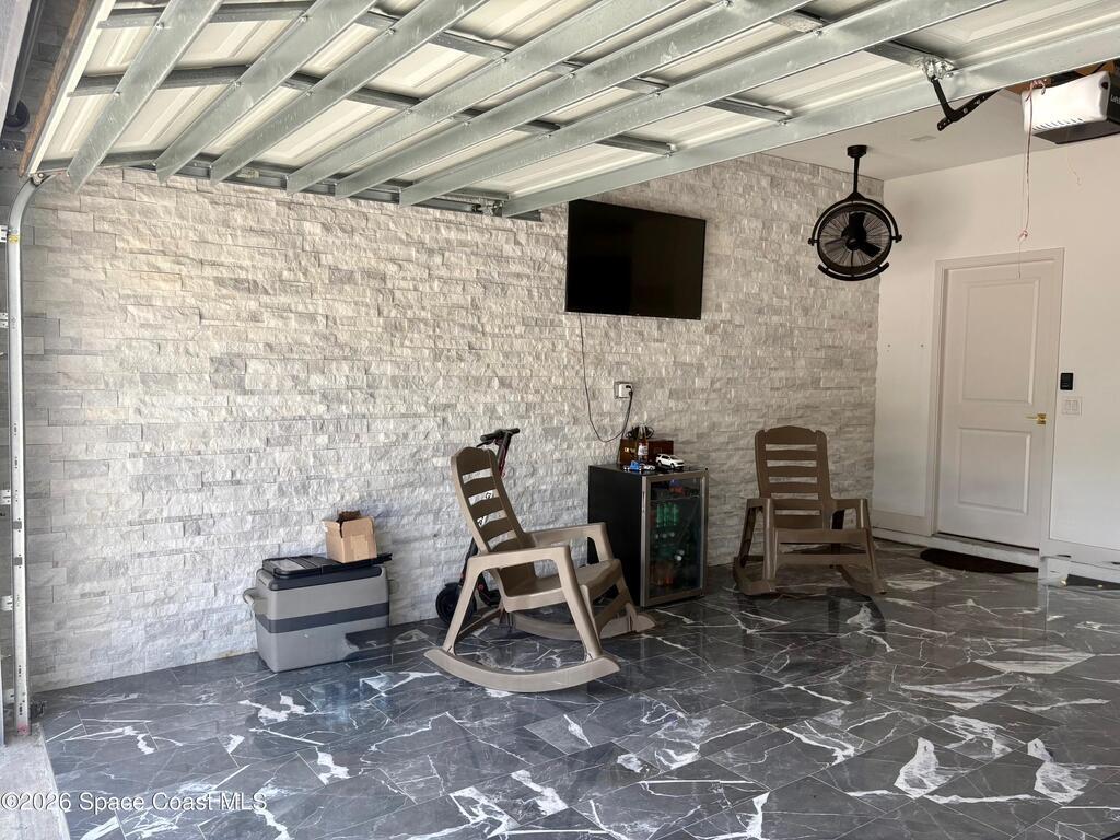 Welcome to one of the most upgraded 4-bedroom homes in SW Palm Bay! This high-quality, energy-efficient home is designed to produce more energy than it consumes with its solar panel system. Interior upgrades include quartz countertops, ceramic glossy tile flooring, crown molding, Energy Star stainless steel appliances, gold faucets and hardware, smart home features, security cameras, stone accent walls, zebra window treatments, and an electric fireplace. The primary suite features a fully customized walk-in closet and a luxurious shower with double shower heads. Step outside to a spectacular oversized gazebo equipped with a separate Wi-Fi, refrigerator, freezer, sink, bar seating, fan, granite countertop, and privacy curtains--perfect for entertaining. The fully paved and fenced backyard expands the outdoor living space, while the oversized glass front door and glass pantry door add a modern touch.