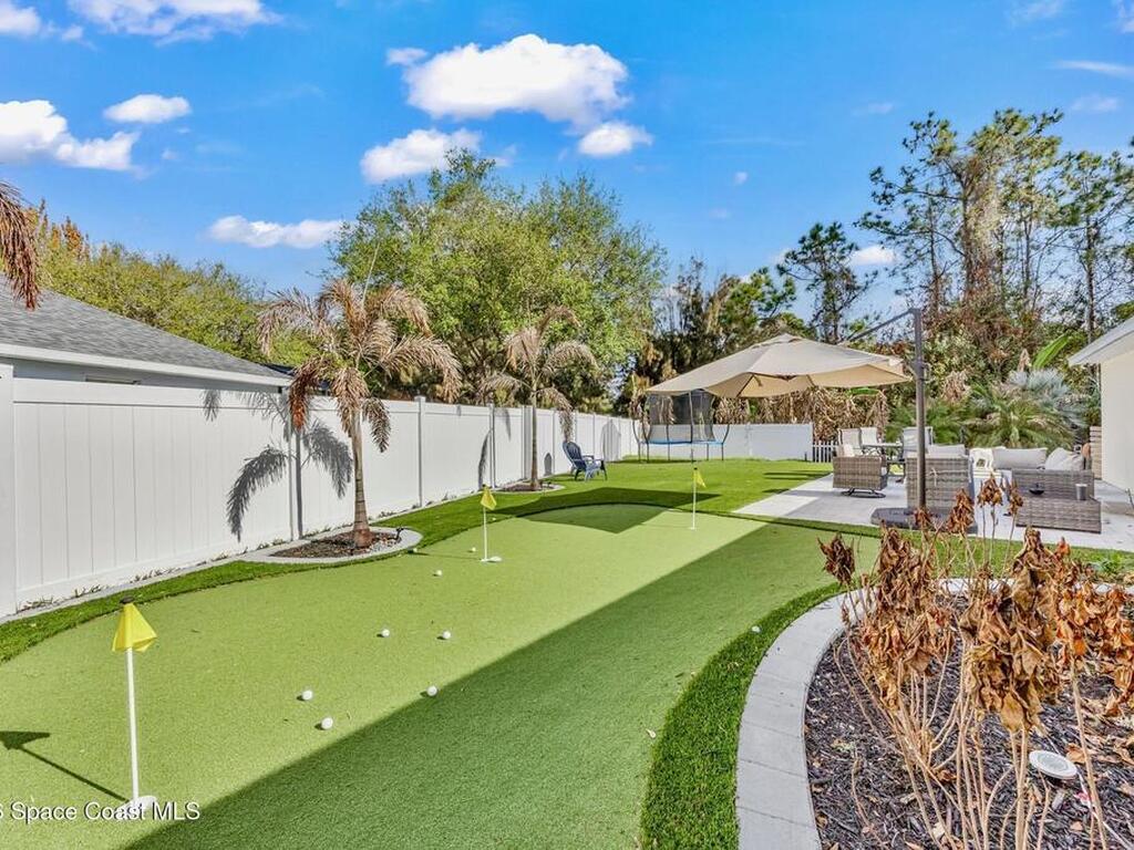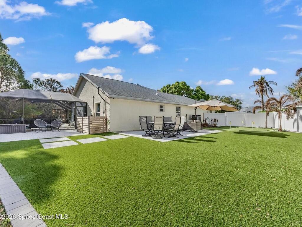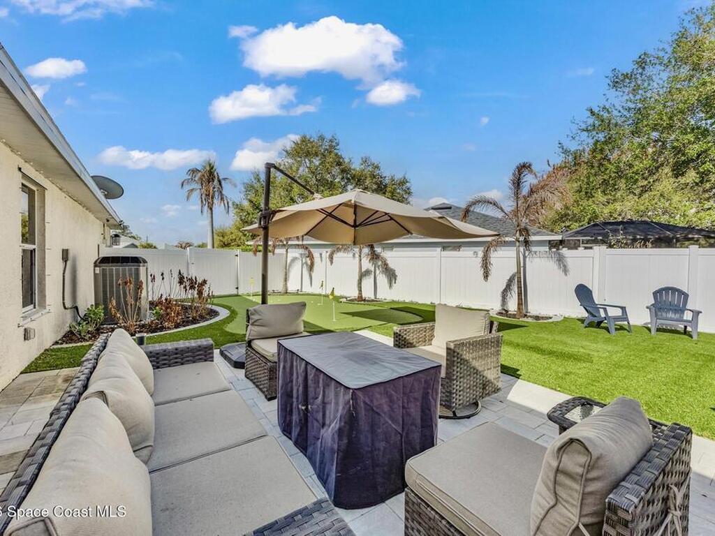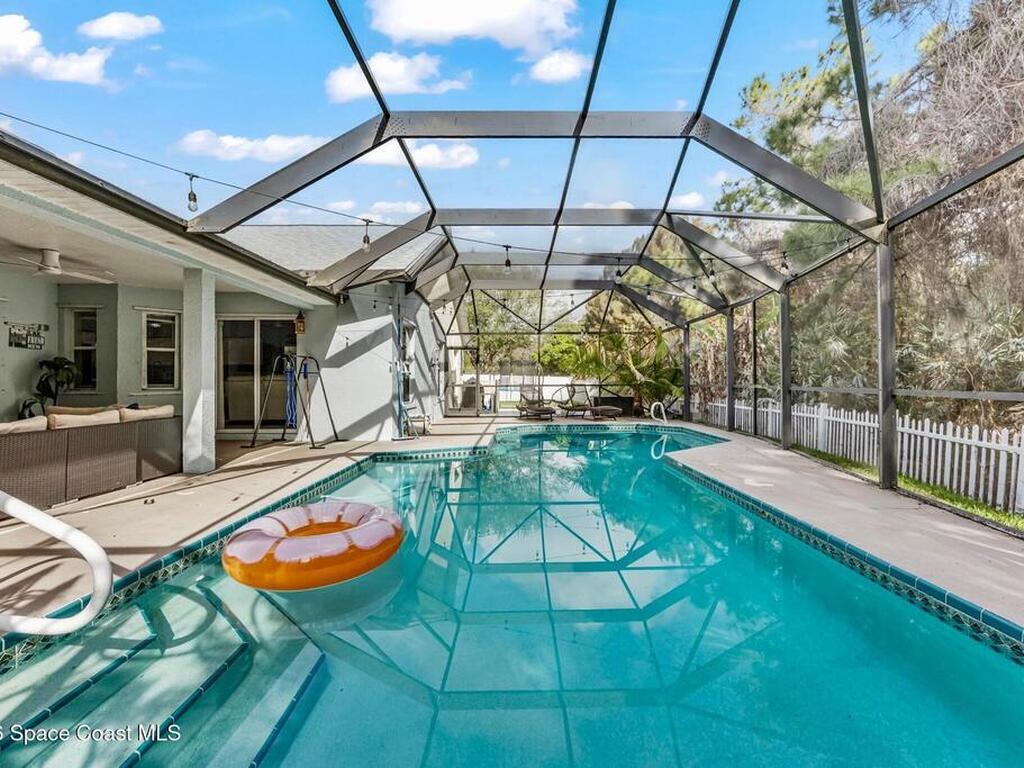 Beautiful 3-bedroom, 2-bath split floor plan pool home located on a cul-de-sac in the desirable Oak Grove community, backing up to a private preserve for added privacy and peaceful views. Situated on a spacious .31-acre lot, this property offers plenty of room to enjoy both indoor and outdoor living. Major updates include a 2024 roof and 2022 AC. The home features an updated kitchen with granite countertops, new bathroom vanities, and a functional layout perfect for everyday living and entertaining. Step outside to a screened-in inground pool and a fully updated backyard featuring a high-quality AstroTurf putting green, two paver patios, and LED landscape lighting throughout. The Oak Grove community also offers a playground for children, and the home is centrally located to everything Melbourne has to offer and within a highly desirable school district. A perfect combination of location, privacy, and upgrades