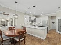 Welcome to luxury living where space, style and coastal life come together. Located in sought-after South Merritt Island this stunning estate boasts over 3, 000 square feet of thoughtfully designed space showcasing quality craftmanship and upscale finishes for both relaxed family living and elegant entertaining. At the heart of the home is a gourmet chef's kitchen, beautifully updated with stunning quartz countertops, stainless-steel appliances, custom cabinetry and generous prep space flowing seamlessly into the main living areas, creating a bright and open atmosphere. Step outside to your jaw-dropping backyard oasis, featuring a sprawling covered lanai that extends your living space and creates the ultimate setting for Florida indoor-outdoor living complete with an oversized sparkling pool, and a relaxing hot tub that creates the perfect private retreat for entertaining, unwinding, and enjoying the coastal breeze. This residence delivers the perfect blend of luxury and comfort.