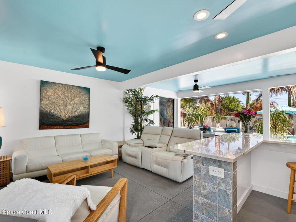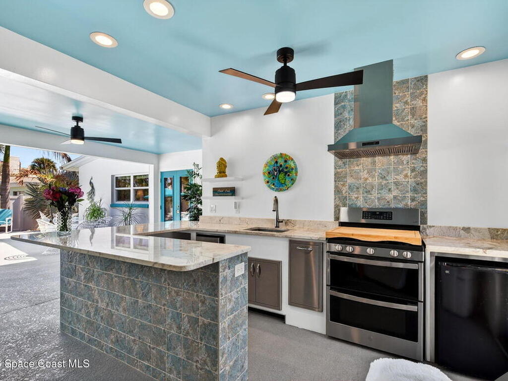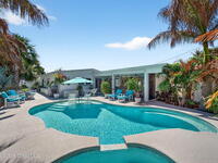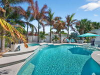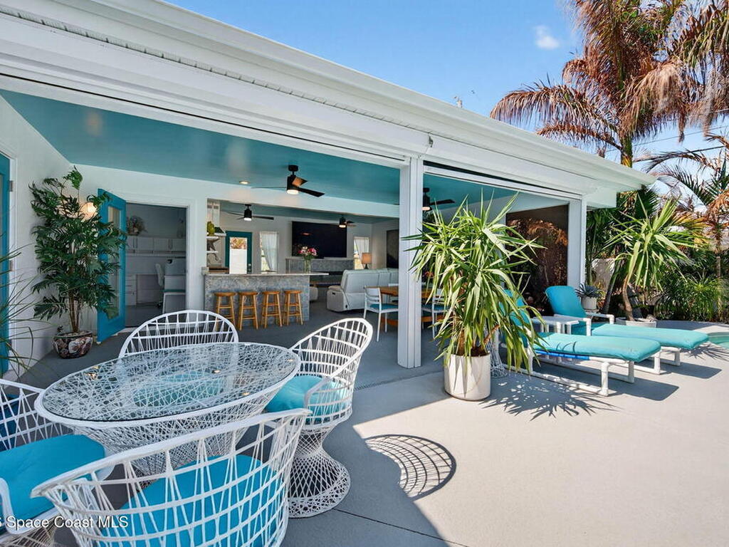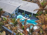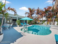 Rare opportunity to own a move-in ready home & embrace a coastal living lifestyle. Fall In Love with this tastefully renovated & captivating Tropical Oasis, steps to the beach. Enjoy living in this tranquil paradise & private single-family pool & spa residence. Vintage style accents to respect the age & character of this home blended with all the modern conveniences & upgrades you would want. A beautiful kitchen, stainless steel appliances, lovely cabinetry & open to first living/dining room. Your sparkling pool & spa are off the trussed tropical indoor/outdoor climate control sunroom with summer kitchen, decorative/functioning fireplace, lounging living room & dining area, a fully rated electric hurricane screen, an inverter heater/ac cooling system will make this the center of your living year-round. Enjoy mature trees, ocean breezes & rocket launches from your back yard. Ample Parking for 4 cars & a separate office/4th bedroom/laundry room.