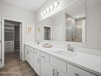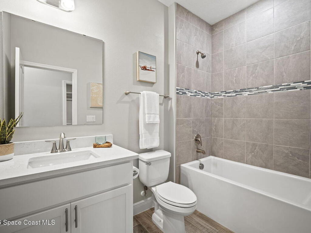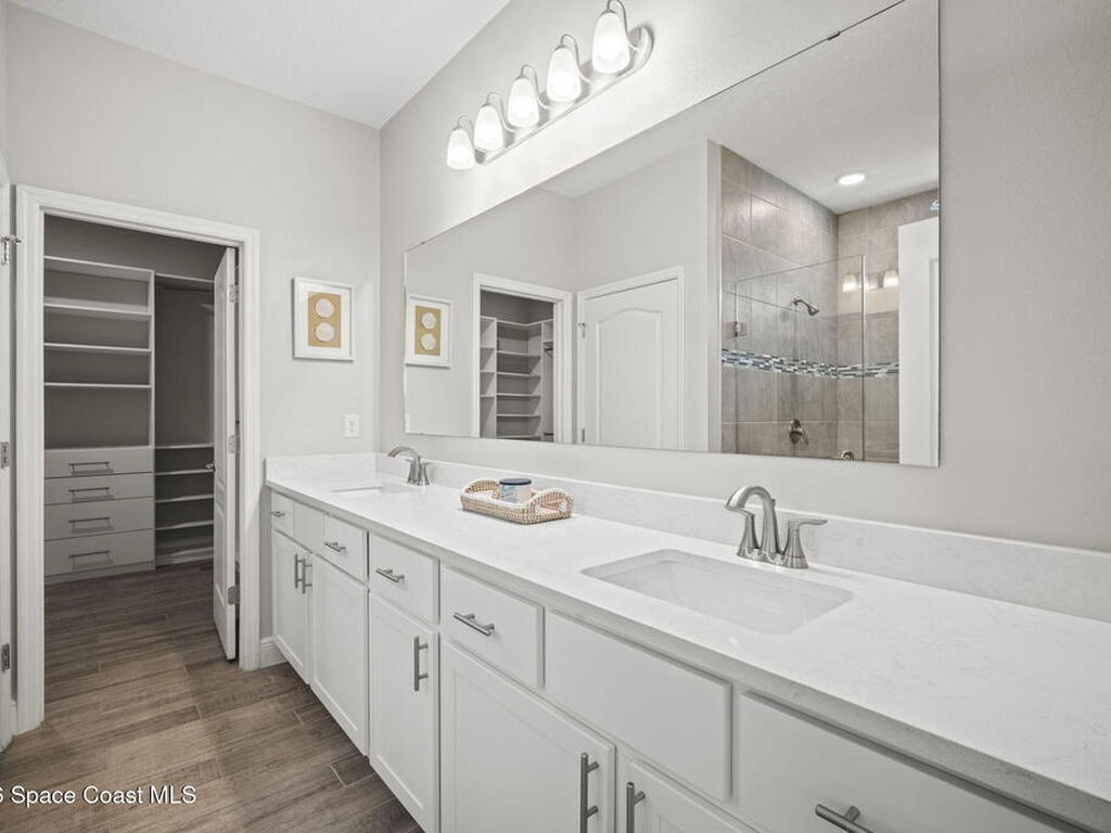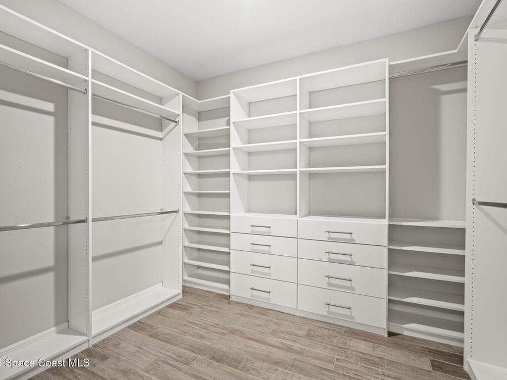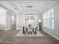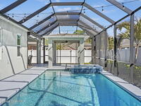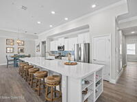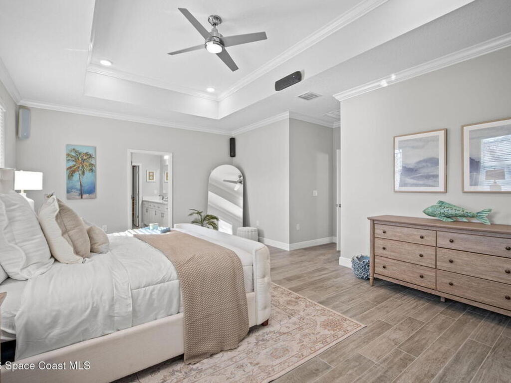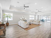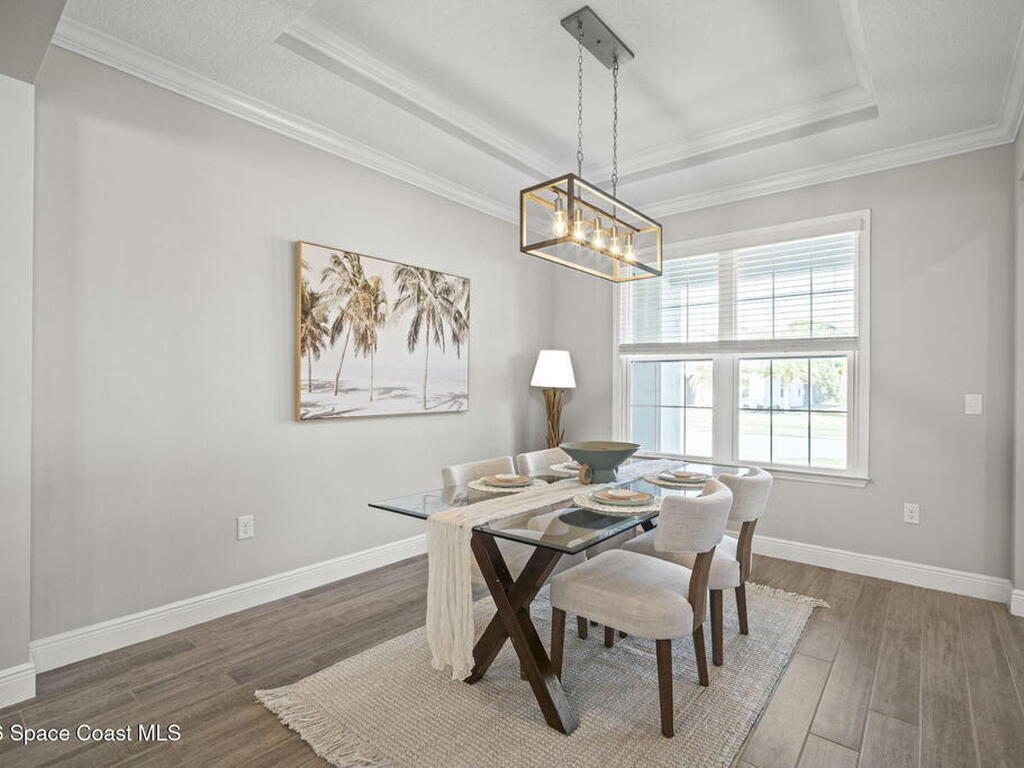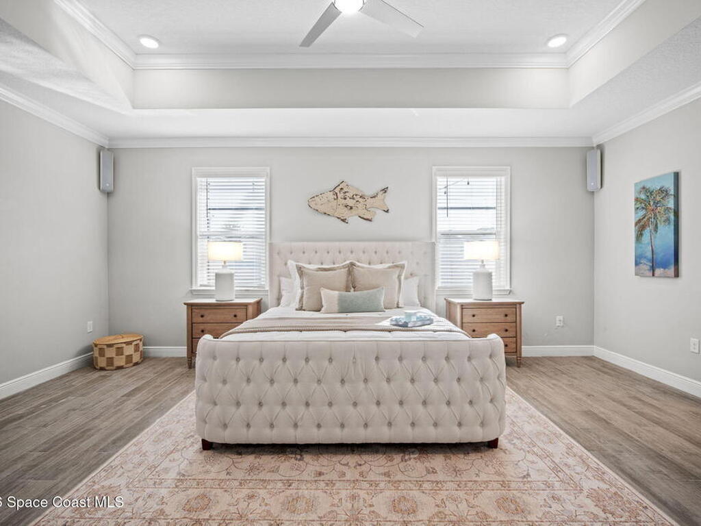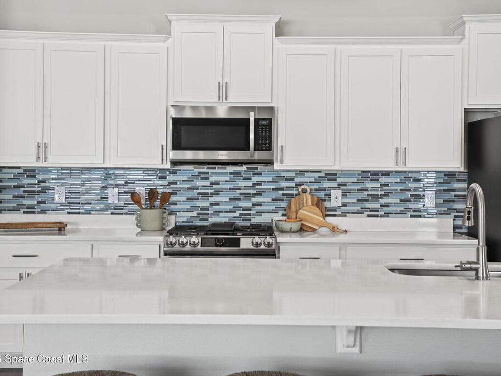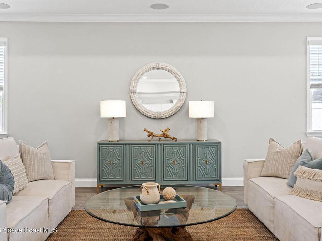 Step into the Space Coast Lifestyle you've been dreaming of in N Merritt Island! Offering just over 3, 000', 4BR, 3BA + Office & 3 Car Garage. Soaring 12' Ceilings w/ Tray Accents, Crown Molding throughout & a bright Open Floor Plan. Chef's Kitchen features Quartz Counters, 42'' Solid Wood Cabinets, Custom Backsplash, Energy Star SS Appliances, Wine Frig & oversized 14' Island for everyday living & entertaining. Wired for Whole Home Audio/Video, Smart Garage Opener & Gas Tankless WH. Primary Suite offers a massive Walk-in CA Closet & Spa Style Bath w/ Dual Sinks, Quartz Counters, & Walk-in Shower w/ Dual Shower Heads. Backyard retreat that lives like a private resort, w/ a Screened-in, Gas Heated Pool + Spa, Custom CBS Gazebo, & Kevlar Hurricane Retractable Screens + a Key West Style Mural in the Patio Area so it feels like your own beach escape. Impact Windows + Storm Shutters for peace of mind. Approx 10 min to KSC, 20 min to Cocoa Beach & 40 min to MCO.