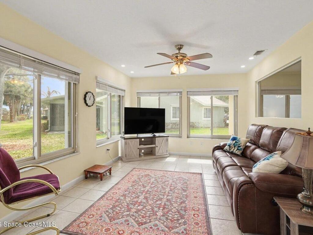 Located in a resort-style country club community, offering top-notch amenities for an exceptional Florida lifestyle. this expanded Bangor with split plan, vaulted ceilings, and large Florida Room exudes charm. This home boasts great views through it's updated windows! Formal dining room, breakfast nook, indoor laundry room and an extra ''imagination/Florida room'' make this a very desirable home. Completely updated Owner's Suite with porcelain wood-look tile in the bedroom and updated bathroom with quartz countertops, new double-sink vanity, tile floors and glass-enclosed shower. This is a must-see gem. Home to over 600 Military Veterans, Indian River Colony Club is a Private 55+ Country Club community with an extensive maintenance program for each home, an 18-hole golf course, fine dining restaurant with an executive chef & the 19th Hole restaurant and bar
