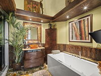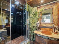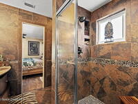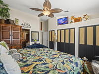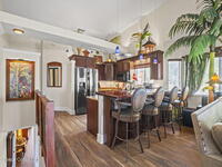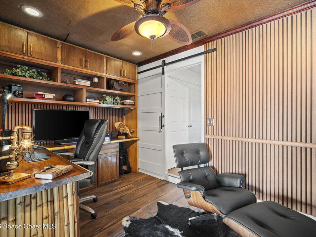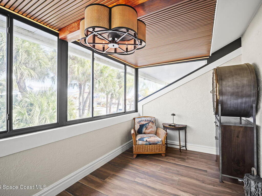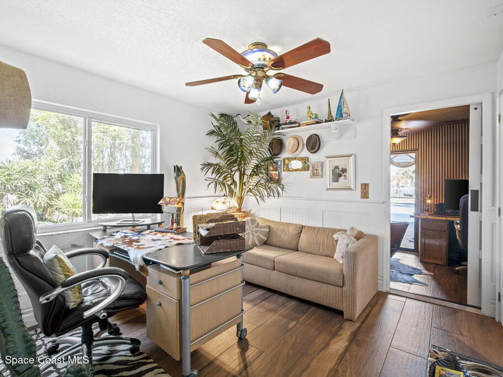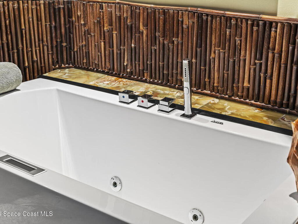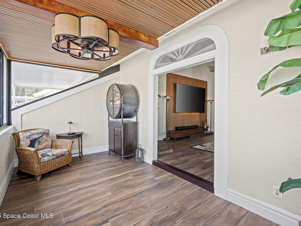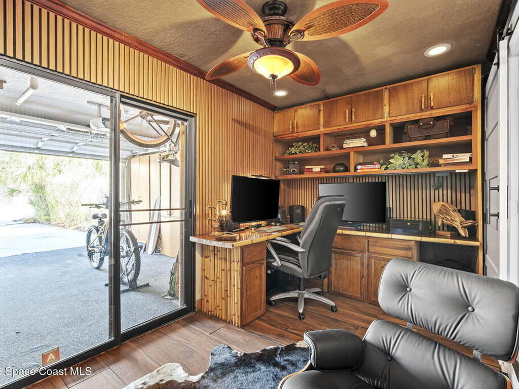 Tropical paradise just steps from the beach in Cape Canaveral! This one-of-a-kind 3 bedroom, 2 baths + office townhome is the only property on the east side of Ridgewood Ave to span an entire city block (BUILDABLE LOT INCLUDED), offering rare privacy and endless possibilities. Arrive through lush, manicured tropical landscaping that feels like your own island retreat. The backyard is an entertainer's dream with a stunning blue lagoon pool, travertine pavers, and a one-of-a-kind tiki pavilion with a fully built-out bar. A rare vacant lot provides room for a guest house, future investment property, or space for all your toys. Inside feels like a Hawaiian escape with wood-look tile floors and custom touches throughout. The open floor plan flows effortlessly as the kitchen overlooks the spacious family room with vaulted ceilings. The primary suite overlooks the tropical backyard and features a spa-like bath with steam shower and soaking tub.