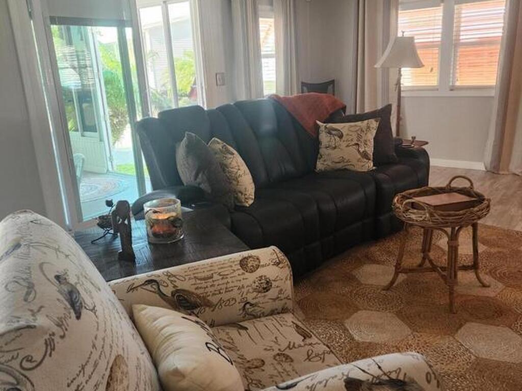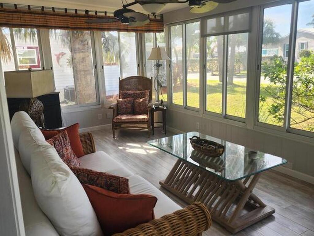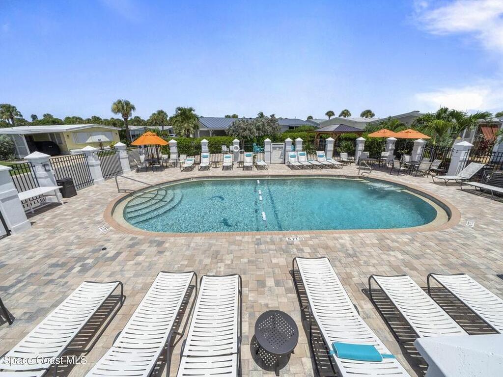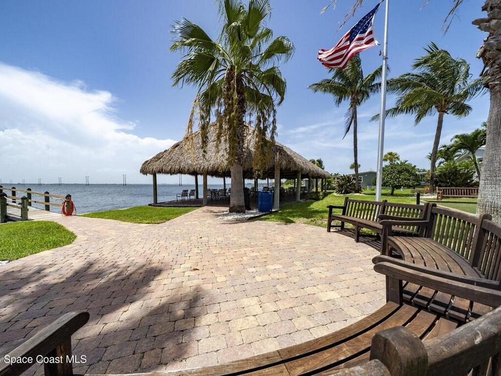 Spacious 2 bedroom home on a corner lot, Across the street from the Indian River with peekaboo views from the Florida Room. Just blocks from the private ocean access, Community heated pool, Boat and fishing dock, Huge Tiki Hut, Outdoor kitchen and Clubhouse. Tons of activities and events all year long. Resort living in beautiful Melbourne Beach! Great restaurants and and shopping! Owner willing to rent long or short term.