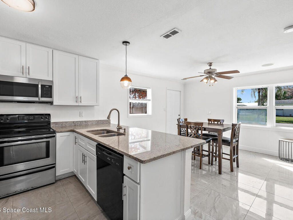 Live just minutes from the beach and vibrant Downtown Melbourne in this beautifully renovated home for less than the cost of rent and no HOA! This concrete block home is move-in ready and features a recently renovated bath & piping, granite kitchen with breakfast bar and pantry, open living space and tile flooring throughout. Step outside to enjoy the fully fenced yard, perfect for gatherings and pets PLUS room for a pool. The spacious storage shed equipped with electricity is ideal for projects or additional storage. The property includes a one-car carport, 2025 HVAC, 2021 roof & convenient laundry room. Only 15 minutes to the beach, close to Historic Downtown Melbourne's restaurants, cafes and shopping and near Florida Institute of Technology and Melbourne Airport. This home presents an exceptional opportunity for 1st time homebuyers or investors seeking a solid investment. Don't miss your chance to own this charming Melbourne home-schedule your showing today and make it yours!