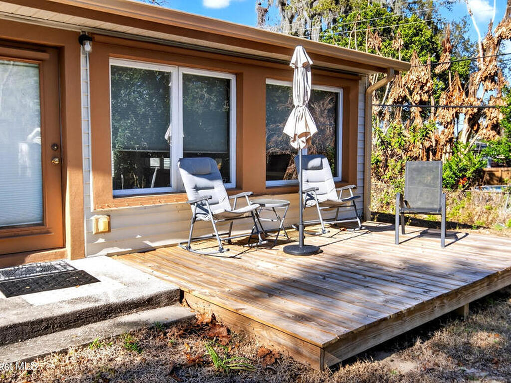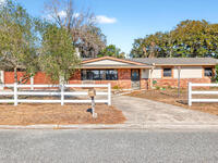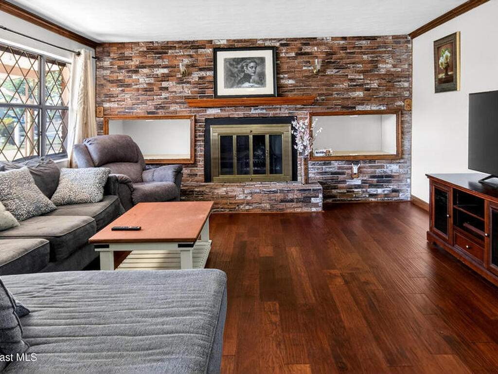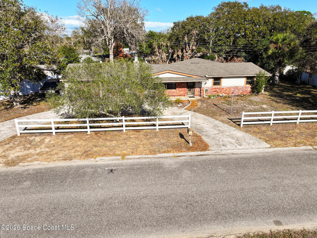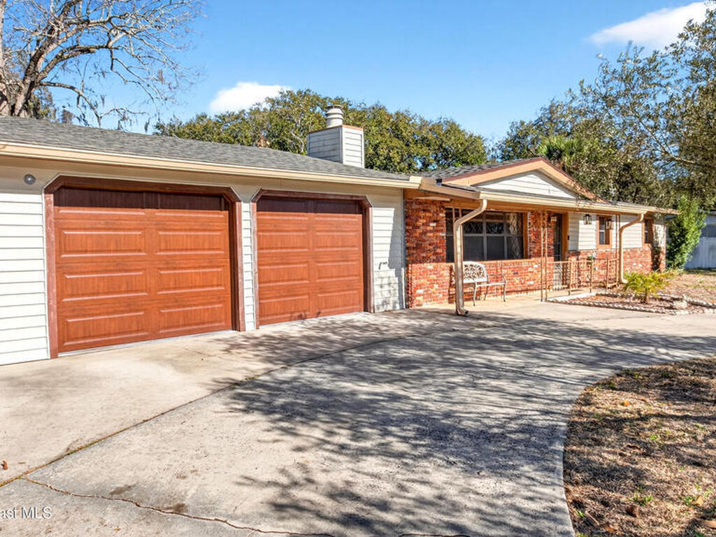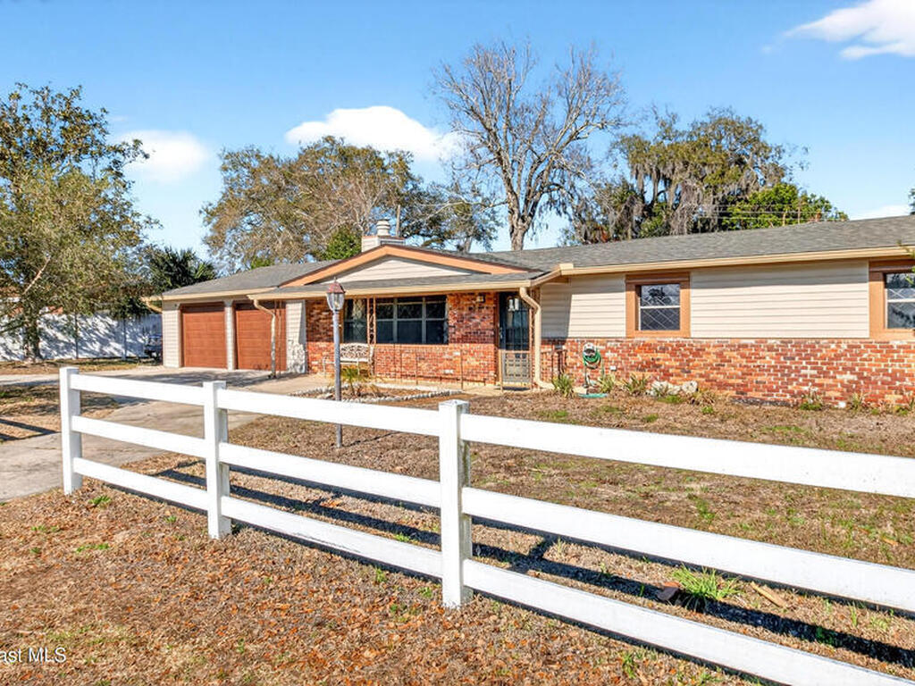 Charming Titusville home in the heart of Florida's Space Coast! A circular driveway and oversized 2-car garage welcome you to this brick-accented residence with great curb appeal. Inside, the inviting living area features wood-style flooring and a dramatic floor-to-ceiling brick fireplace with built-in niches. The galley kitchen offers granite countertops and abundant wood cabinetry. The primary bedroom is a relaxing retreat with elegant French doors that open to a massive sunroom--perfect for morning coffee or entertaining. Dedicated laundry room for added convenience. The yard features fruit-bearing starfruit and olive trees. Ideally located across from Kennedy Space Center where you can watch rocket launches from your back porch. Minutes from world-class fishing in the Indian River and Mosquito Lagoon, Playalinda Beach, and Hwy 50 with direct access to Orlando.