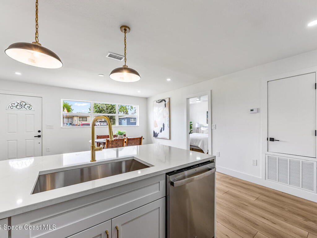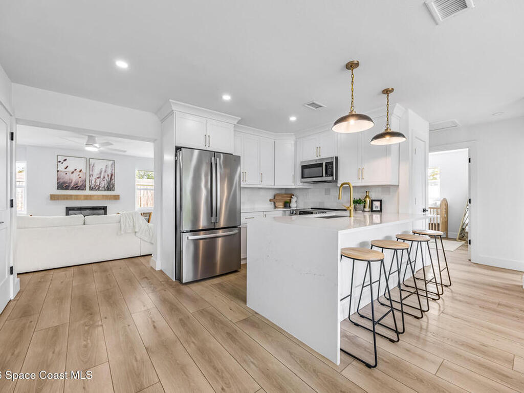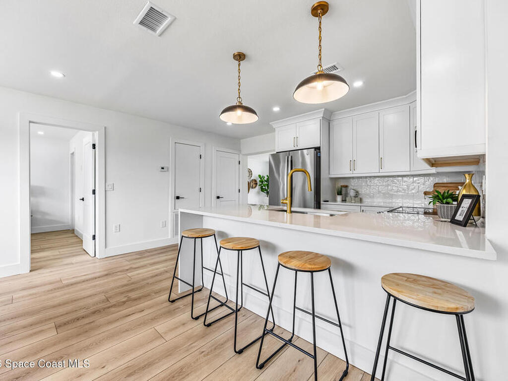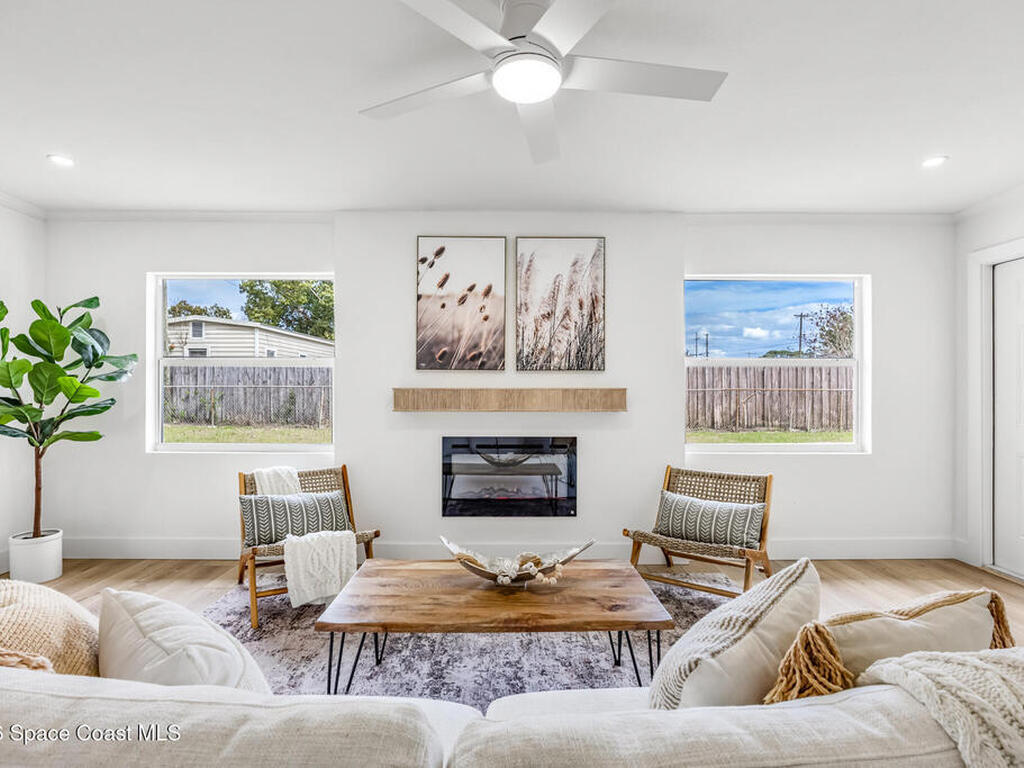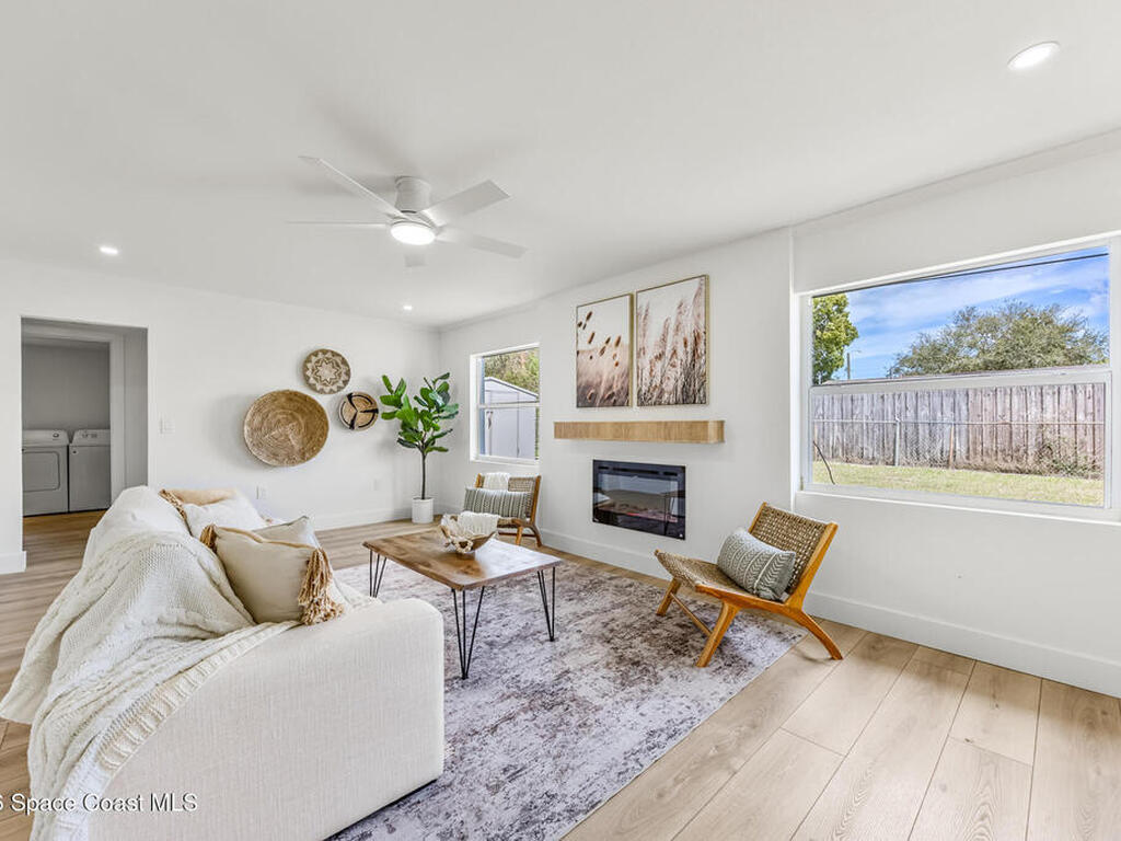 Beautifully remodeled 4-bedroom, 2-bathroom home featuring designer-style finishes and a functional split floor plan. The home offers a modern kitchen, updated bathrooms, spacious indoor laundry room, and a 1-car garage.Enjoy the screened porch overlooking a large backyard, perfect for relaxing or entertaining. Conveniently located near Kennedy Space Center, major employers, shopping, and dining.