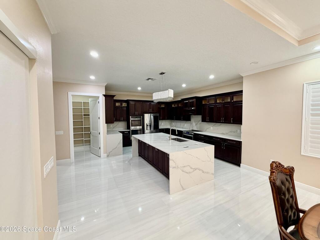 Contractor owner build in 2023 with warranties still in place, this custom home showcases top-tier materials and craftsmanship throughout, including spray foam insulation, fiberglass reinforced cement slab, solid poured concrete pillars, and humidity-reducing A/C system. High-end finishes abound, such as crown molding, epoxy garage floor, impact-resistant windows and exterior doors, and custom chandeliers. Enjoy ample space for outdoor entertaining with an extended lanai and a fully fenced backyard. With No HOA and abundant paved parking, this energy-efficient home offers nearly 4, 000 square feet of climate-controlled living space with noticeably low electric bills. Additional highlights include a dedicated office and a separate exercise room. Ideally located just 45 minutes from Orlando International Airport, 8 minutes to the beach, and 20 minutes to Cape Canaveral.