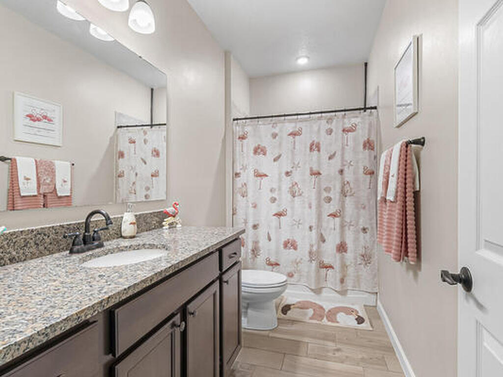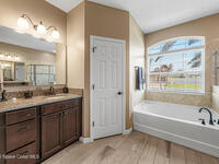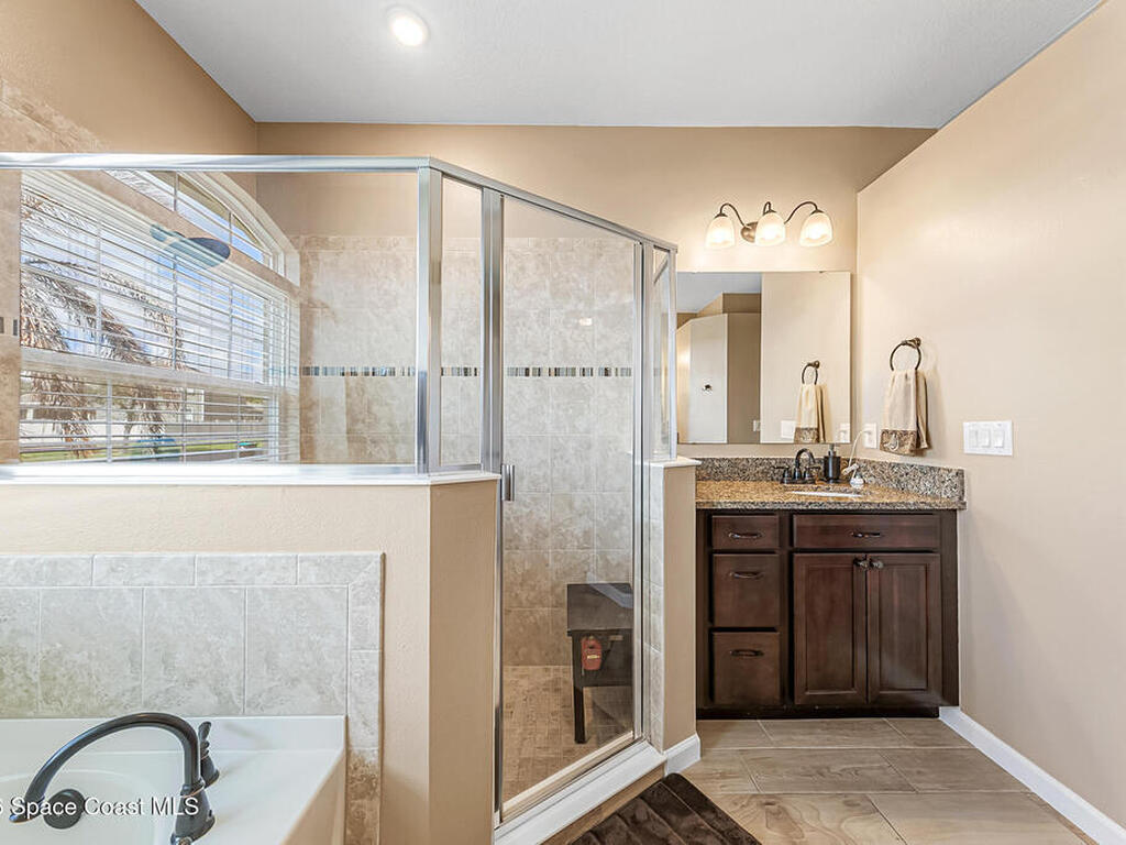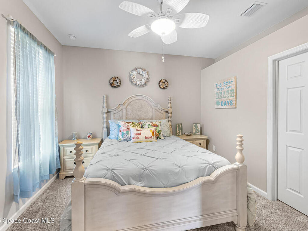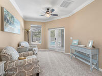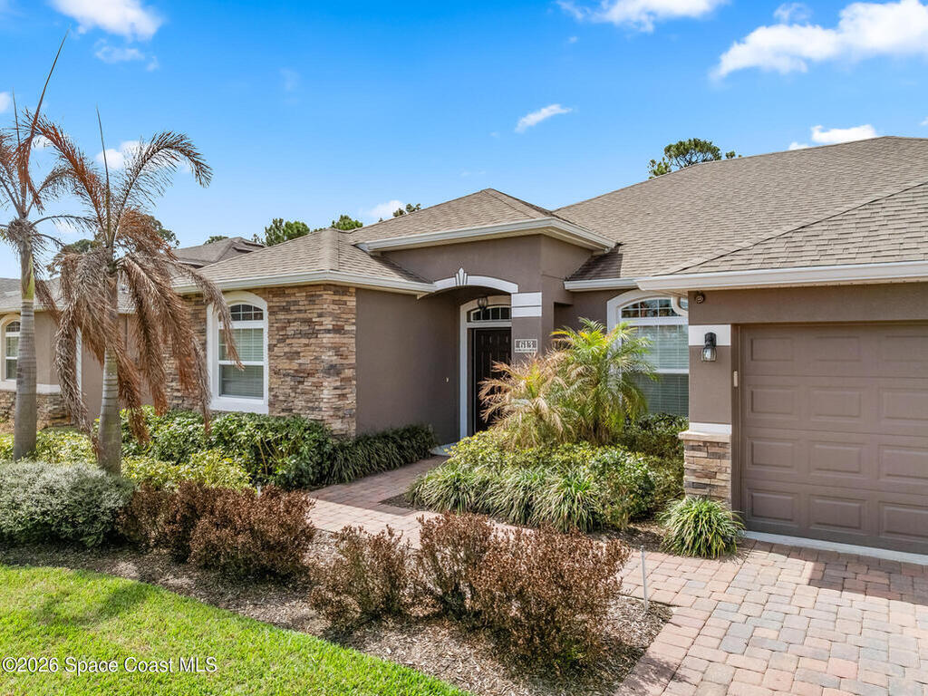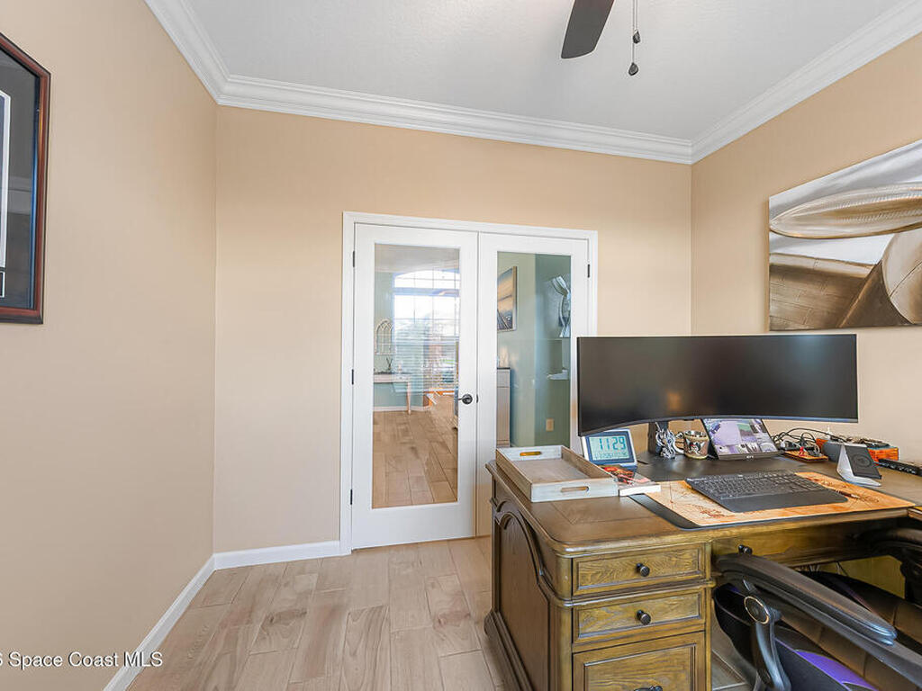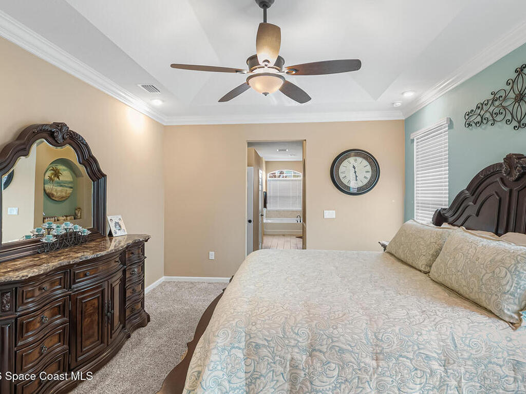 Like-new beautiful 4-bedroom, 3-bath home with a 3-car garage in the desirable Bayside Lakes Stonebriar community backing to a peaceful preserve. This spacious floor plan includes a sitting room and dedicated office, offering flexibility for work or relaxation. The kitchen opens to the main living area and all kitchen appliances remain. Interior features include crown moulding in the living areas, office, and primary bedroom, cordless blinds, ceiling fans, new carpet, fresh interior paint, and a smart thermostat. Enjoy outdoor living with a screened pool and spa with heat pump and a freshly painted pool patio. The property also features a paver driveway, vinyl fencing, fresh exterior paint, and new exterior door hardware. Additional upgrades include an 8-camera digital video system, electronic deadbolts, city water and sewer, and a dedicated sprinkler well and pump. Energy-efficient 12kW solar system with two Tesla batteries provides added efficiency and backup power.
