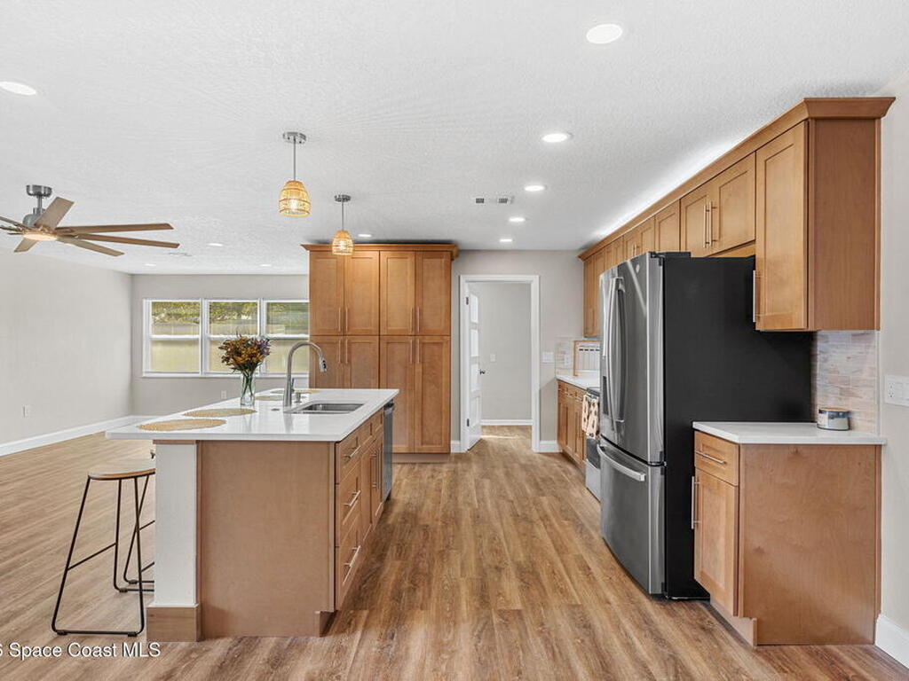 Beautiful remodeled 5 bedroom, 3 bathroom featuring a spacious open floor plan with modern upgrades throughout. The updated kitchen offers new cabinets, stainless steel appliances and large island overlooking the main living area. Perfect for entertaining. Enjoy updated flooring, fresh paint, and stylish finishes throughout. Updated plumbing and electrical. Oversized garage.