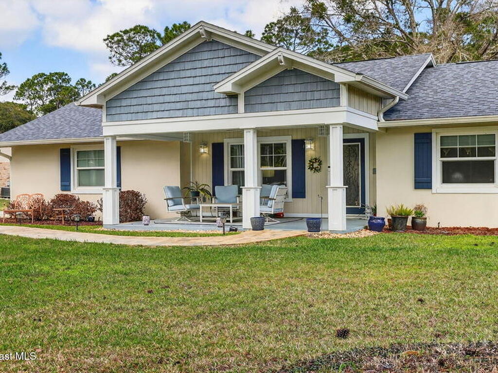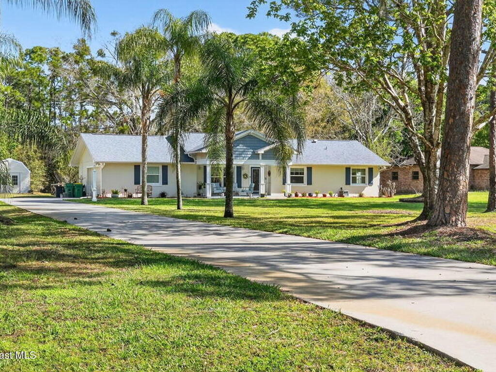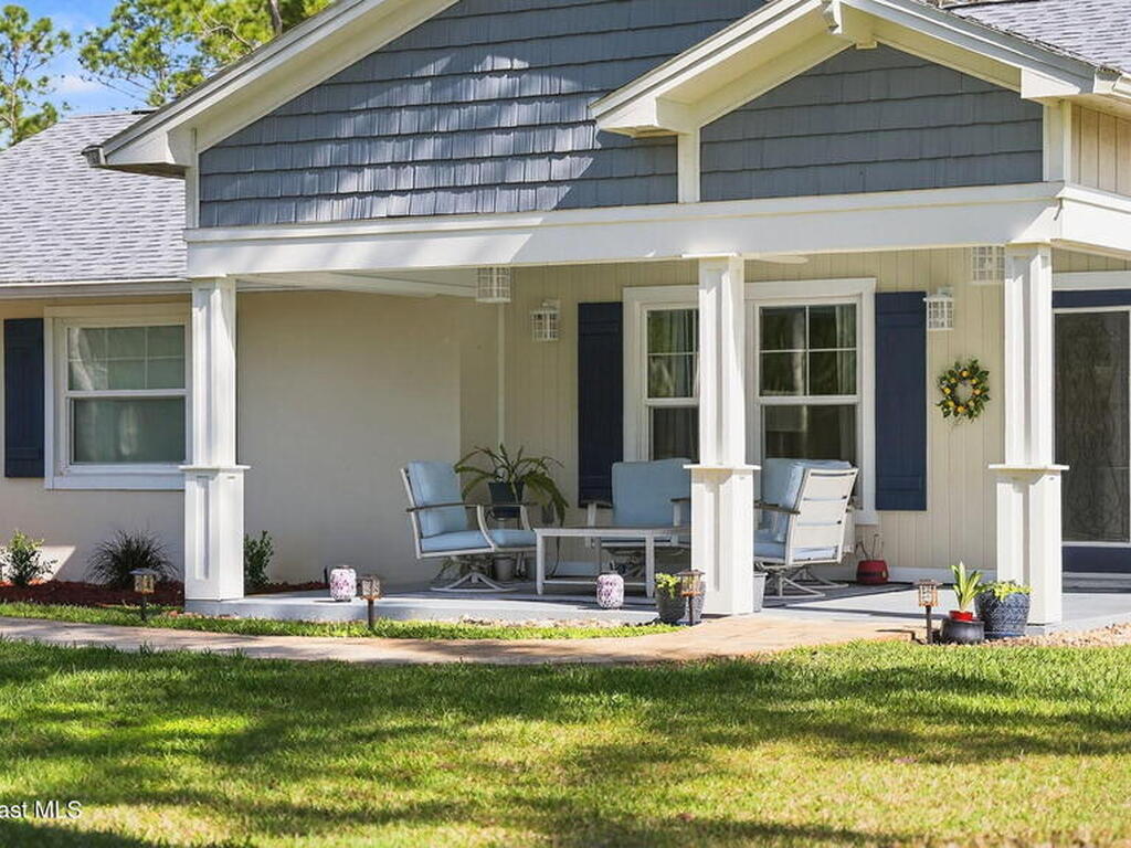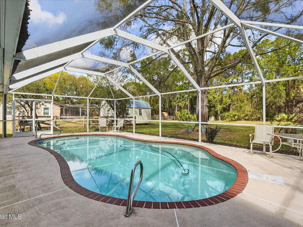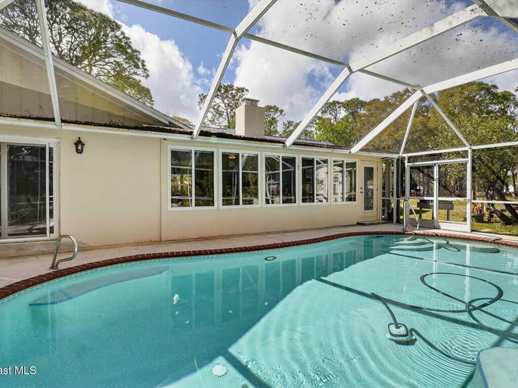 Beautiful Pool Home Situated on 1.17 Shaded Acres in Windover Farms! Open Floor Plan Welcomes You Into the Formal Living Area & Spotlights the Stone Encased Wood Burning Fireplace. Amazing Kitchen w/ Custom Cabinets, Built-Ins, Quartz Countertops, Double Oven, Cooktop, SS Appliances Plus Beverage Fridge. Bright & Beaming All-Seasons Room w/ Floor to Ceiling Windows & Sparkling Pool & Patio Views! Master Suite has Double Sinks, Walk-In Closet & Sliders to the Patio. Two More Spacious Bedrooms & Full Bath! Additional Storage in the Enclosed Laundry Room Plus a Mudroom Entrance. NEW!! Water Heater 2025, HVAC 2024, Roof 2021, Impact Windows & Garage Door in 2023, Newer Overhead Plumbing in 2021! The Property Has a 12x20 Insulated Workshop w/ Electric. The New Covered Front Porch Addition Provides More Enjoyment of the Property! Bring the RV's- 50 amp Hook-Up w/ RV Safe 6in. Poured Concrete Drive. This Home May Have Been Built in 1980's, but Everything Has Been Updated & Maintained!!