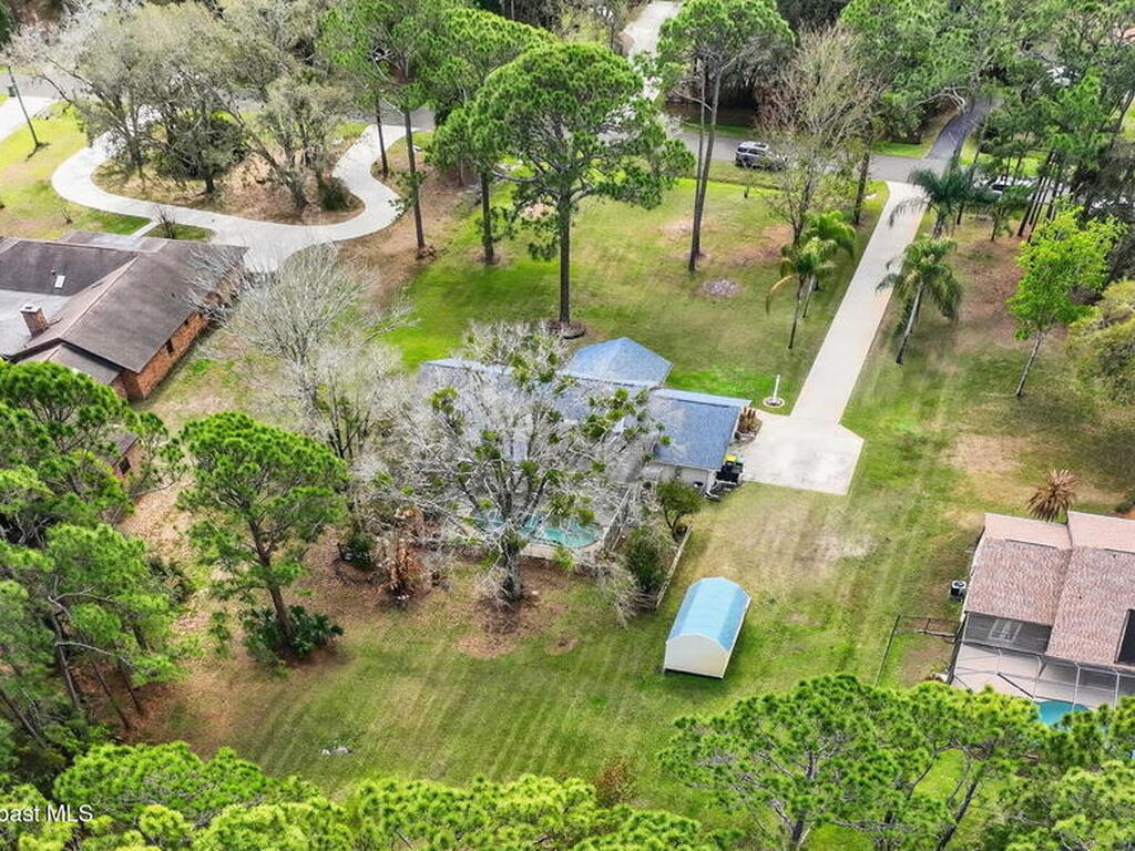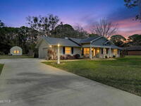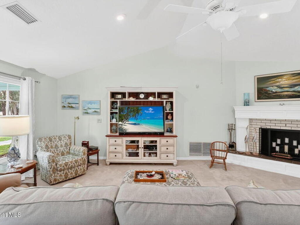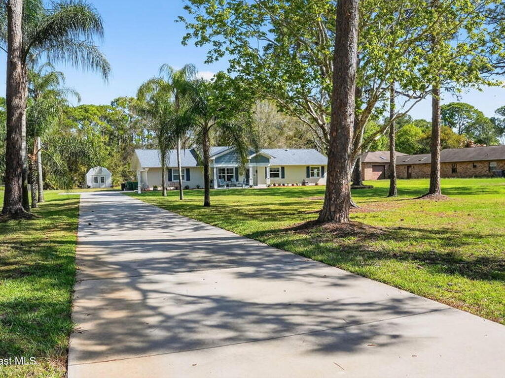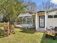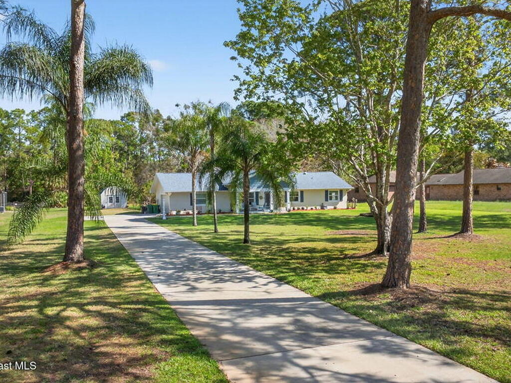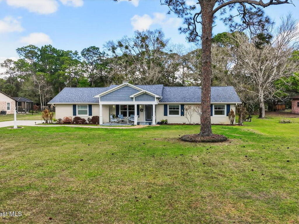Beautiful Pool Home Situated on 1.17 Shaded Acres in Windover Farms! Open Floor Plan Welcomes You Into the Formal Living Area & Spotlights the Stone Encased Wood Burning Fireplace. Amazing Kitchen w/ Custom Cabinets, Built-Ins, Quartz Countertops, Double Oven, Cooktop, SS Appliances Plus Beverage Fridge. Bright & Beaming All-Seasons Room w/ Floor to Ceiling Windows & Sparkling Pool & Patio Views! Master Suite has Double Sinks, Walk-In Closet & Sliders to the Patio. Two More Spacious Bedrooms & Full Bath! Additional Storage in the Enclosed Laundry Room Plus a Mudroom Entrance. NEW!! Water Heater 2025, HVAC 2024, Roof 2021, Impact Windows & Garage Door in 2023, Newer Overhead Plumbing in 2021! The Property Has a 12x20 Insulated Workshop w/ Electric. The New Covered Front Porch Addition Provides More Enjoyment of the Property! Bring the RV's- 50 amp Hook-Up w/ RV Safe 6in. Poured Concrete Drive. This Home May Have Been Built in 1980's, but Everything Has Been Updated & Maintained!!