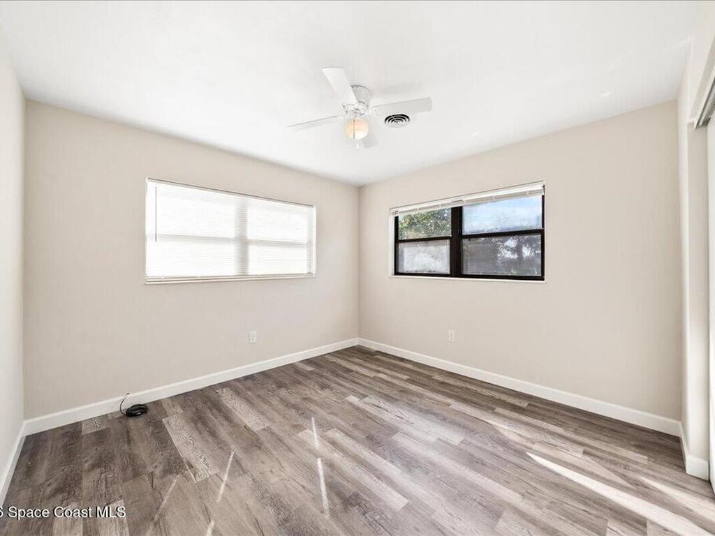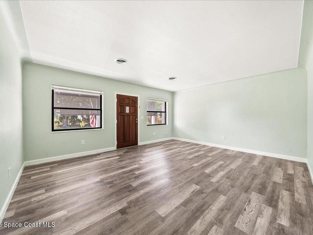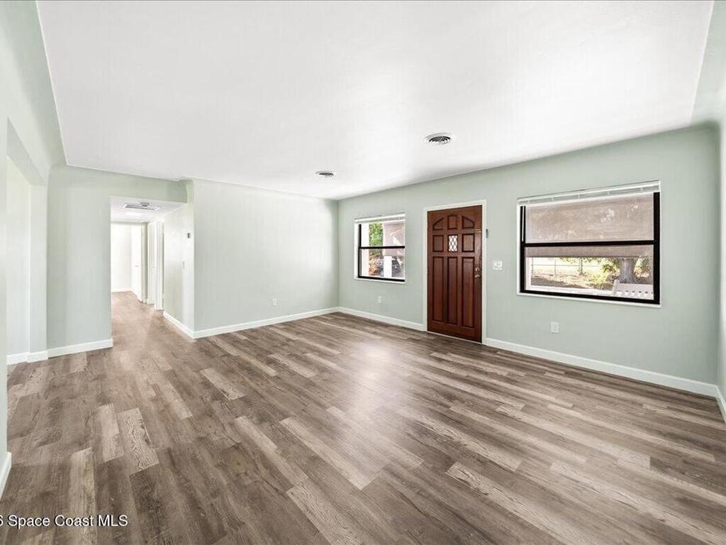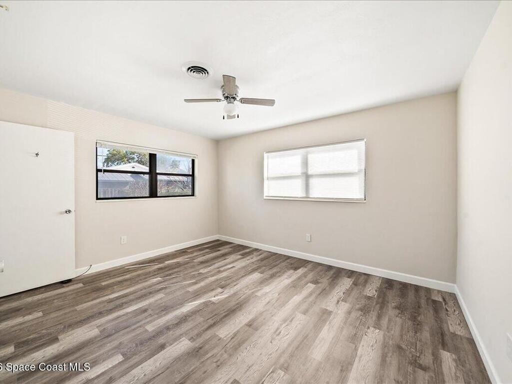This mid-century modern home is a nice blend of quality-built old with new! Including new luxury vinyl plank and/or tile flooring throughout! Freshly painted interior - walls, ceiling, & doors (2026) and exterior (2025). New blinds, electrical outlets & switches, ceiling fans, and light fixtures. New toilets and vanities in both baths. This home has been lovingly maintained by one family since 1964. Large, mostly fenced yard on .2 acres -- NO HOA! Washer & Dryer stay. New ROOF 2015, HWH 2019, A/C Condenser 2018, handler 2012; HWH 2019; upgraded electrical panel 2018; new garage door with opener 2019; and whole house replumb supply lines appx. 2013. On city water & sewer. Close to everything --: 12 min. to the beaches; 5 min. to EGAD, airport, Harris, & Embraer; walk to DRS, Melbourne Courthouse, & West Shore Jr./Sr. High which is across the street! Sellers have made this home Move-in Ready for the new owners including a one-year ''Essential'' home warranty by American Home Shield.