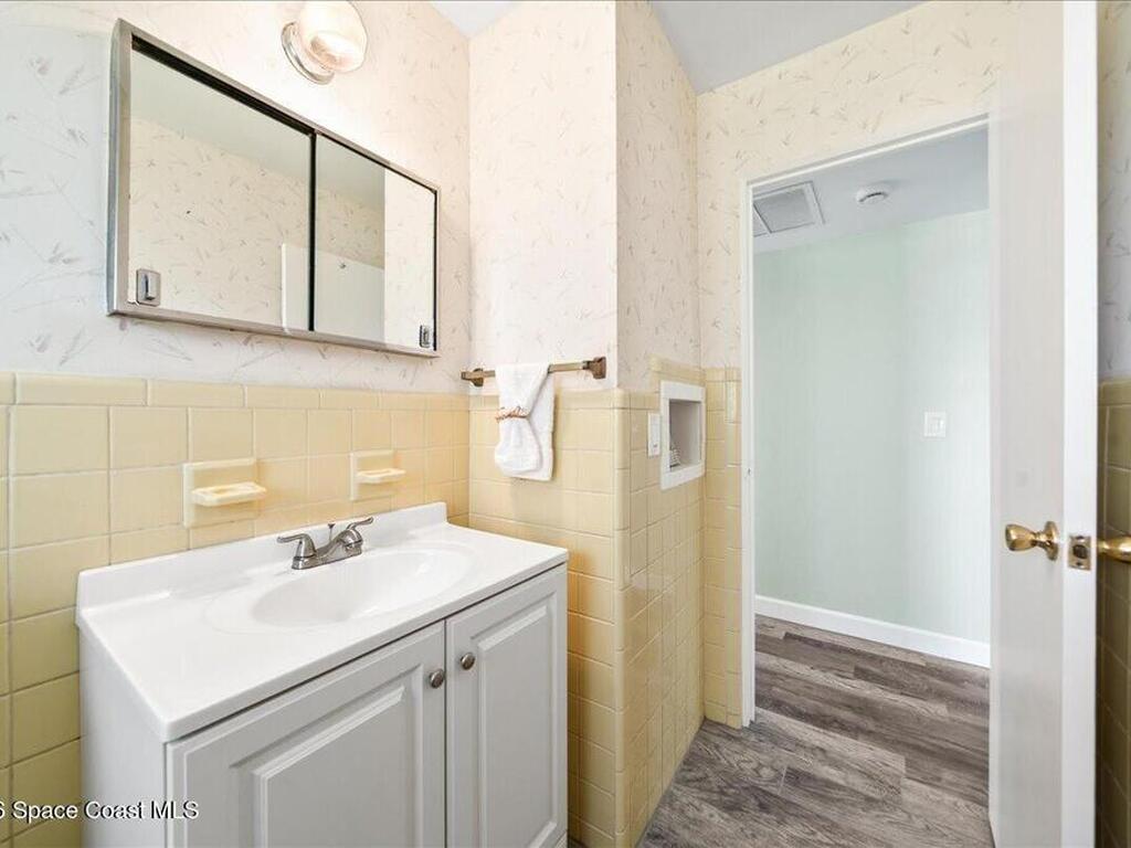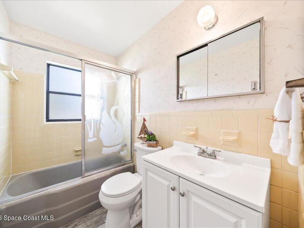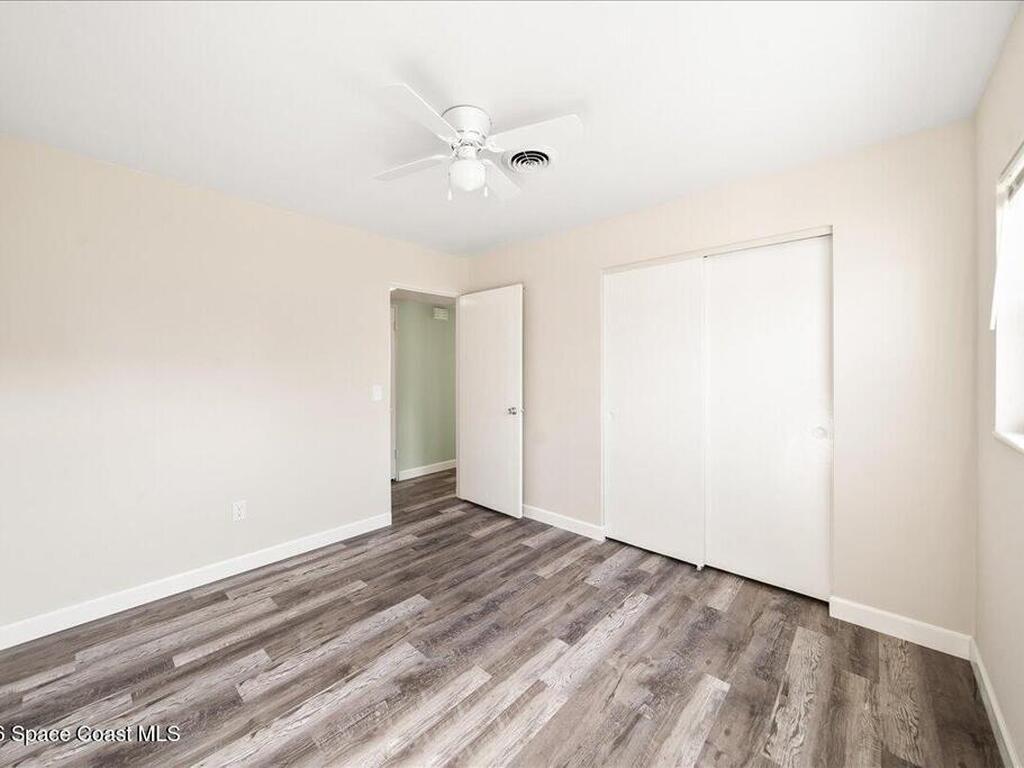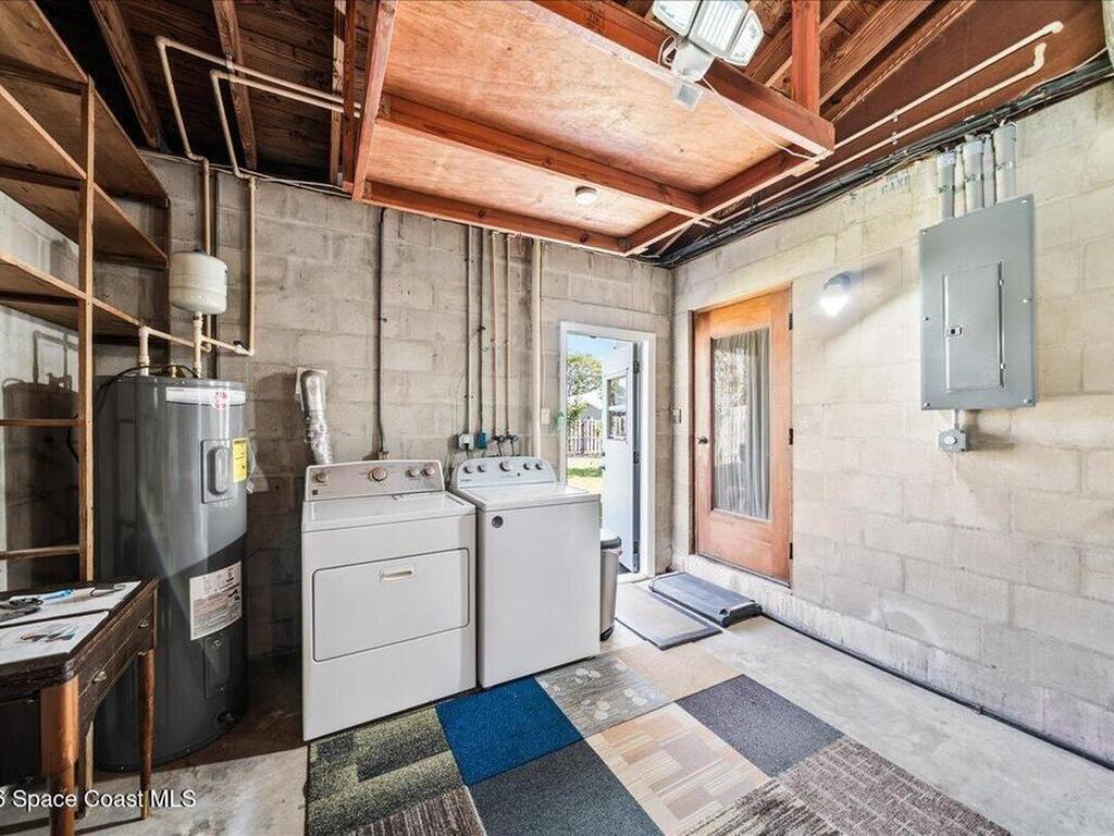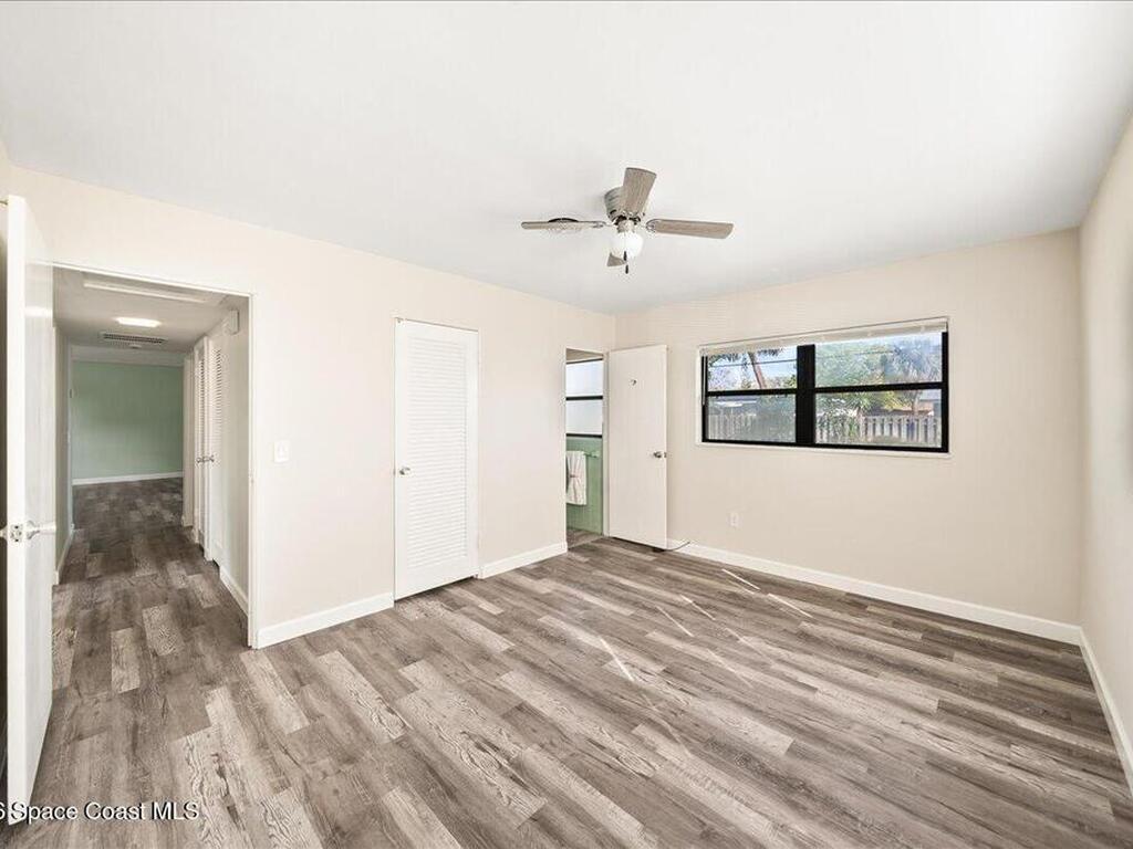 This mid-century modern home is a nice blend of quality-built old with new! Including new luxury vinyl plank and/or tile flooring throughout! Freshly painted interior - walls, ceiling, & doors (2026) and exterior (2025). New blinds, electrical outlets & switches, ceiling fans, and light fixtures. New toilets and vanities in both baths. This home has been lovingly maintained by one family since 1964. Large, mostly fenced yard on .2 acres -- NO HOA! Washer & Dryer stay. New ROOF 2015, HWH 2019, A/C Condenser 2018, handler 2012; HWH 2019; upgraded electrical panel 2018; new garage door with opener 2019; and whole house replumb supply lines appx. 2013. On city water & sewer. Close to everything --: 12 min. to the beaches; 5 min. to EGAD, airport, Harris, & Embraer; walk to DRS, Melbourne Courthouse, & West Shore Jr./Sr. High which is across the street! Sellers have made this home Move-in Ready for the new owners including a one-year ''Essential'' home warranty by American Home Shield.