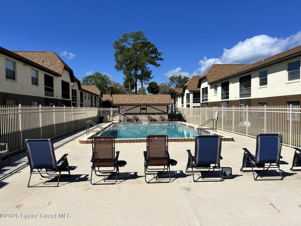 Welcome home! This cute 2 bedroom, 1 bath condo is in the heart of Titusville and is ready for immediate occupancy. New paint and plank flooring, plus kitchen renovations in recent years. Recent AC service and coil cleaning. Situated in the back of the Camelot Estates complex, your screened porch offers serene views of greenspace for peaceful living. Conveniently, the washer/dryer hookups are in the storage area on the back screened porch. The $295 monthly association fee includes pool maintenance, on-Site Management, grounds and building maintenance, insurance, exterior pest control, cable, internet and garbage service. There is also a monthly land lease fee of $94.60. No pets. View rocket launches from your front porch or make your way a few blocks to watch unobstructed from the river. Convenient to shopping, transit, area attractions and beaches. This will be a great home or investment property!