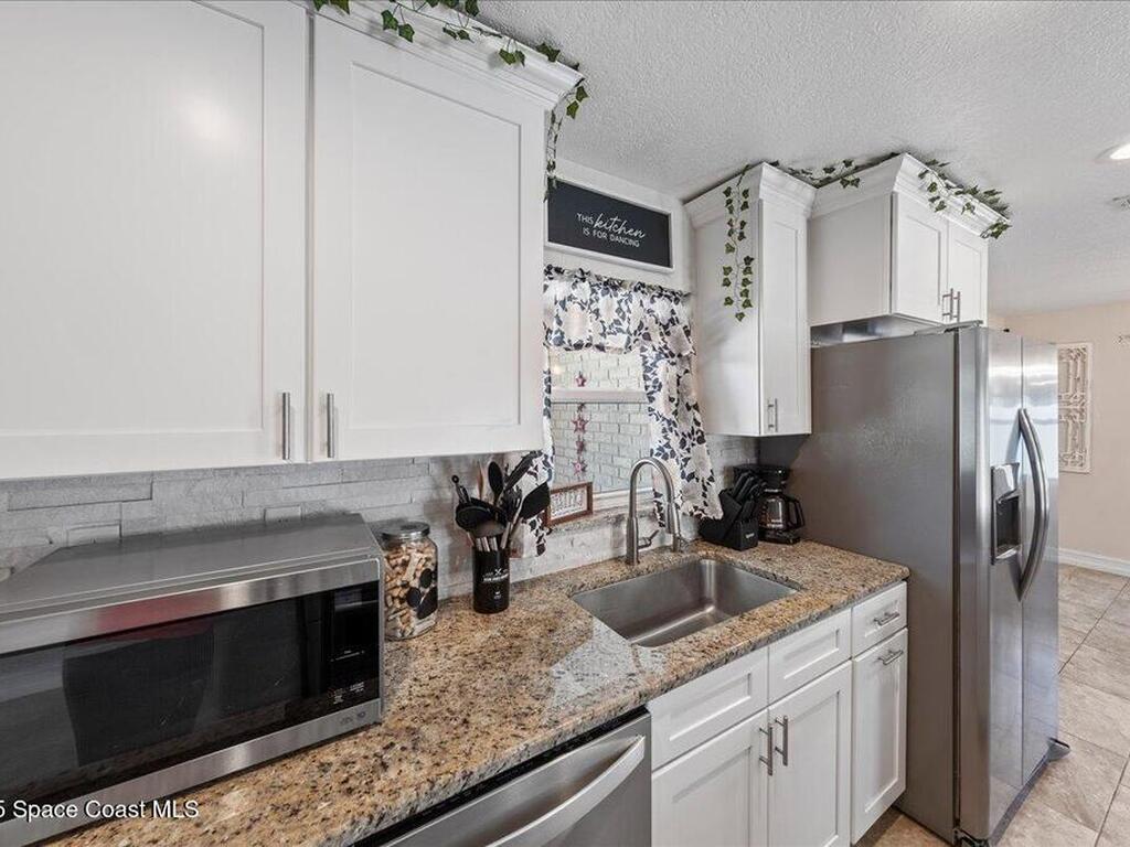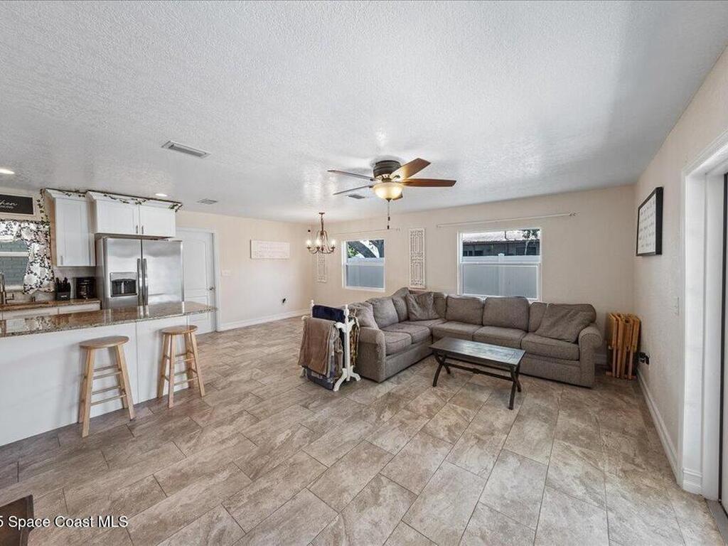 This updated 3-4 bedroom, 2-bath home offers a flexible layout and a fantastic Space Coast location just minutes from the Indian River, Kennedy Space Center, and the Atlantic beaches. The bright living area flows into a modern kitchen featuring granite countertops and updated cabinetry, perfect for everyday living and entertaining. A versatile bonus room can serve as a fourth bedroom, home office, or den. Recent upgrades include a new roof (2020), impact windows, and an energy-efficient tankless water heater. The nicely maintained yard provides a relaxing outdoor space, and the powered backyard shed offers excellent storage or workshop potential. Convenient to beaches, boating, parks, shopping, and dining. Great opportunity to enjoy Florida living in a desirable Space Coast location.
