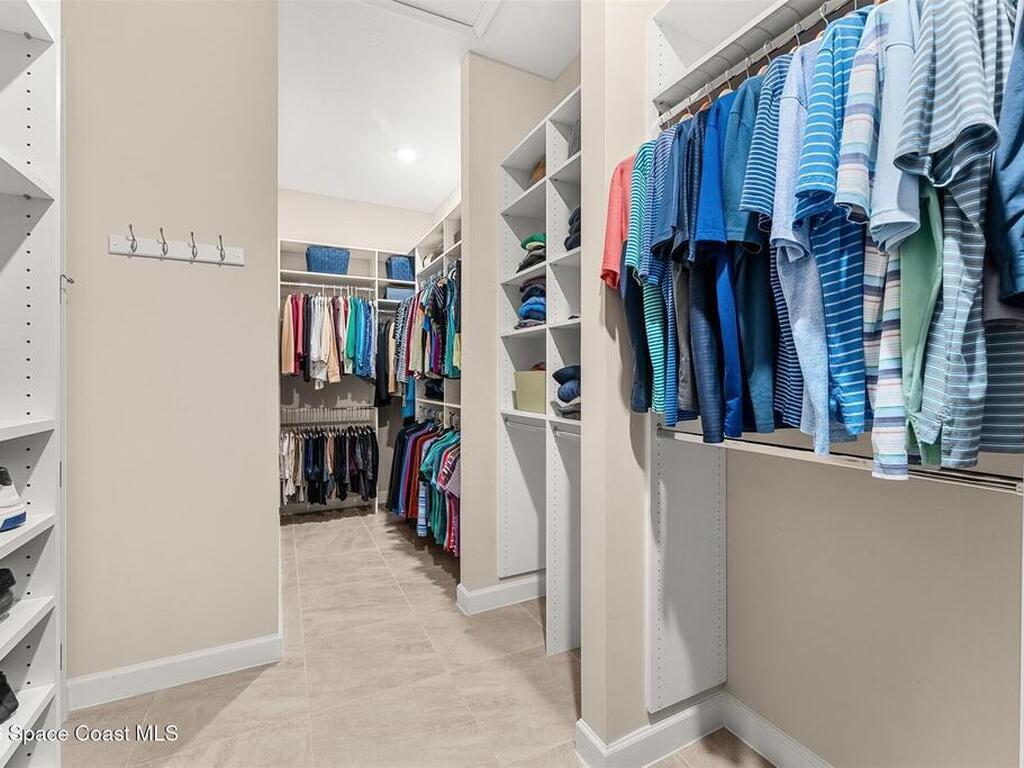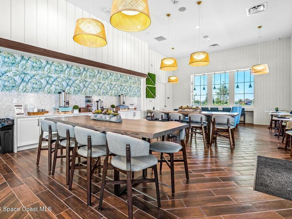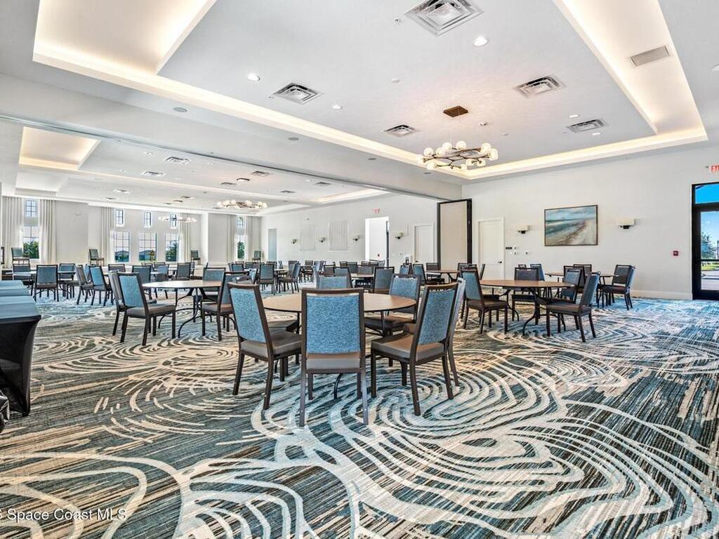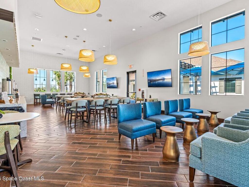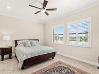 Enjoy waterfront views from this airy 3-bedroom, 4-bath home in the gated 55+ community Bridgewater at Viera. A den/flex room with double doors and closet can easily serve as a fourth bedroom. The kitchen features quartz countertops, stainless steel appliances, and an oversized island that opens to the main living area. Triple sliding glass doors fill the home with natural light and lead to a screened lanai overlooking the water--perfect for enjoying both sunrise and sunset. Interior highlights include ceramic tile flooring, plantation shutters, crown molding, recessed LED lighting, upgraded fixtures, and a laundry room with sink and built-in cabinets. The primary suite offers a custom walk-in closet, zero-entry shower, and dual vanities. Guest bedrooms include custom closets and en-suite baths, one with a walk-in Jacuzzi tub. Resort-style amenities include heated pool, fitness center, tennis, pickleball, bocce, billiards, movie theater. HOA includes lawn care, garbage, gated security.