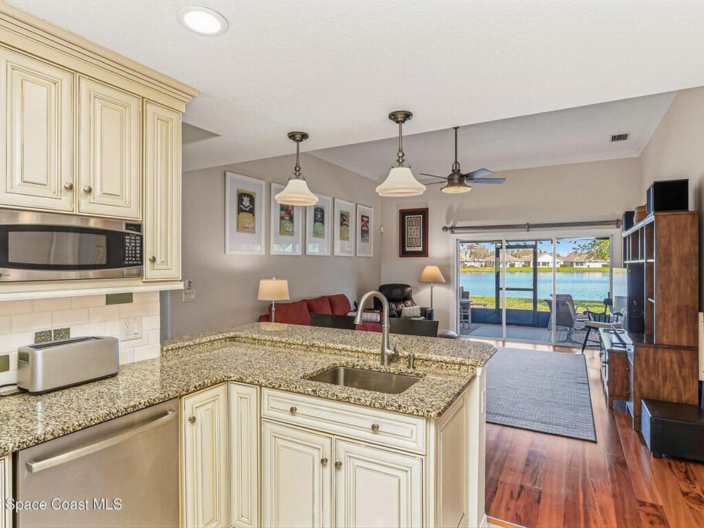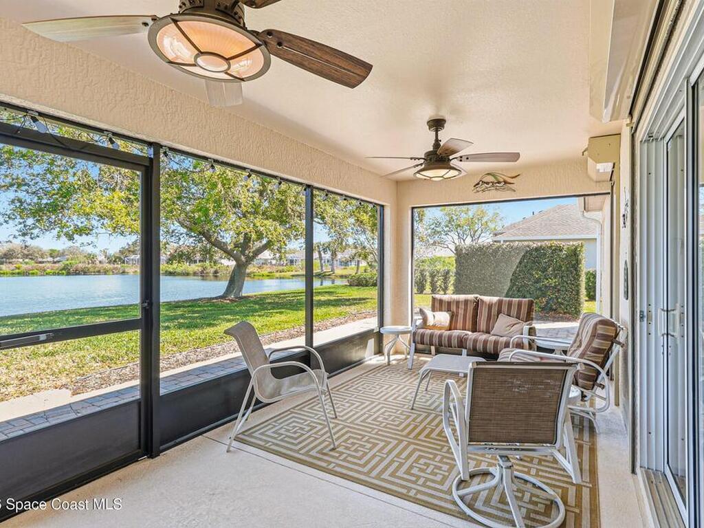Prime waterfront living in private, gated 55+ community of Grand Isle. This beautifully updated 4 BD, 2 BA home w/ 3 car garage is ideally positioned on the largest lake in the neighborhood, offering serene water views. Recent upgrades include fully remodeled kitchen, laundry room, & guest bath, along w/ High-end impact windows provide peace of mind, while wood & tile flooring flow throughout, & new flooring added in several areas. The inviting living room features a gas fireplace, & the large screened back porch & paver back lanai enhances outdoor living. The north-facing rear porch provides shade most of the day, allowing you to comfortably enjoy the tranquil lake viewsOptional furnishings designed in a mid-century modern style that complements the Florida lifestyle for a move-in-ready opportunity. Grand Isle residents enjoy maintenance-free living w/ lawn care included & exterior painting every 8 yrs. Resort-style amenities include clubhouse, tennis, pickleball, & pool, Must See!!