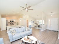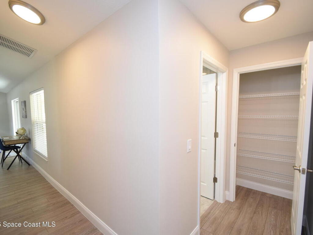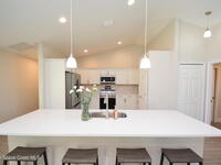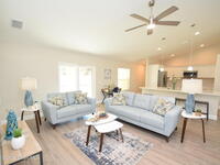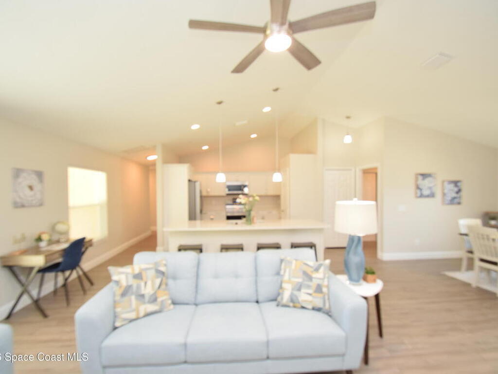 Experience effortless Florida living in this brand-new, move-in ready residence located in the exclusive Sanibel Cove community in Palm Bay--an intimate enclave with only 50 homesites designed for privacy and charm. With $1, 000 down and closing cost incentives available through the preferred lender, this exceptional home offers both luxury and value with an express close opportunity. Thoughtfully designed with an open-concept floor plan, this stunning 3-bedroom, 2-bath home with a 2-car garage seamlessly blends comfort and sophistication. The expansive family and dining areas flow beautifully into the gourmet kitchen, creating an ideal setting for entertaining and everyday living. At the heart of the home, the kitchen features a large quartz island with breakfast bar seating, designer cabinetry with crown molding, soft-close drawers, and a full suite of premium appliances. Elegant luxury vinyl plank flooring spans the main living areas, complemented by tile in the bathrooms and