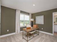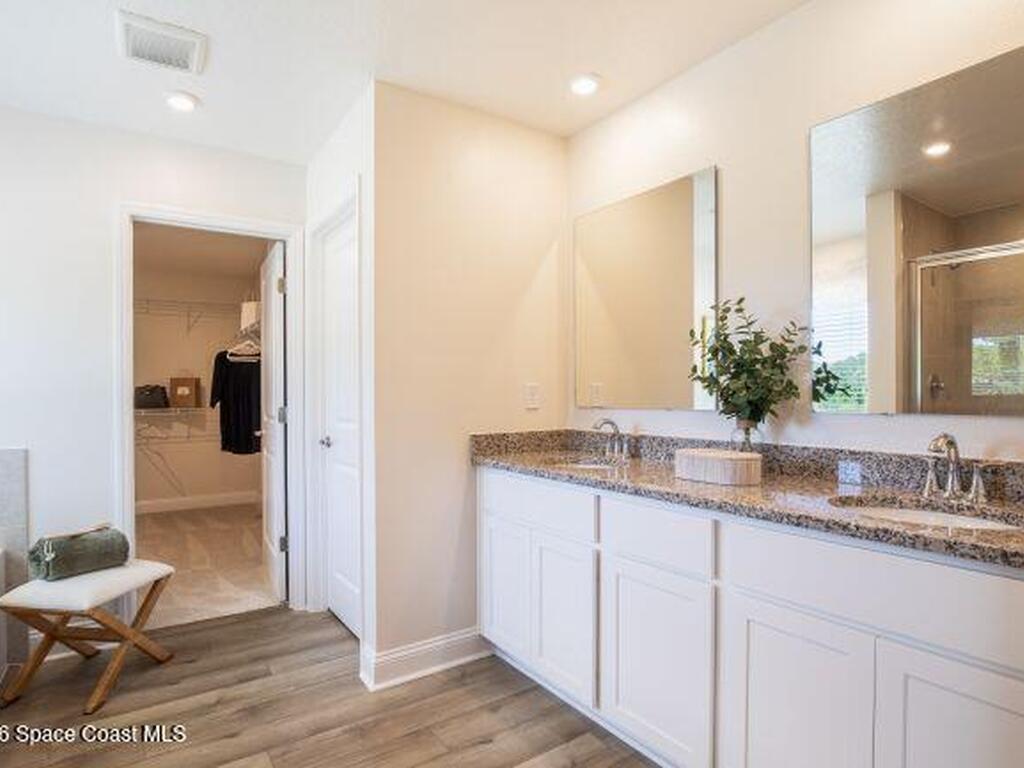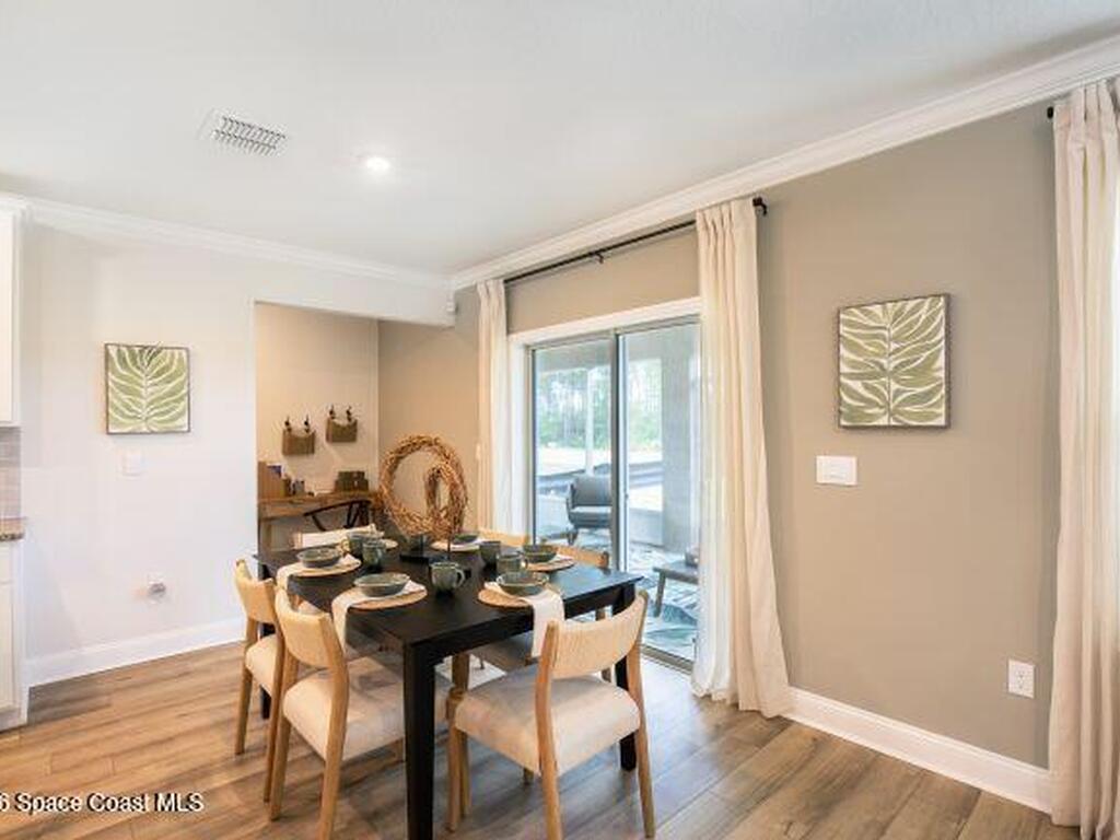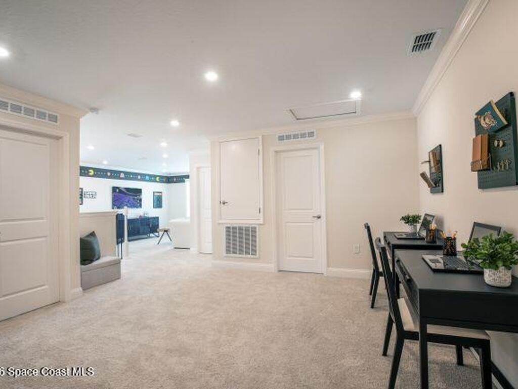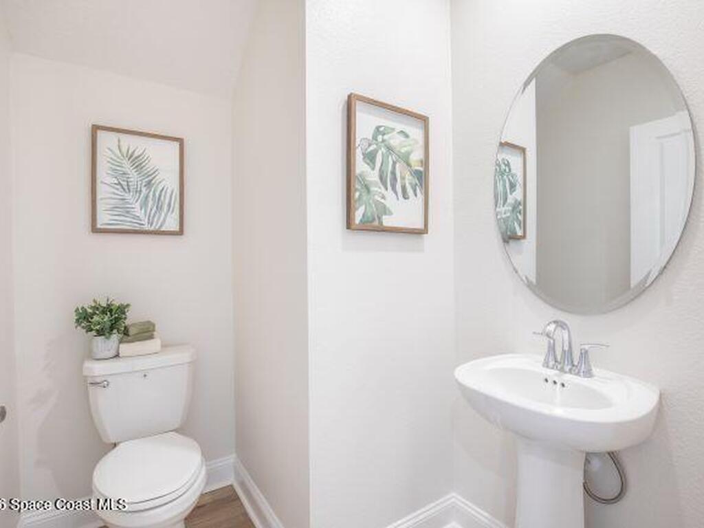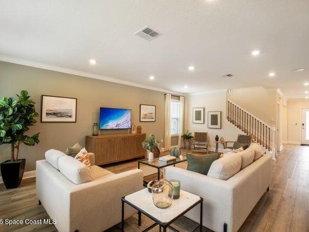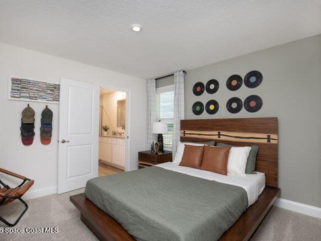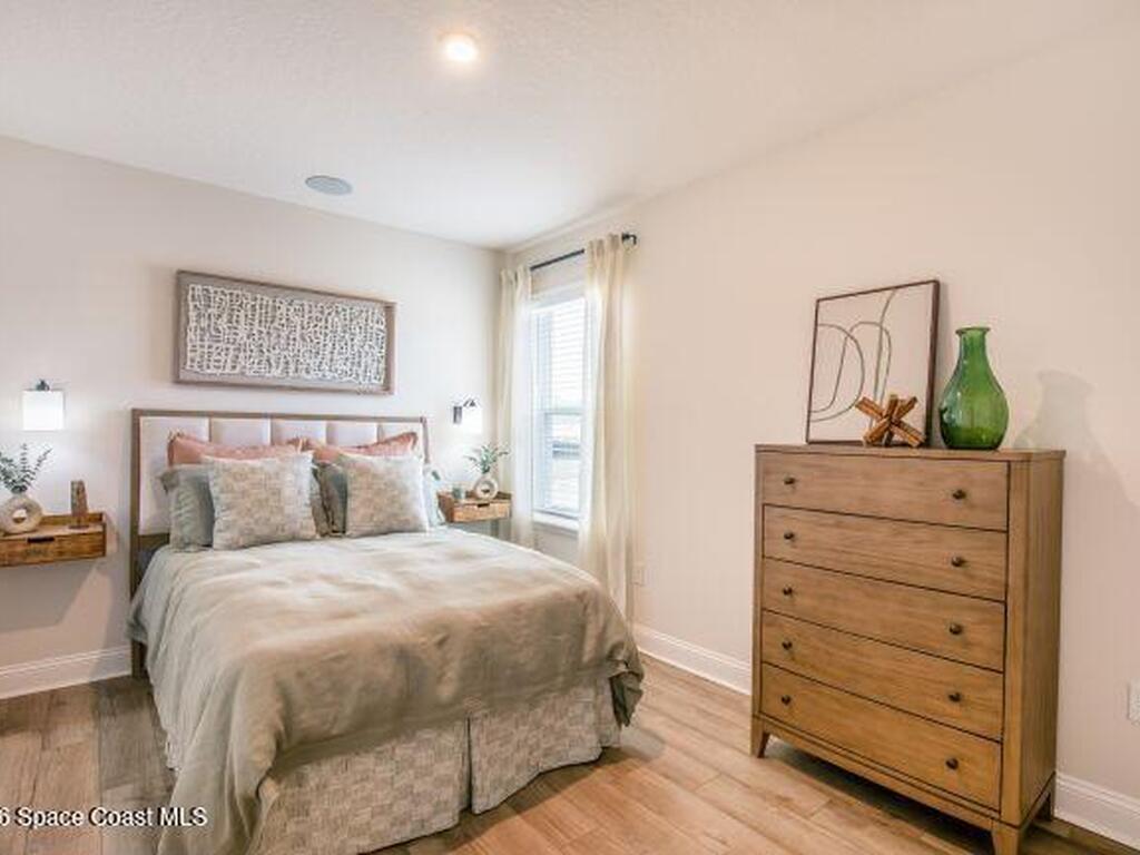 Pre-Construction. To Be Built. Welcome to The Carlisle, where space, style, water views, and modern functionality meet in the heart of Malabar Springs, Palm Bay's premier gated community. From the moment you arrive, the curb appeal draws you in with a stunning stone-accented exterior, elegant window shutters, and a professional paver driveway leading to a spacious 2-car garage with extra storage. Step through the covered front porch and into a thoughtfully designed interior featuring sleek ceramic tile flooring, upgraded door hardware, and brushed nickel accents throughout.The first floor is built for both productivity and relaxation, centered around a versatile den with double French glass doors that serves as the perfect home office. A convenient half bath with a pedestal sink is tucked away nearby, while the heart of the home features a spacious Great Room brightened by additional LED flush mount lighting. This open-concept space flows seamlessly into a chef-inspired kitchen