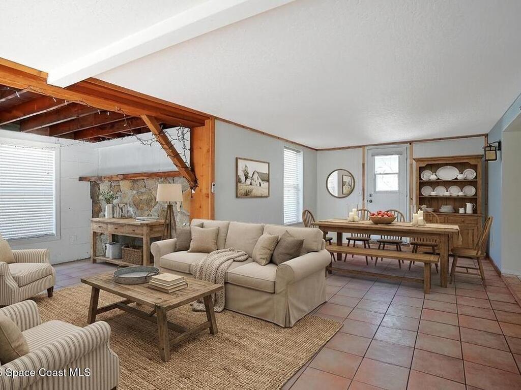 Welcome to this Spacious Indialantic Home by the Sea that features four-bedrooms and offers Terrazzo floors and fresh interior paint, creating a bright, move-in-ready living space. Updated kitchen features S/S appliances and pantry plus breakfast bar perfect for stools. One of the bedrooms is aver 300 sq ft and has private French door entrance and can function as a bedroom, office, or flex space. Enjoy a large enclosed, air-conditioned Florida room with a gas fireplace, plus an additional living room and dining area--perfect for entertaining. Solar HWH. Step outside to stroll to the beach, complete with stairs to the sand and a pavilion for lunch.A long driveway and a two-car garage provide convenient parking, while a welcoming front porch invites quiet mornings and sunset evenings. The front yard's large oak tree provides cooling shade. Side yard shed offers more storage. Hurricane shutters for added protection. Prime location near 192 with plenty of fine restaurants and shops.