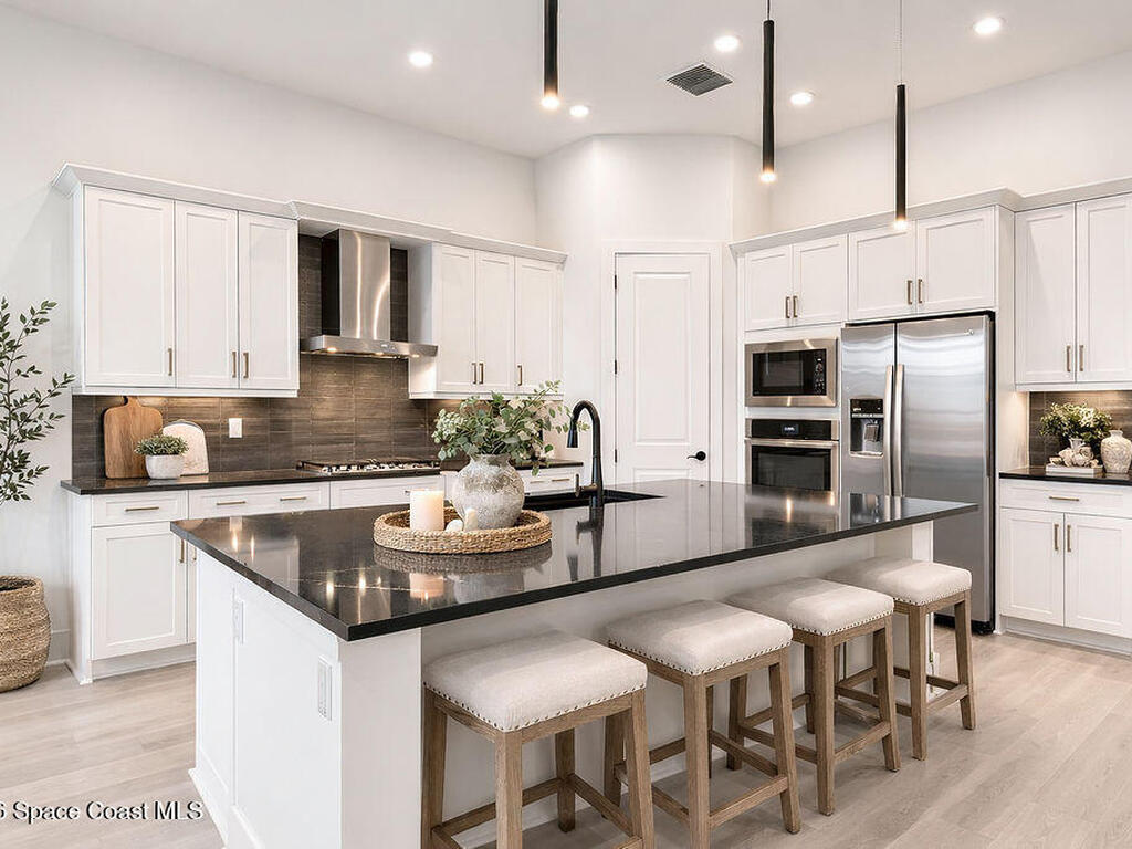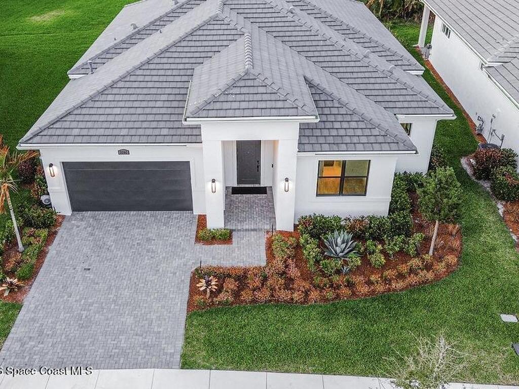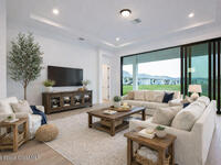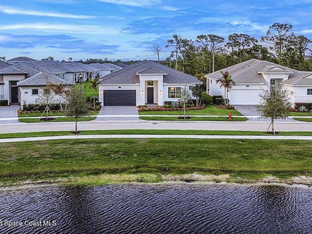 New Construction Without the Wait! This lakefront 3-bedroom, 3-bath home plus den offers over 2, 300 sq ft of thoughtfully designed living space with high ceilings and expansive four-panel 10-ft sliding glass doors that fill the home with natural light and open to a large covered patio. The gourmet kitchen features an oversized island, white shaker cabinetry, quartz countertops, and gas range. The primary suite includes a soaking tub and spacious walk-in shower, while one guest bedroom offers a private en-suite bath. Additional highlights include impact windows, gas water heater, epoxy garage floor, sprinkler system, rain gutters, and no carpet. Located in a gated community with resort-style pool, pickleball courts, and fitness center, just minutes to the Turnpike with easy access to I-95. (Note: Some photos have been virtually staged to showcase design inspiration and spatial possibilities - helping you imagine how this beautiful home can be styled to suit your taste.)