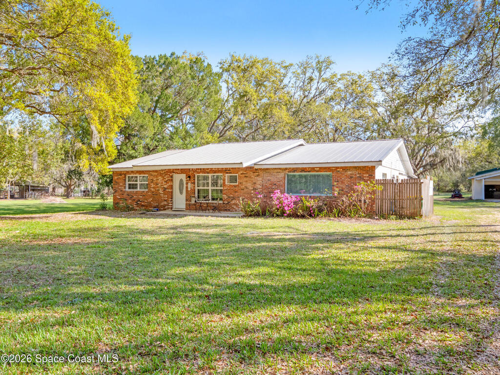 Set on 5.15 acres in Mims, this spacious country property offers room to spread out with 2, 345 sq ft of living space, 4 bedrooms and 2.5 bathrooms, and plenty of outdoor amenities. Built in 1968 with an effective year of 1995, the home features block construction (BCPAO notes frame/block) with updates including a roof replaced in 2020 and permitted electrical work completed in 2024. The property is well-suited for animals with horse stables, chicken coops, and two fenced pasture fields designed to rotate grazing, complete with electric fencing. A large metal outbuilding and 795 sq ft detached garage/workshop provide excellent space for equipment, storage, or hobbies. Enjoy the charm of mature fruit trees, including pear and tangerine, and plenty of space for outdoor fun--including a zip line across the property. A rare opportunity to enjoy privacy, acreage, and country living with room for horses.