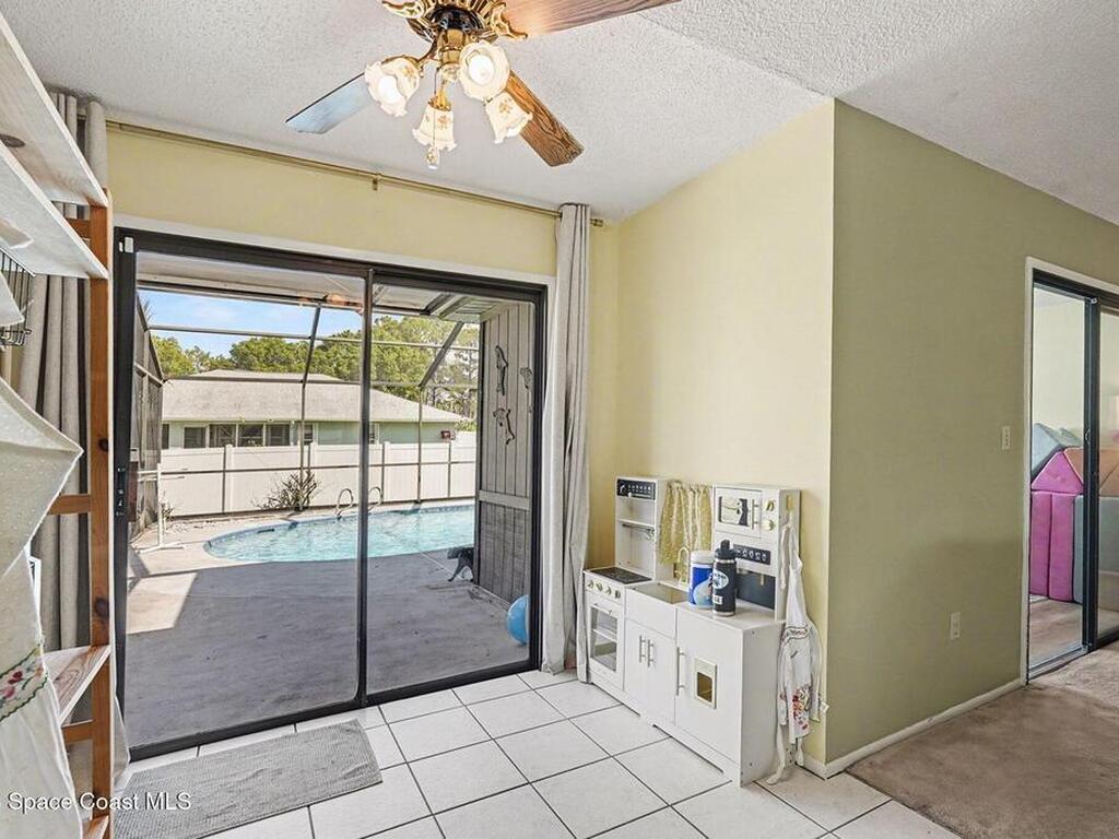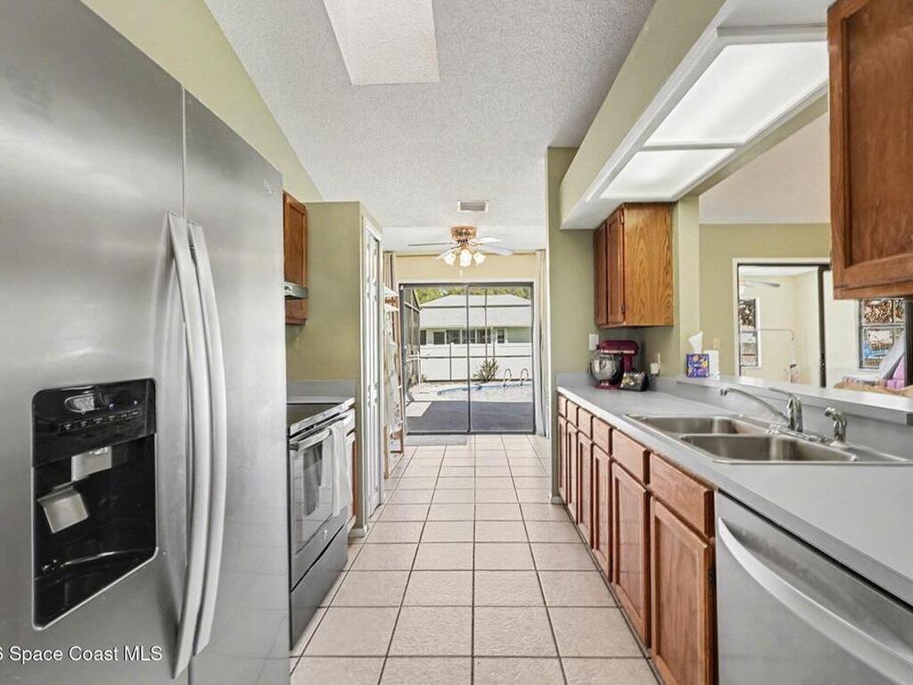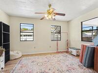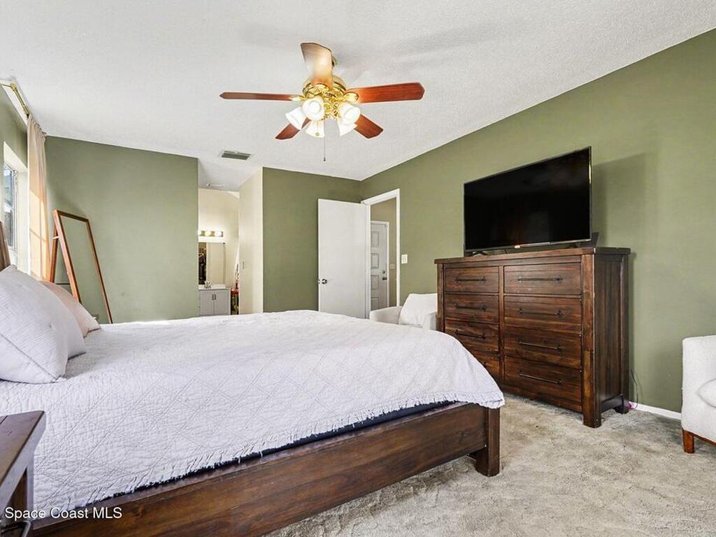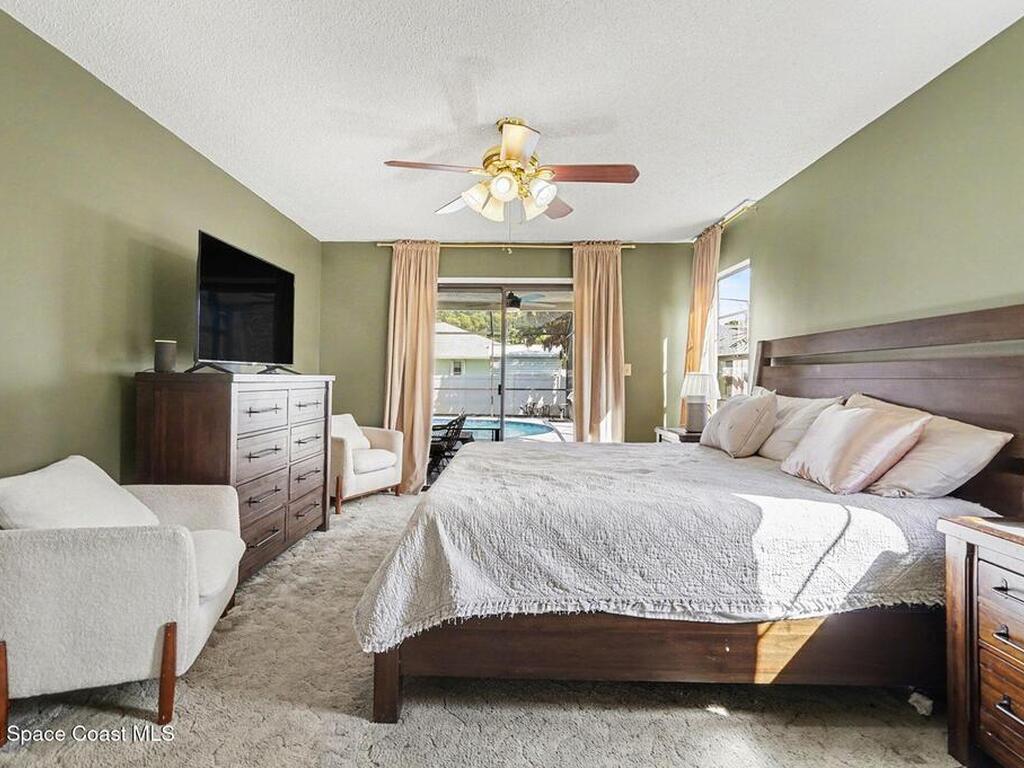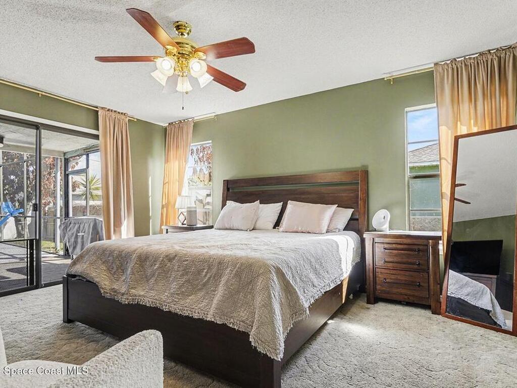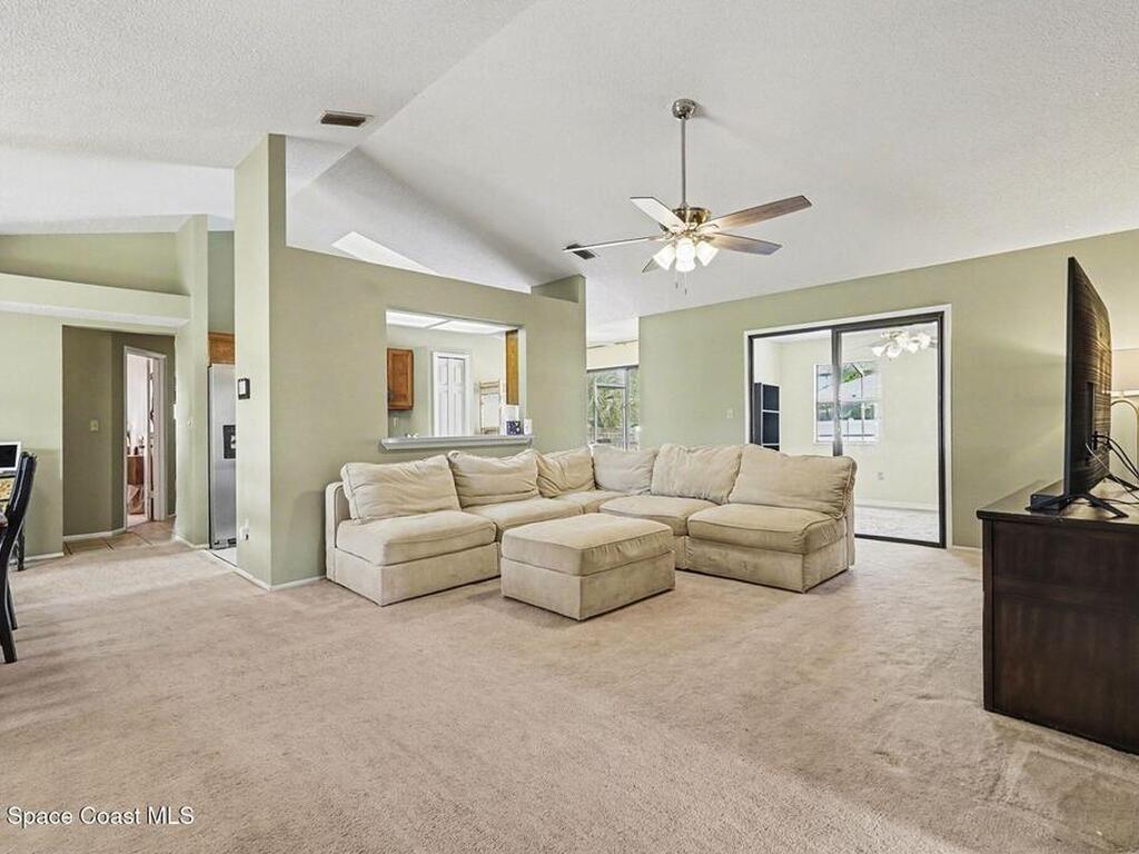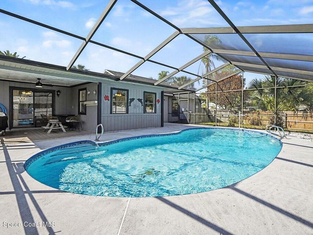 Well-maintained 4-bedroom pool home featuring an open family room with vaulted ceilings and ceiling fans, creating a bright and comfortable living space. This home features a 9.315 kW roof-mounted solar panel system to keep electricity bills low. The home offers a functional split-bedroom floor plan with spacious bedrooms and large closets throughout. The primary suite accommodates a king-size bed and includes two walk-in closets, an updated vanity, and a view of the pool area. The kitchen features, a stainless-steel refrigerator, and a newer Whirlpool dishwasher. Most other appliances are approximately three years old. Enjoy outdoor living with a large screened porch overlooking the fenced backyard and saltwater pool, recently converted with a newer filter and well-maintained pump. Additional updates include newer bathroom vanities and light fixtures, a renovated bonus room, newer gutters and downspouts.