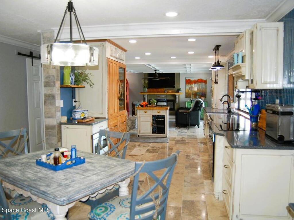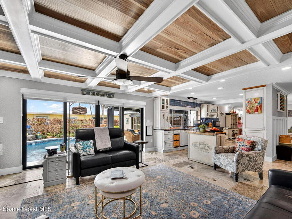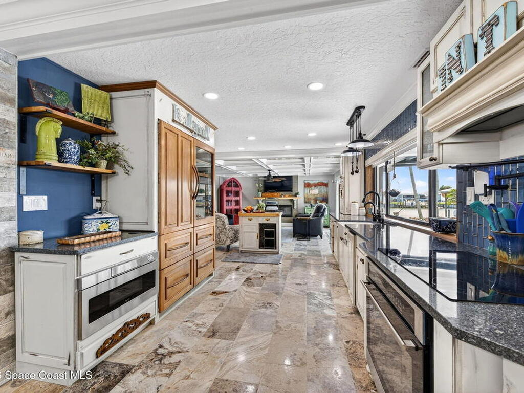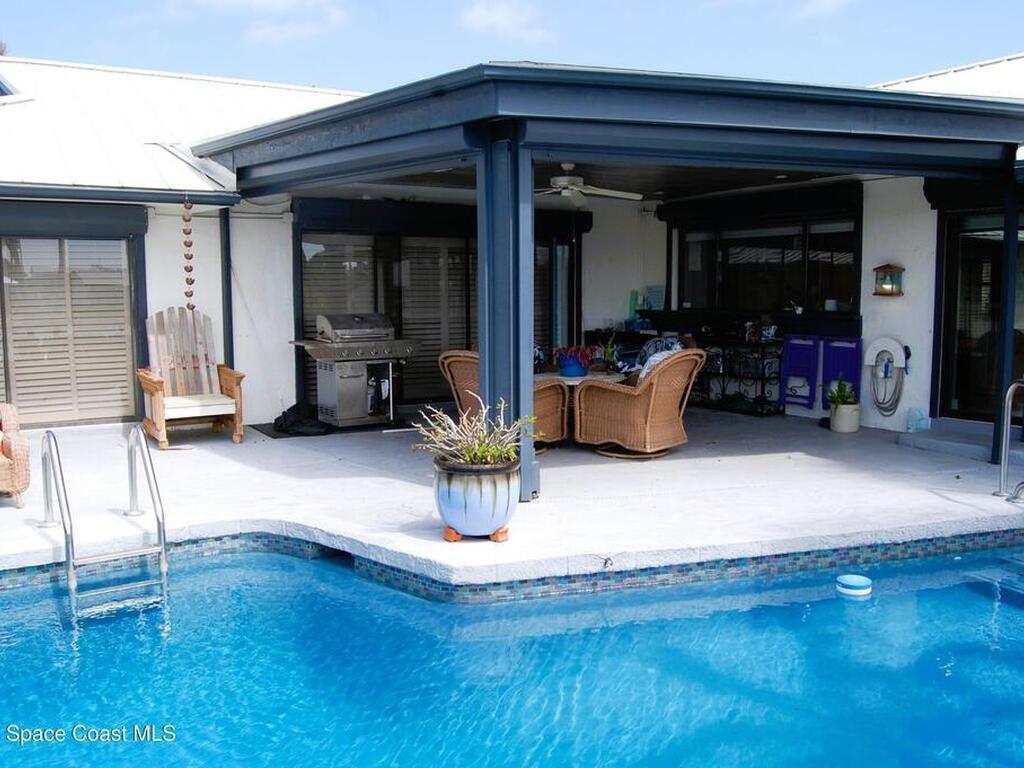 You will rarely have an opportunity to buy a home on this street in Cocoa Beach, FL. A popular area for walkers and bike riders, this property boast a large .43 acre lot, a boat lift, pool and even a place to park your RV, along with a 30amp power plug to keep things cool while you are packing! Property has undergone many upgrades and remodels since 2020. HVAC 2022, two tankless Water Heaters, Pool resurfaced, tiled and new skimmer, Exterior and Interior Paint, Updated Sprinker System, Remodeled kitchen with new Electric Cooktop, Drawer Microwave, Dishwasher, Backsplash glass tile, travertine flooring, countertops and refaced kitchen cabinetry. Remodeled Primary Bath, updated boat lift motor and much more! Must see this gem to feel the pride of ownership! The views of the Banana River are breathtaking. Situated on one of the largest canals in Cocoa Beach, See Dolphin, Manatee and Rocket Launches by just stepping outside.