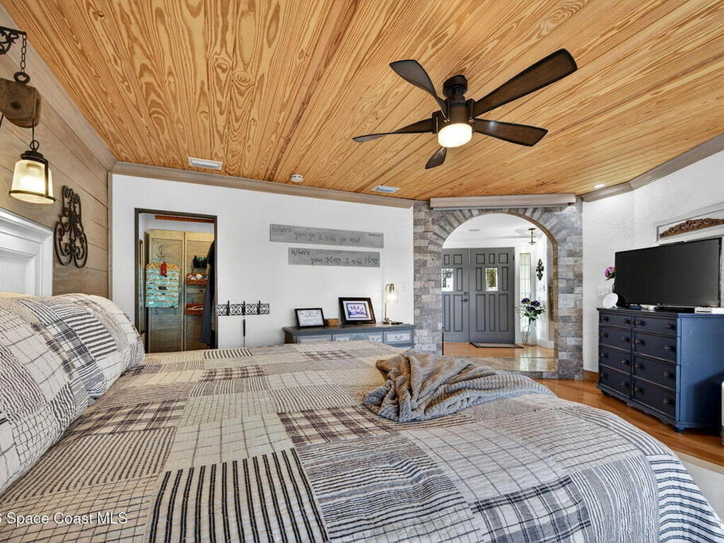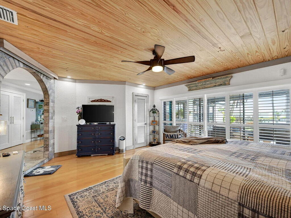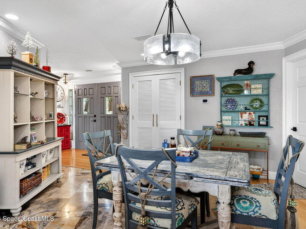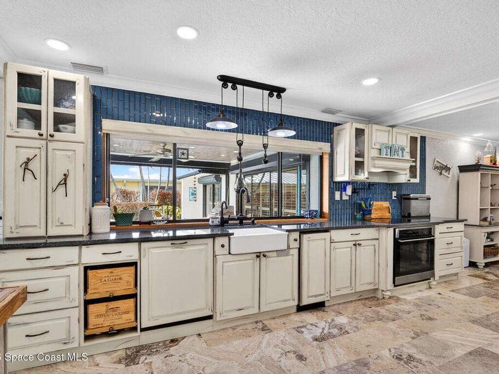 You will rarely have an opportunity to buy a home on this street in Cocoa Beach, FL. A popular area for walkers and bike riders, this property boast a large .43 acre lot, a boat lift, pool and even a place to park your RV, along with a 30amp power plug to keep things cool while you are packing! Property has undergone many upgrades and remodels since 2020. HVAC 2022, two tankless Water Heaters, Pool resurfaced, tiled and new skimmer, Exterior and Interior Paint, Updated Sprinker System, Remodeled kitchen with new Electric Cooktop, Drawer Microwave, Dishwasher, Backsplash glass tile, travertine flooring, countertops and refaced kitchen cabinetry. Remodeled Primary Bath, updated boat lift motor and much more! Must see this gem to feel the pride of ownership! The views of the Banana River are breathtaking. Situated on one of the largest canals in Cocoa Beach, See Dolphin, Manatee and Rocket Launches by just stepping outside.