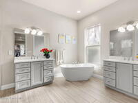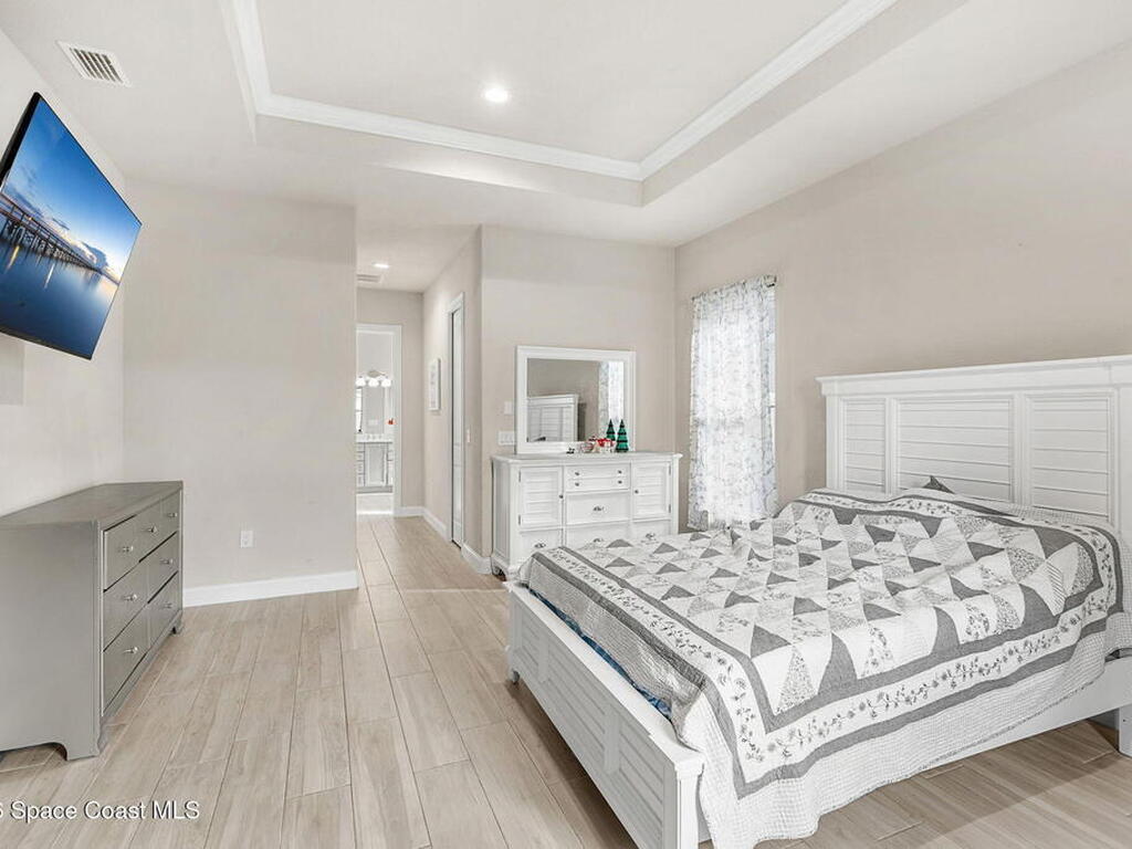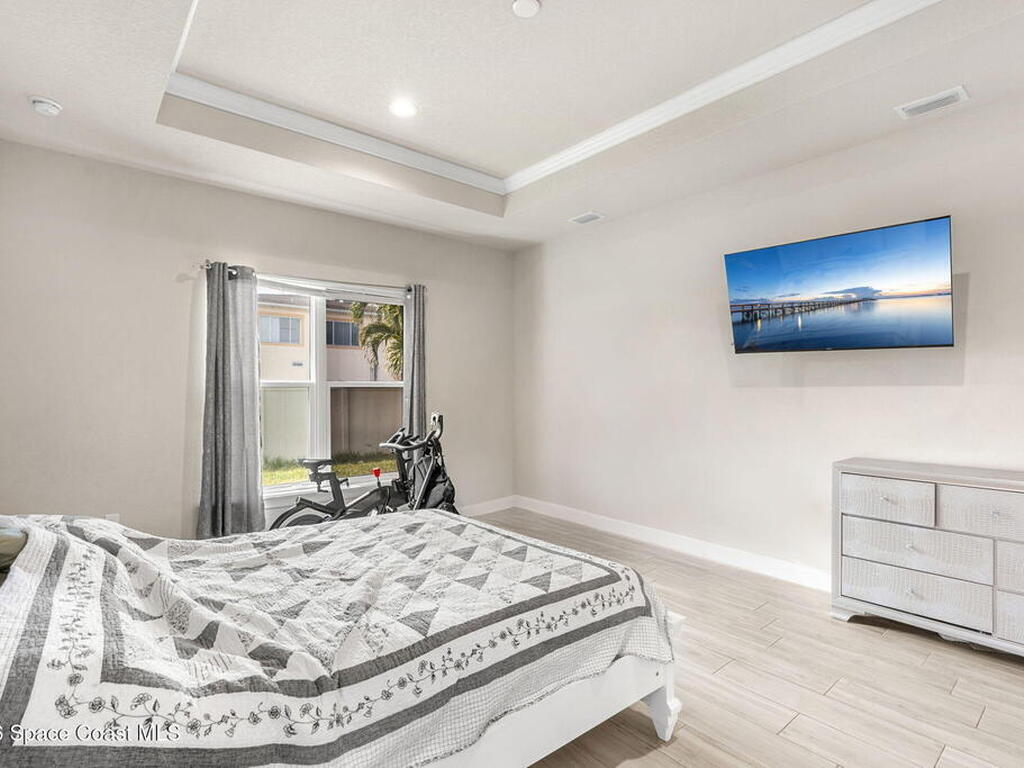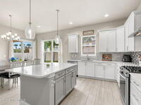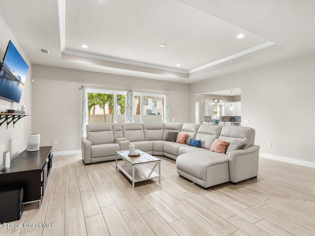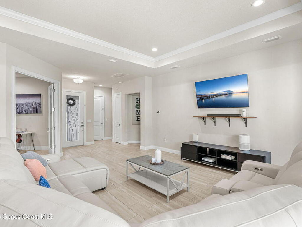 Tucked within a sought-after, builder-exclusive community, this meticulously crafted custom Ventura model immediately sets the tone for something special. From the moment you step inside, the home unfolds with intention--an airy, light-filled design where elegance and comfort blend effortlessly. Soaring 10-foot ceilings create a sense of openness throughout, while tray ceilings in both the grand living room and the primary suite add architectural depth and quiet sophistication. Every room feels thoughtfully finished, framed by 51/4-inch baseboards that subtly highlight the home's craftsmanship and attention to detail. The 4th bedroom is currently utilized as a home office, offering the ideal setup for remote work or study.