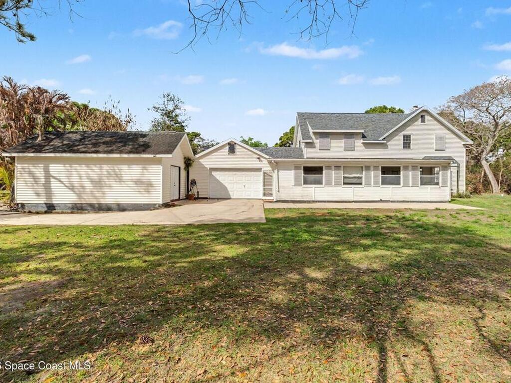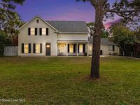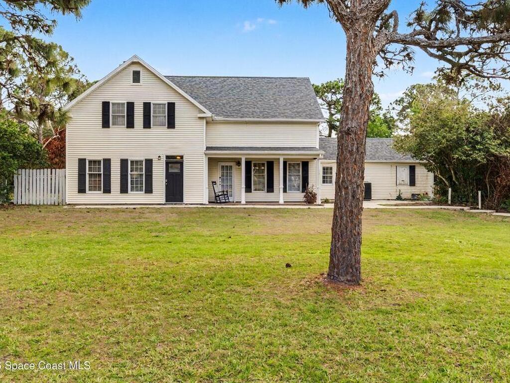 Welcome to your private slice of country living in Grant-Valkaria. Nestled on 1.16+ acres, this spacious 4-bedroom, 3.5-bath two-story home blends peaceful rural charm with everyday comfort. The inviting layout features a formal living room, formal dining room, and family room with a cozy wood-burning fireplace. A newly renovated kitchen includes a breakfast bar, pantry, and breakfast nook for casual dining. First floor newly renovated mother-in-law suite with its own private entrance. Spacious master and two additional bedrooms upstairs provide flexibility for family, or a home office. The property is dotted with mature fruit trees, creating a serene, park-like setting. Enjoy Florida evenings on the enclosed trussed porch. A workshop with electricity and attached two-car garage provide great space for projects or storage. Located in desirable Pomello Ranch, this property allows horses while being minutes from shopping, and major roadways. Space, privacy, and convenience all in one.