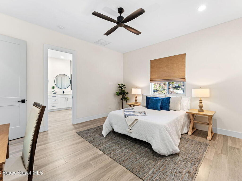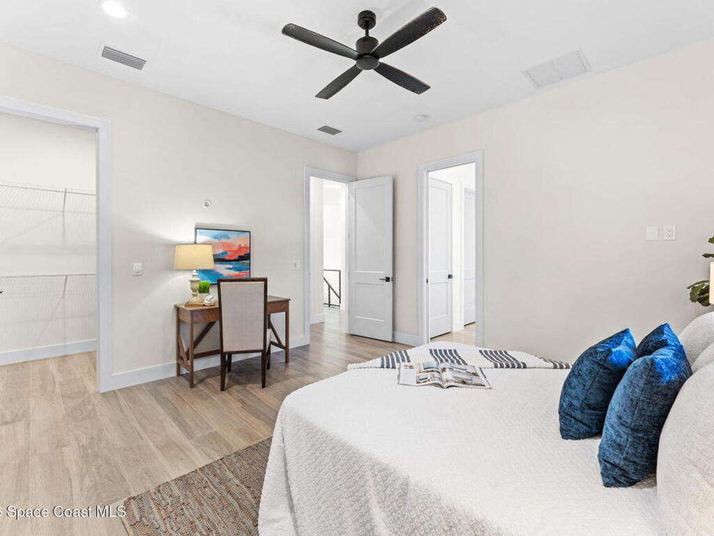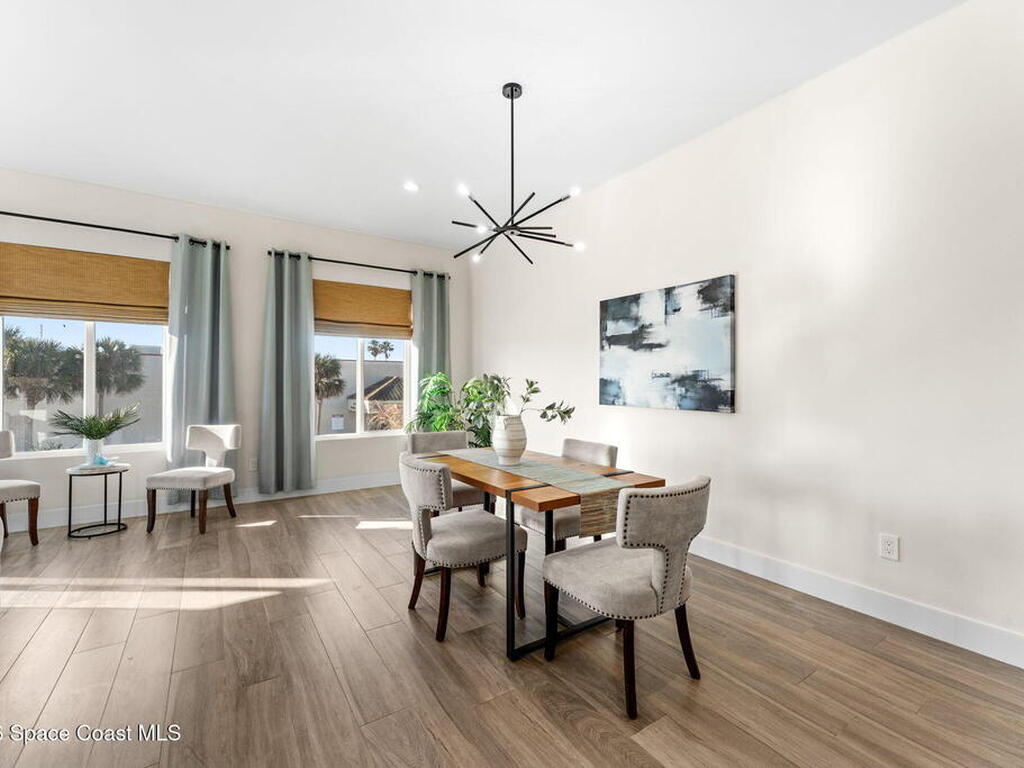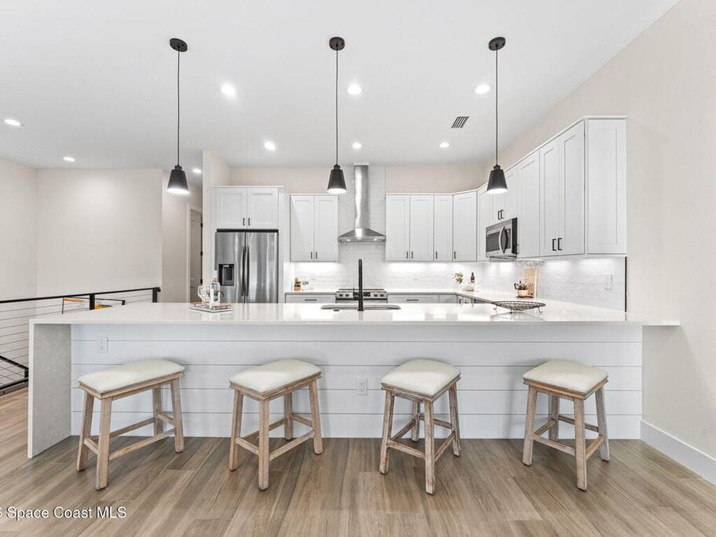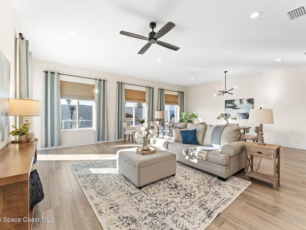 Wake up to ocean breezes and unwind with sunset views from your wraparound balcony in this beachside stunner just moments from the sand. This 3 bedroom, 2.5 bath home delivers an airy open floorplan with split bedrooms and sleek tile flowing throughout. The kitchen is designed to impress with crisp white quartz countertops, a bar refrigerator/wine cooler, and effortless flow for entertaining. Impact windows, a smart thermostat, and an upgraded smart garage bring peace of mind and modern convenience. Step outside to a private courtyard retreat featuring custom pavers and professionally installed artificial turf with bubble sprinklers for easy care and year-round beauty. Inside, custom luxury drapes and shades elevate every space. All just minutes from beach access, great dining, markets, and shopping. A rare blend of style, comfort, and location that truly stands out.