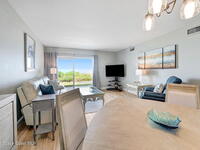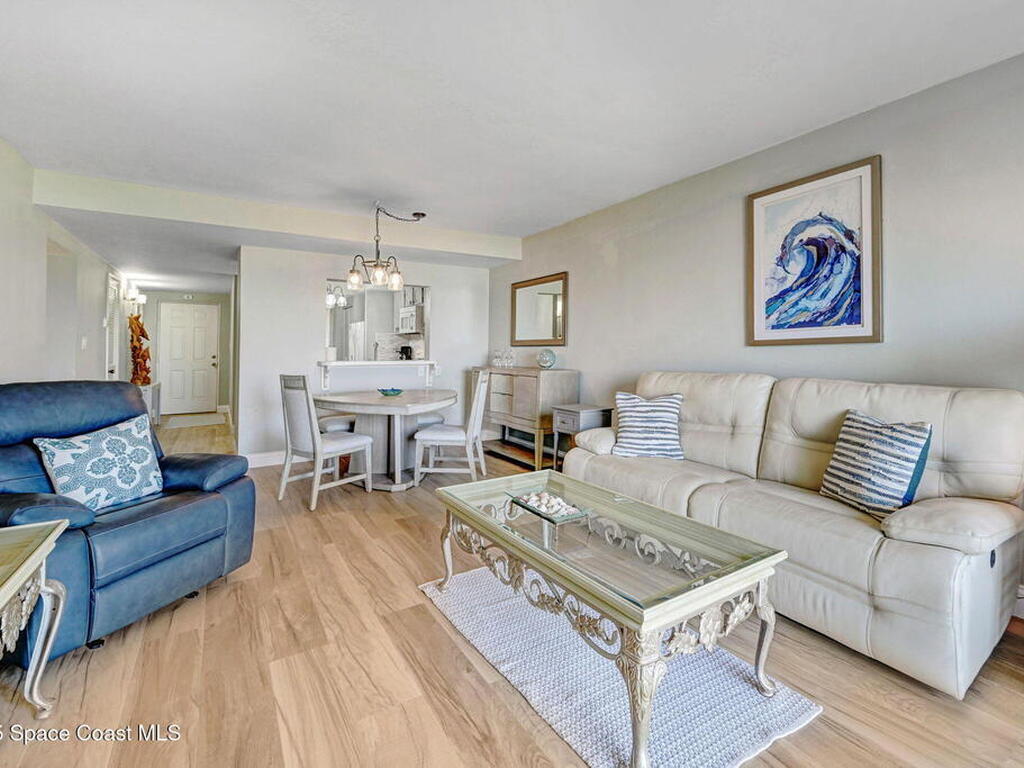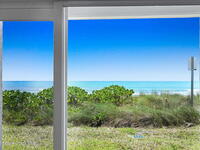 Available immediately. Direct Ocean breezes & beaches at your footsteps. First floor, beautifully updated, fully furnished condo offers all the fun & frolic of living at the beach. Vinyl Plank floors in hallway, living/Dining room, & Master Bdrm. Well appointed kitchen, comfortable living space, modern bathrooms, generous master suite & oceanfront patio. All the creature comforts for easy beach living. Front loading washer dryer. Community heated pool, clubhouse, lovely landscaping, private gated beach access to the sandy beaches. Bring your fury friends with you. 2 DOGS OK, NO WEIGHT limit, No Dangerous Breeds. Convenient to Pineda Causeway & close to PSFB.. The $3300 rent rate is for 12 month leases