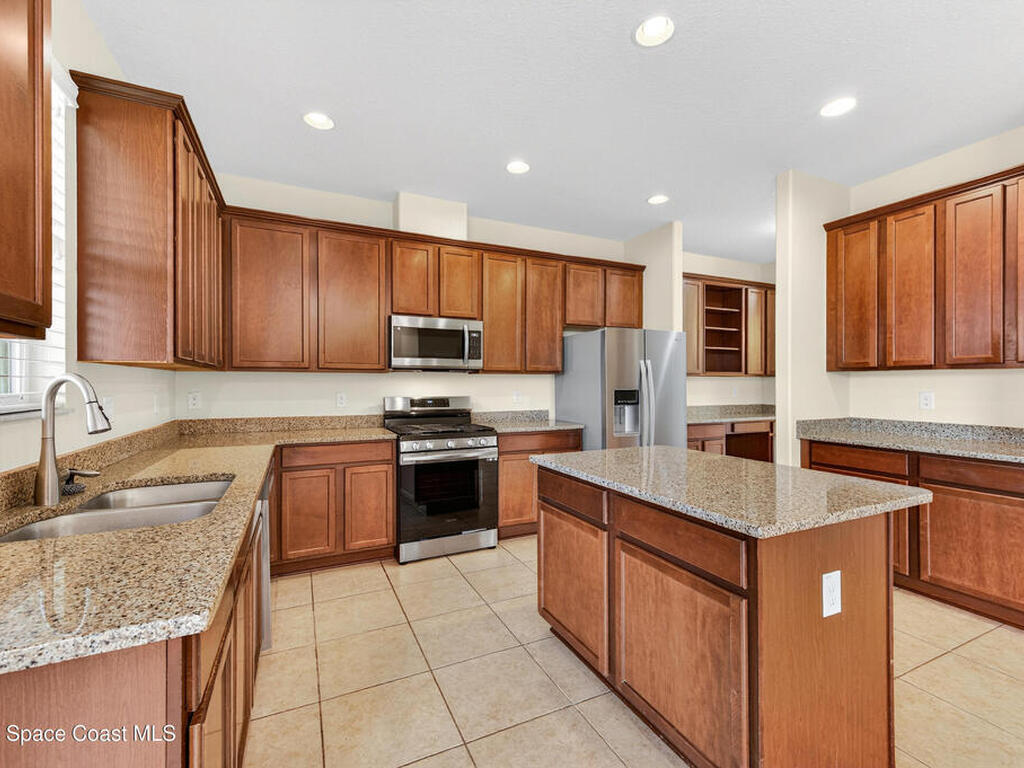Welcome to this stunning 2-story, 5-bedroom, 4-bathroom home nestled in the sought-after gated community of Pineda Ridge! Offering 2, 927 sq ft of beautifully designed living space, this 2014-built gem checks every box for families and entertainers alike. The heart of the home is a gorgeous granite island kitchen featuring stainless steel appliances, a gas range, butler's pantry, and 42'' cabinetry, flowing seamlessly into the family room and casual dining area. A formal dining room adds an elegant touch for hosting. Hardwood laminate flooring, neutral tile, a striking hardwood and iron staircase, and abundant natural light create a warm, sophisticated atmosphere throughout. A downstairs bedroom and full bath with walk-in shower is perfect for guests or a mother-in-law suite, while all additional bedrooms and laundry are tucked upstairs for maximum privacy. Step outside to a screened porch and spacious backyard -- ideal for year-round Florida living. Seller is offering $5, 000 toward clos