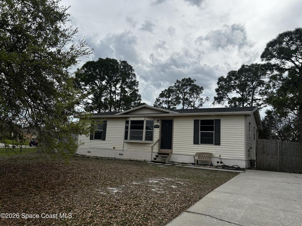 Great price for this starter home for a first time buyer or if you are thinking of downsizing. 3 bedroom 2 full bathrooms. Located on a large corner lot in SW Palm Bay. .32 acre, fenced large lot. Listed that seller will accept FHA or VA, and seller may need a few repairs, which seller is willing to do. 5 year old roof, water heater and HVAC.