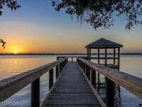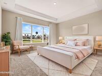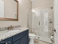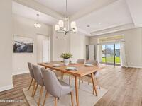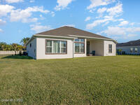 Located in the gated Georgiana Reserve, just steps from the Indian River, this modern home blends luxury finishes w/ effortless coastal living. LVP flooring & tray ceilings accent a bright, open layout filled w/natural light. The spacious great rm offers both formal & casual dining areas, perfect for entertaining. At the heart of the home is a stunning quartz island kitchen w/marbled countertops, SS appliances, wall oven, crisp white cabinetry & a walk-in pantry. The primary suite features dual granite sinks, a large subway tile shower w/bench seating & a generous walk-in closet w/direct access to the laundry rm. A full guest/in-law suite provides ideal space for visitors or extended family. One additional bdrm includes its own attached bath. Enjoy outdoor living on the breezy covered lanai overlooking the large backyard. Washer & dryer included. Boat lovers will appreciate the path across the street leading to the community's riverside dock, plus a scenic lake and nature trail.