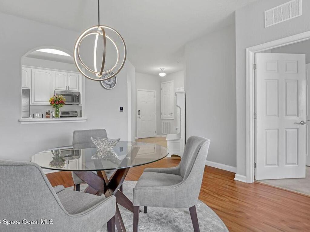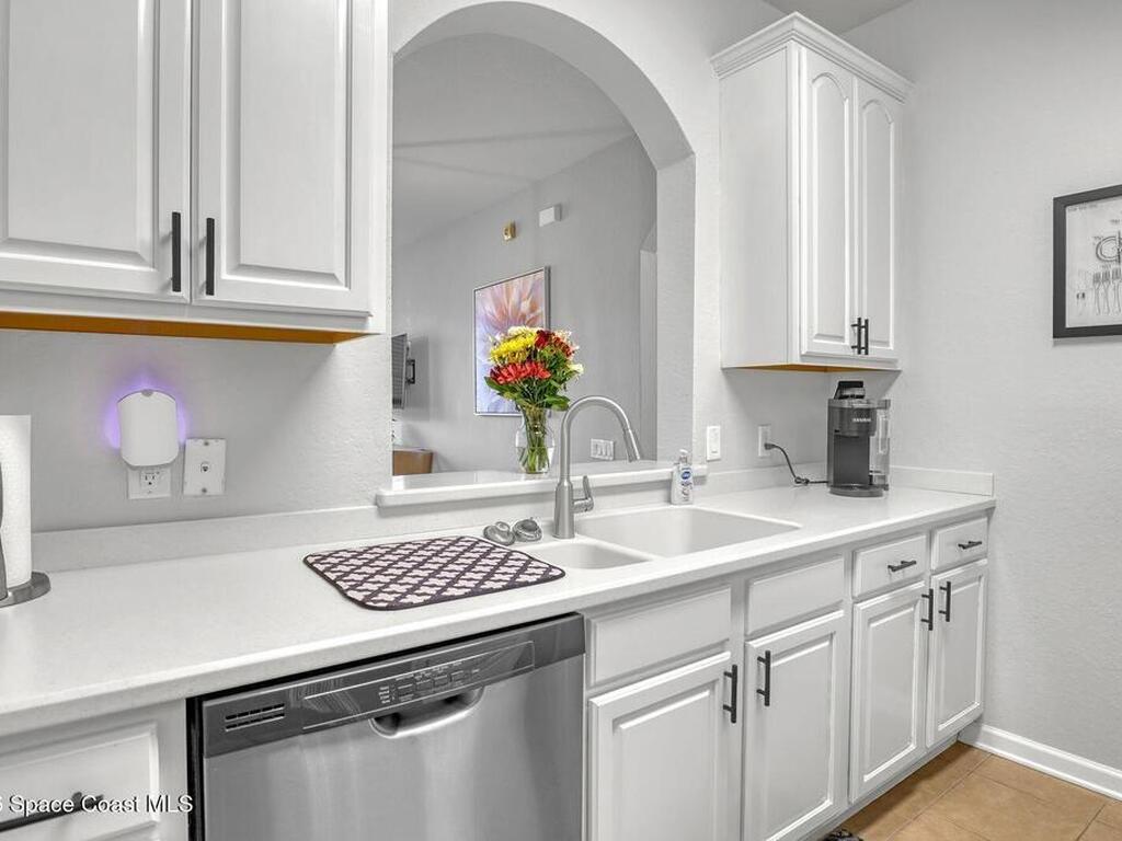 A GORGEOUS, TOTALLY UPDATED END UNIT CONDO OFFERING STYLE, COMFORT & PRIVACY! This light-filled home features an open layout, modern finishes, and a beautifully redesigned kitchen with newer stainless appliances, sleek white cabinetry w/crown molding and premium surfaces. Enjoy in unit laundry and a private garage! The spacious living area flows to a private balcony perfect for relaxing! The primary suite includes a refreshed bath and generous closet space, while the split plan provides ideal guest privacy. Enjoy new flooring, updated lighting, fresh paint, and meticulous care throughout. High-end furnishings are negotiable, creating a turnkey opportunity! This well-kept community offers a huge sparkling clean pool, plenty of outdoor space to lounge, gym, and clubhouse! Close to Golfing, Shopping, Restaurants, Entertainment, Fishing, Boating, Beaches, KSC, Port Canaveral Cruises, Hospitals, and only 40 min. to theme parks and OIA. Move-in ready and truly stunning--an exceptional find